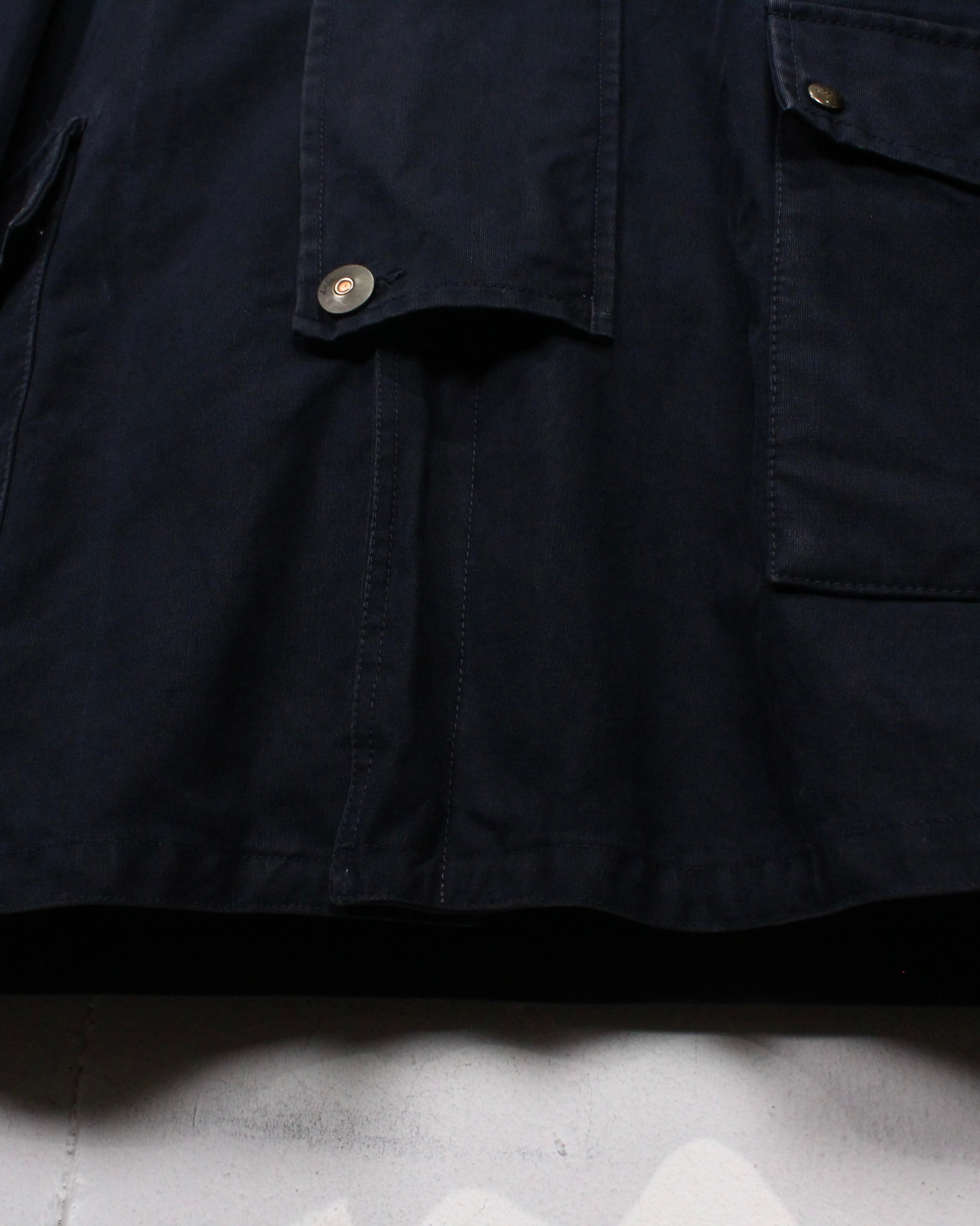 チンストラップでスタンドカラーにも変更可能、フロントには大きめのフラップポケットを搭載し、実用性も確保。肩からストンと落ちるシルエットが羽織るだけでスタイリングに余裕を与えてくれます。