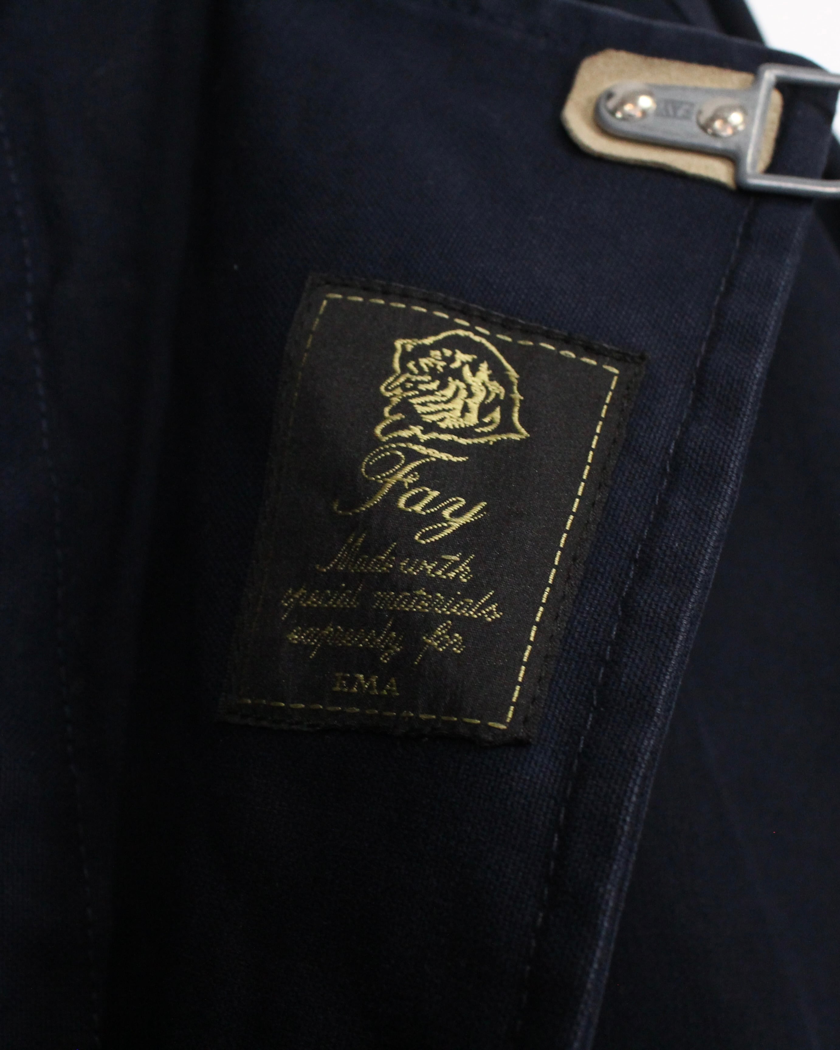 ブランドの代名詞でもあるファイアーマンバックルを襟元トップのみで抑えたデザインで、シンプルながらもしっかりとFayらしさを主張するカバーオールジャケット。