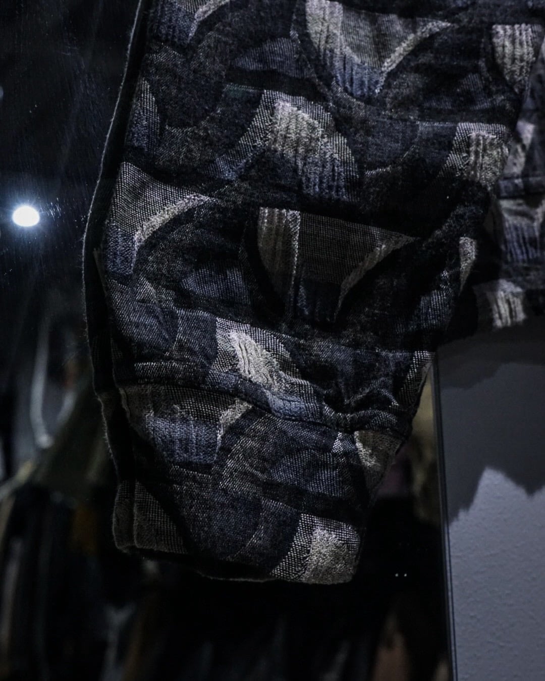 生地にはコットン×レーヨンを使用。ジャガード織りならではのプリントでは出せない奥行きのある立体感に加え、空気を含んだような柔らかな表情も美しい、、、