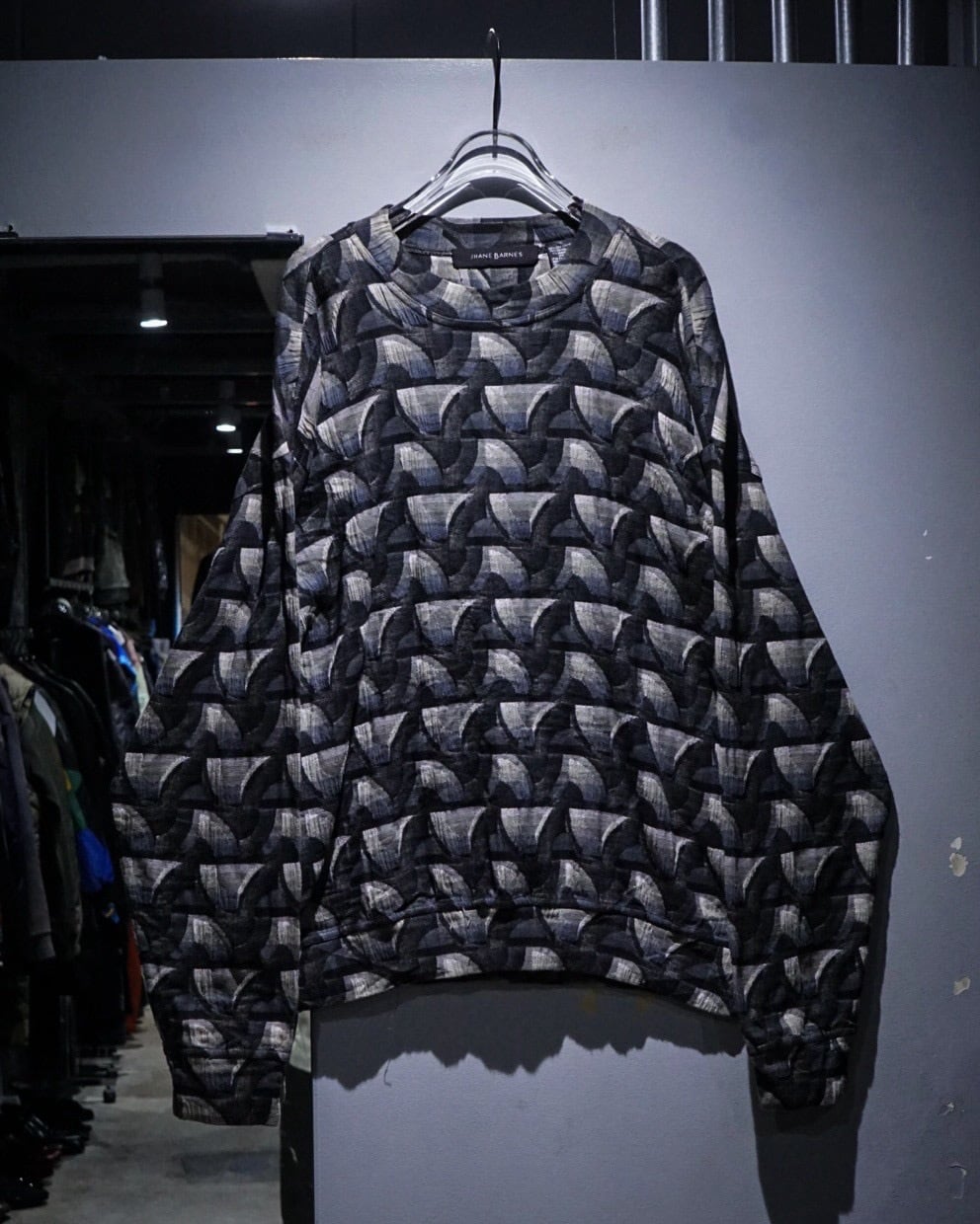 JHANE BARNESより、モノトーンベースで構成された幾何学模様が全面に広がった、アート性の高い総柄ジャガードのプルオーバー。