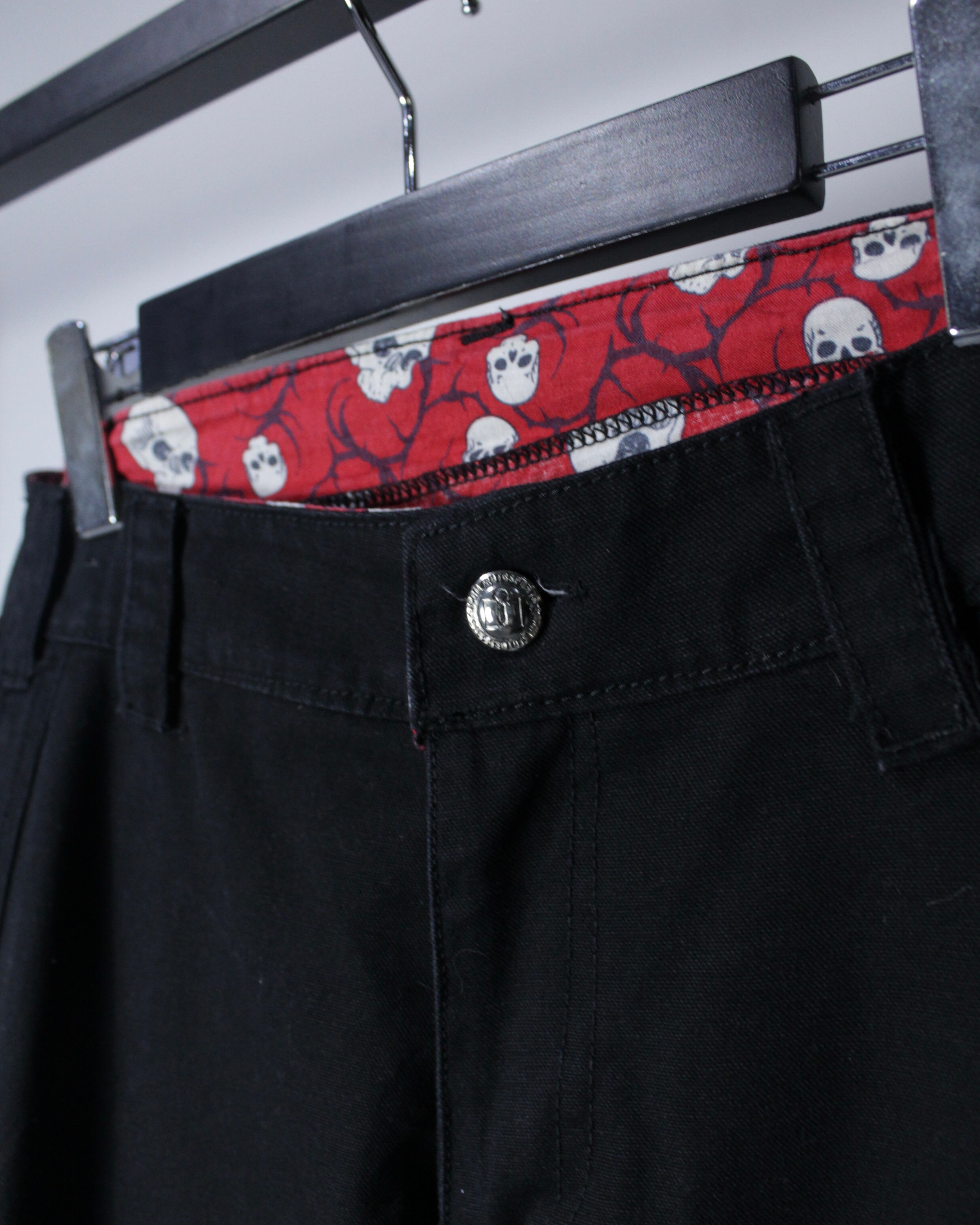 ウエスト内側にはスカルにトライバル調の柄が施されており、このさりげないデザインアプローチにグッときます、、、