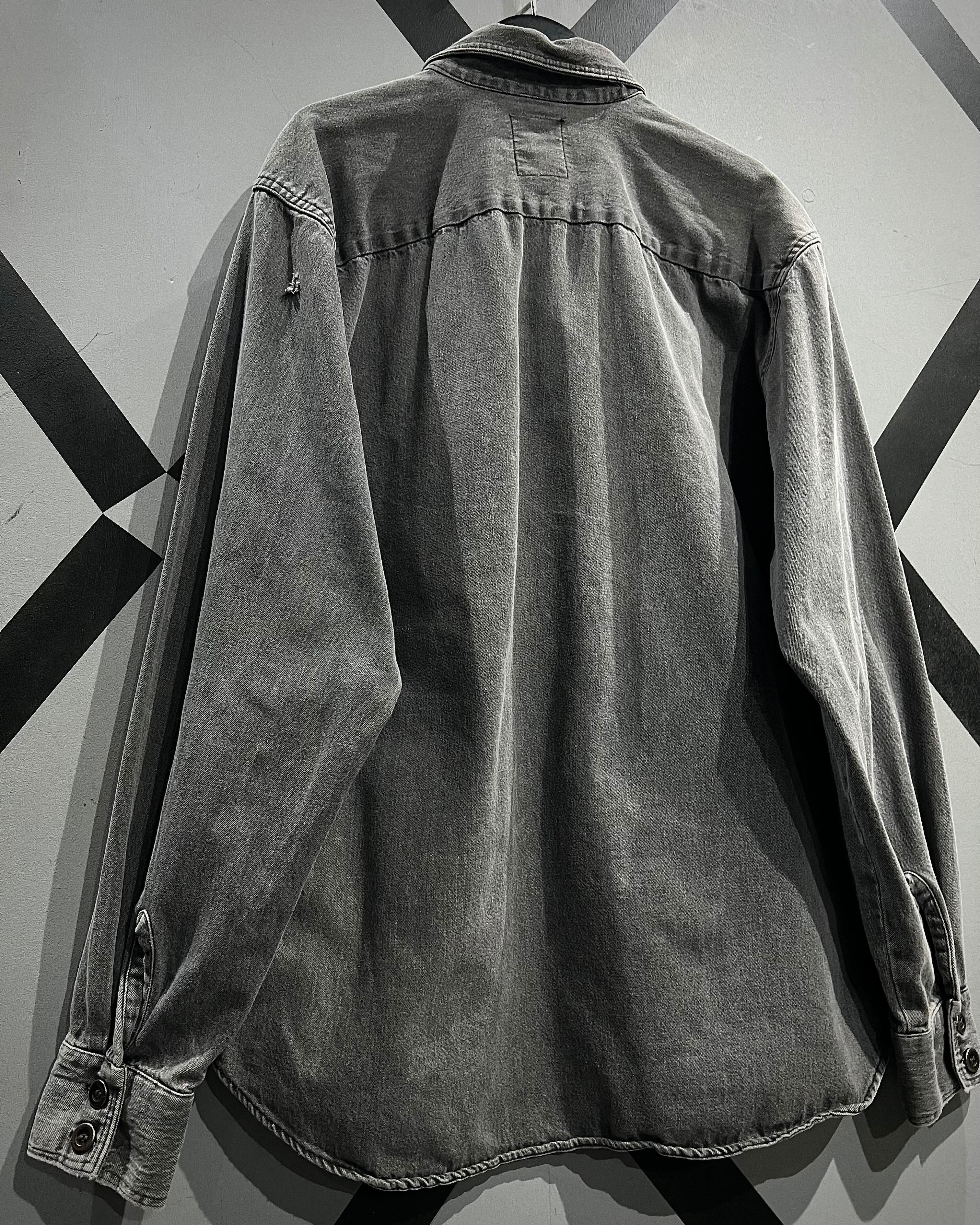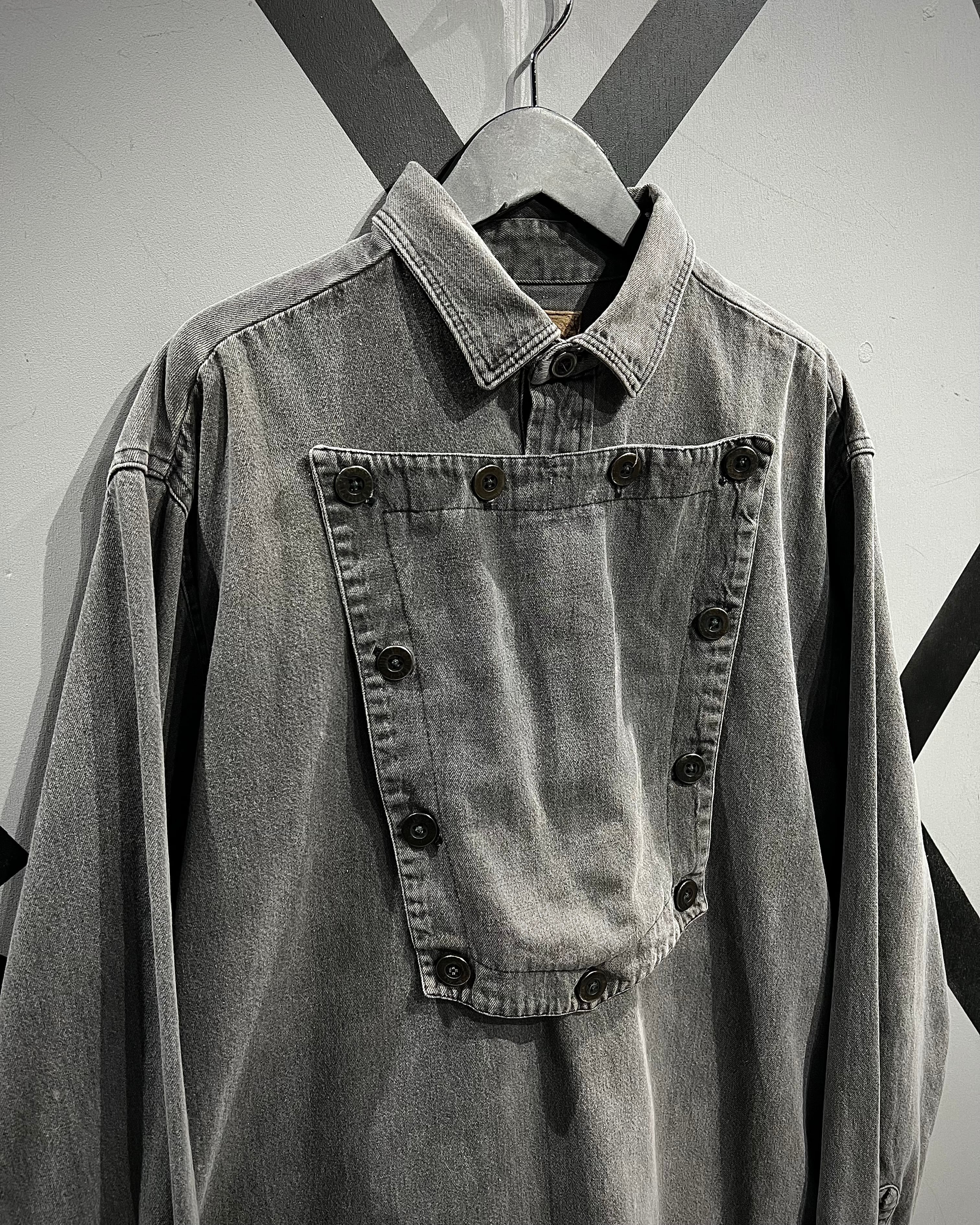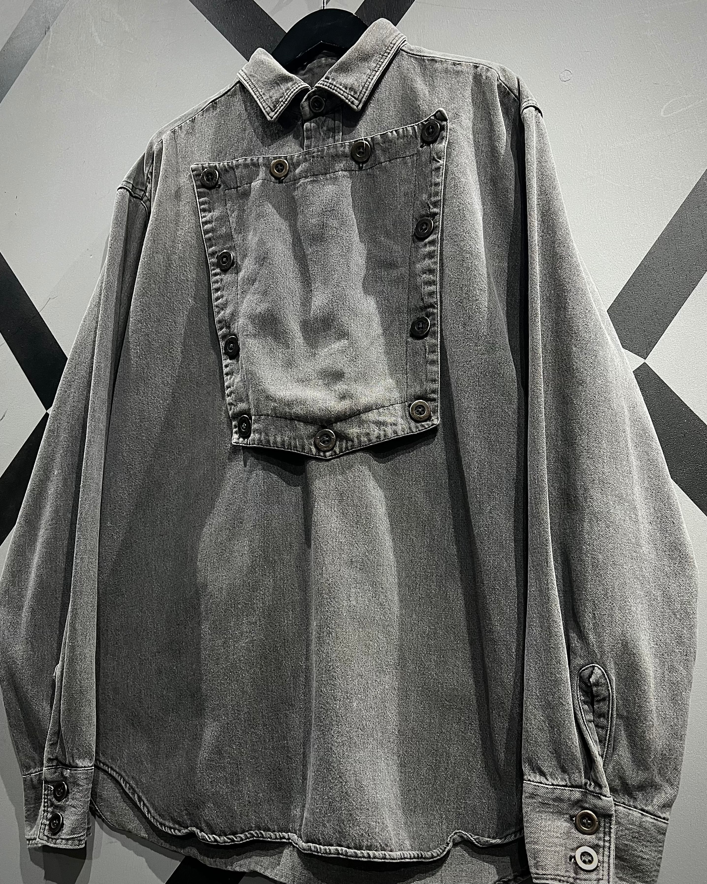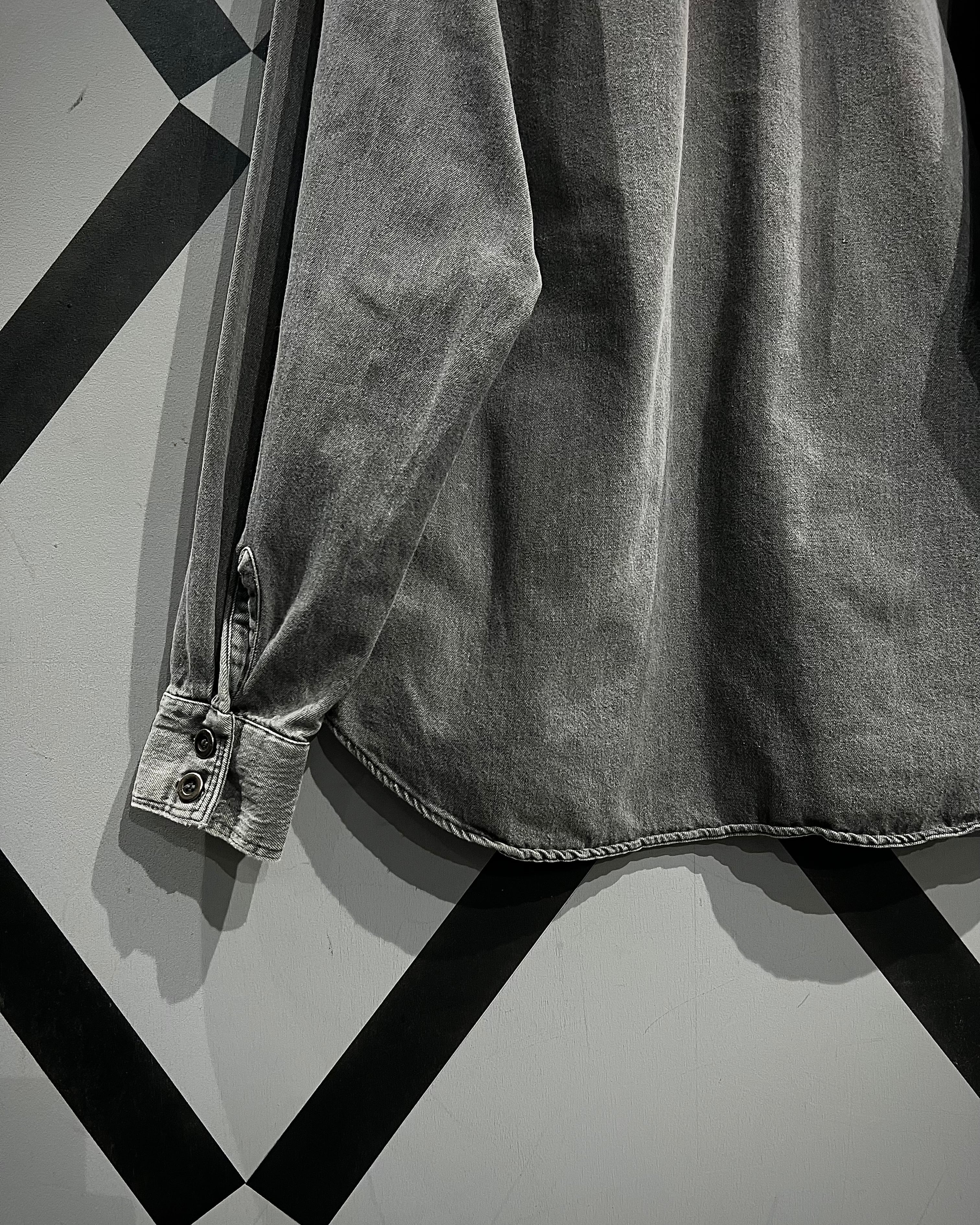 フェード感のあるグレーのデニムを用いた、ミリタリー由来の機能美をベースに、マニッシュさと上品さを併せ持ったキャバルリーシャツ。