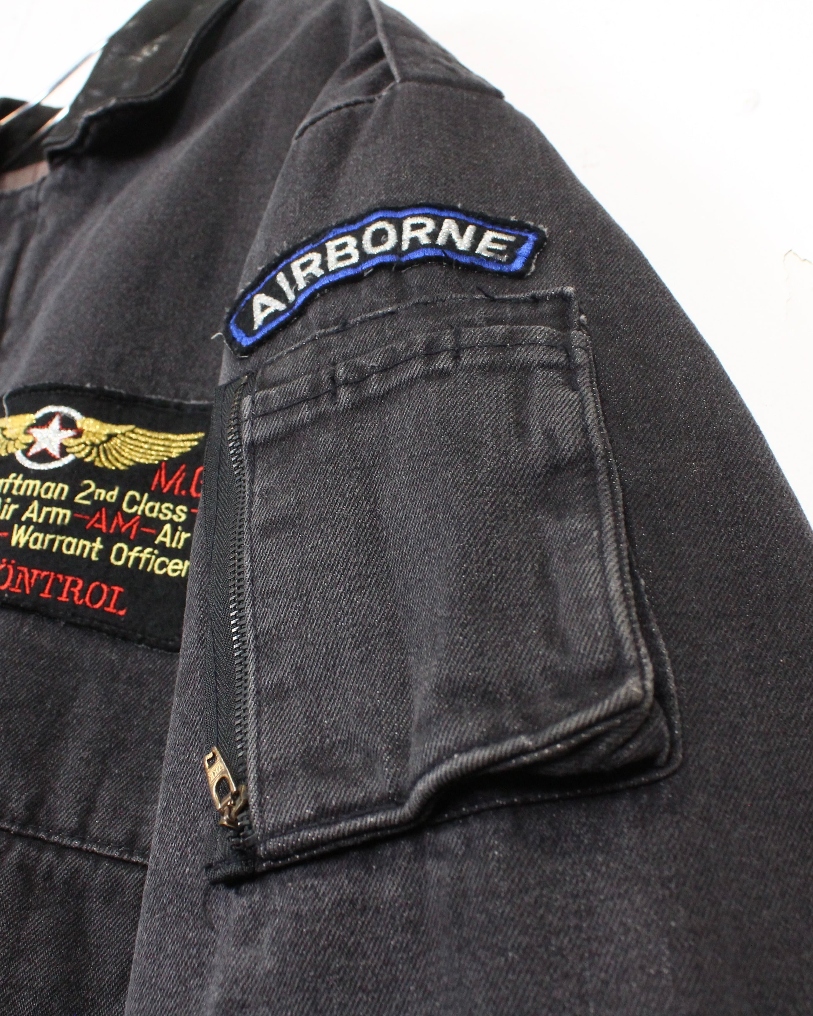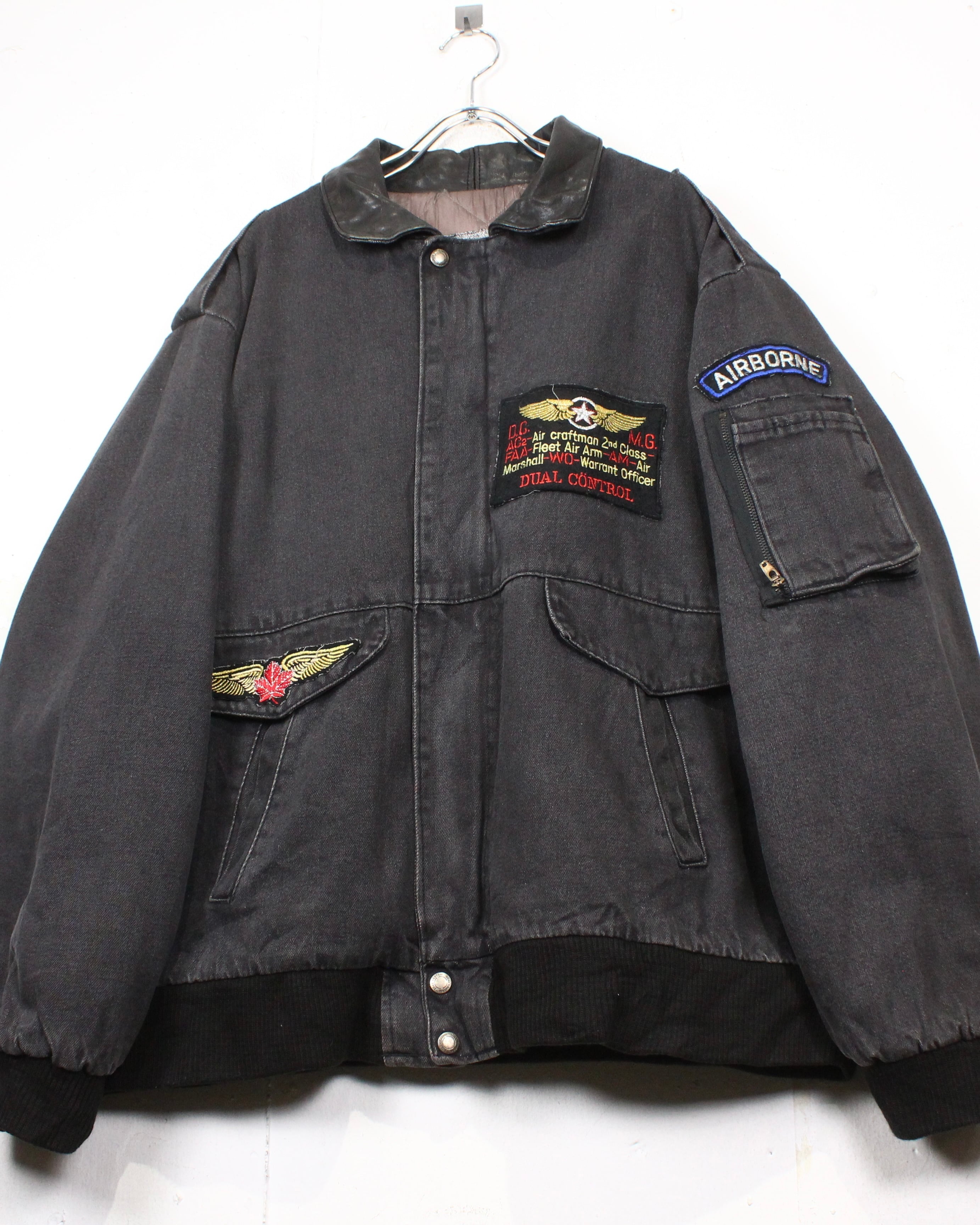 フェードの効いたブラックデニムをボディに使用した、80’sの空気感を色濃く残す"DUAL CONTROL"によるフライトジャケット。