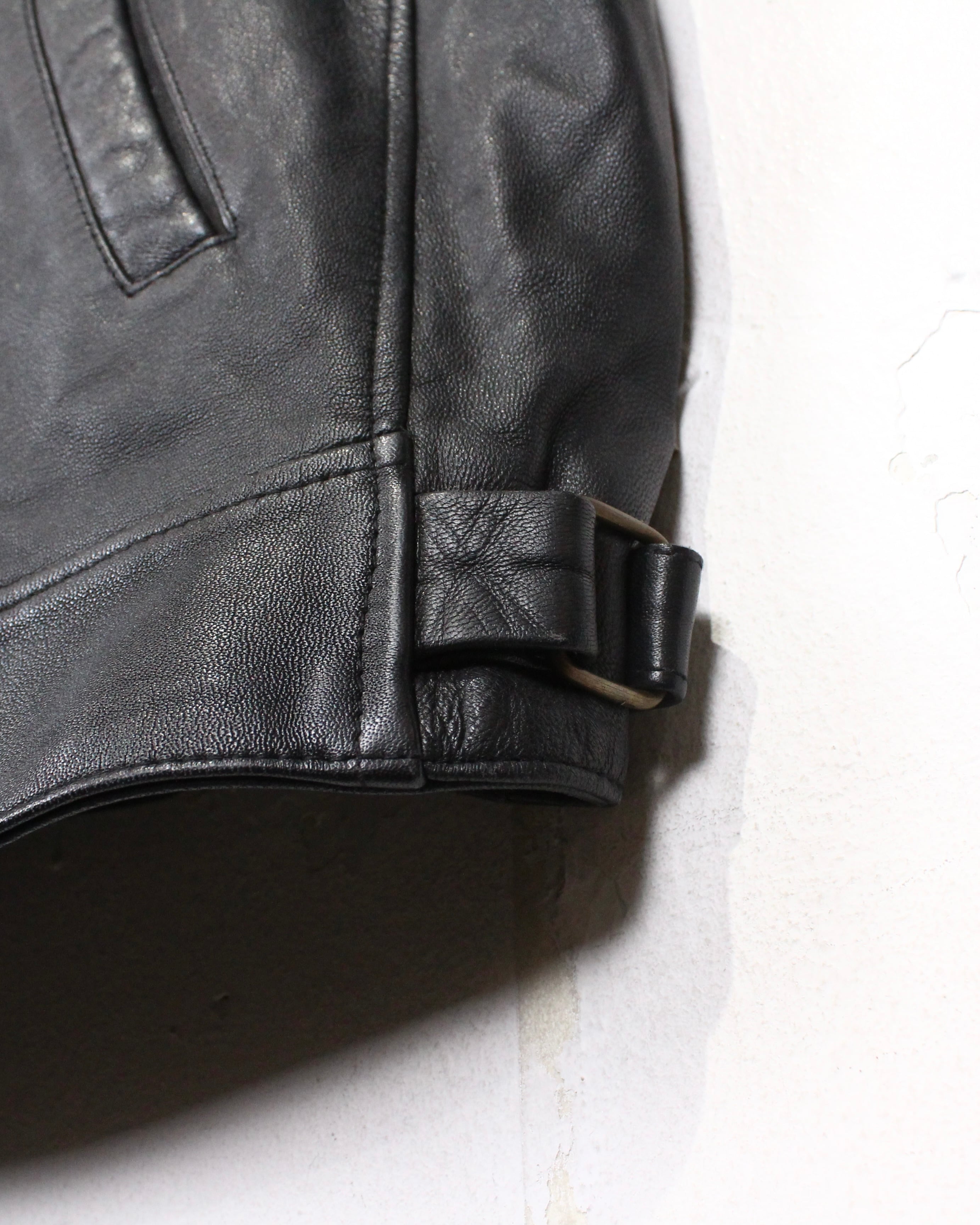 フロントはシンプルなジップ仕様のミニマルな仕立て。襟のボアはファスナーによる取り外しが可能で、装着時はクラシックかつ重厚な印象に、外せばミニマルでシャープなレザージャケットとして着用可能。気温やスタイルに応じた使い分けができる点も魅力です。