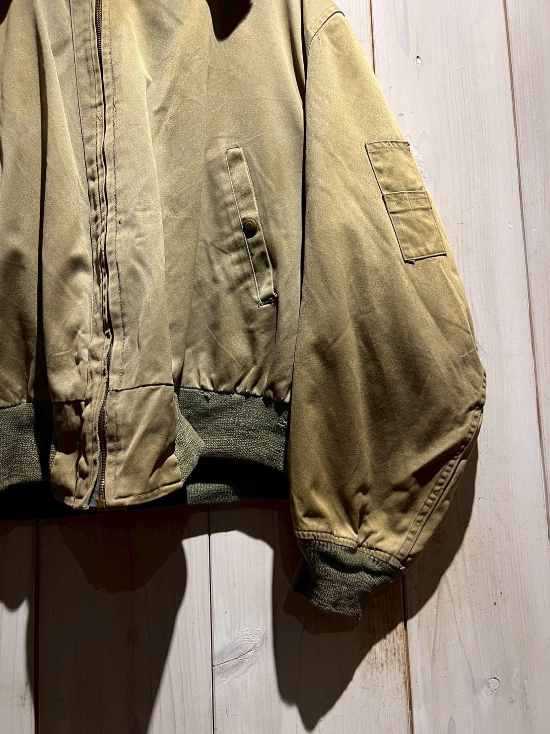フロントはジップ仕様、サイドポケットや袖のユーティリティポケットなど、実用性を重視したディテール構成。ジッパーやリブのコンディションも良好で、年代を考慮すると非常に整った個体です。