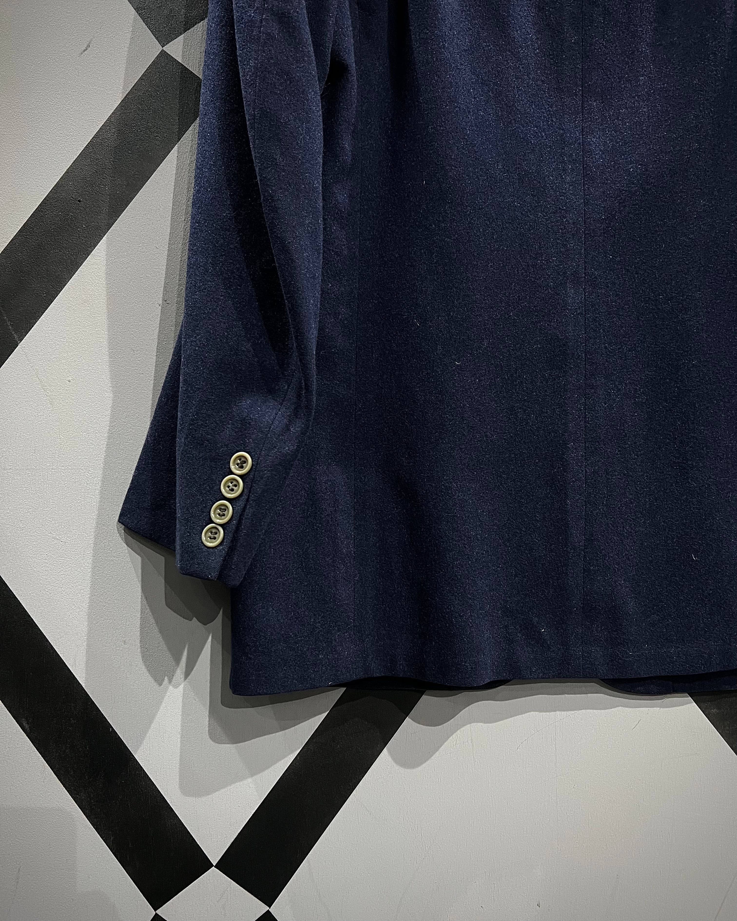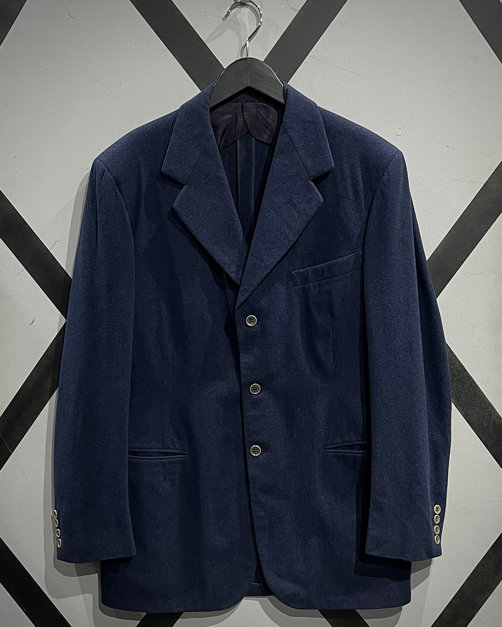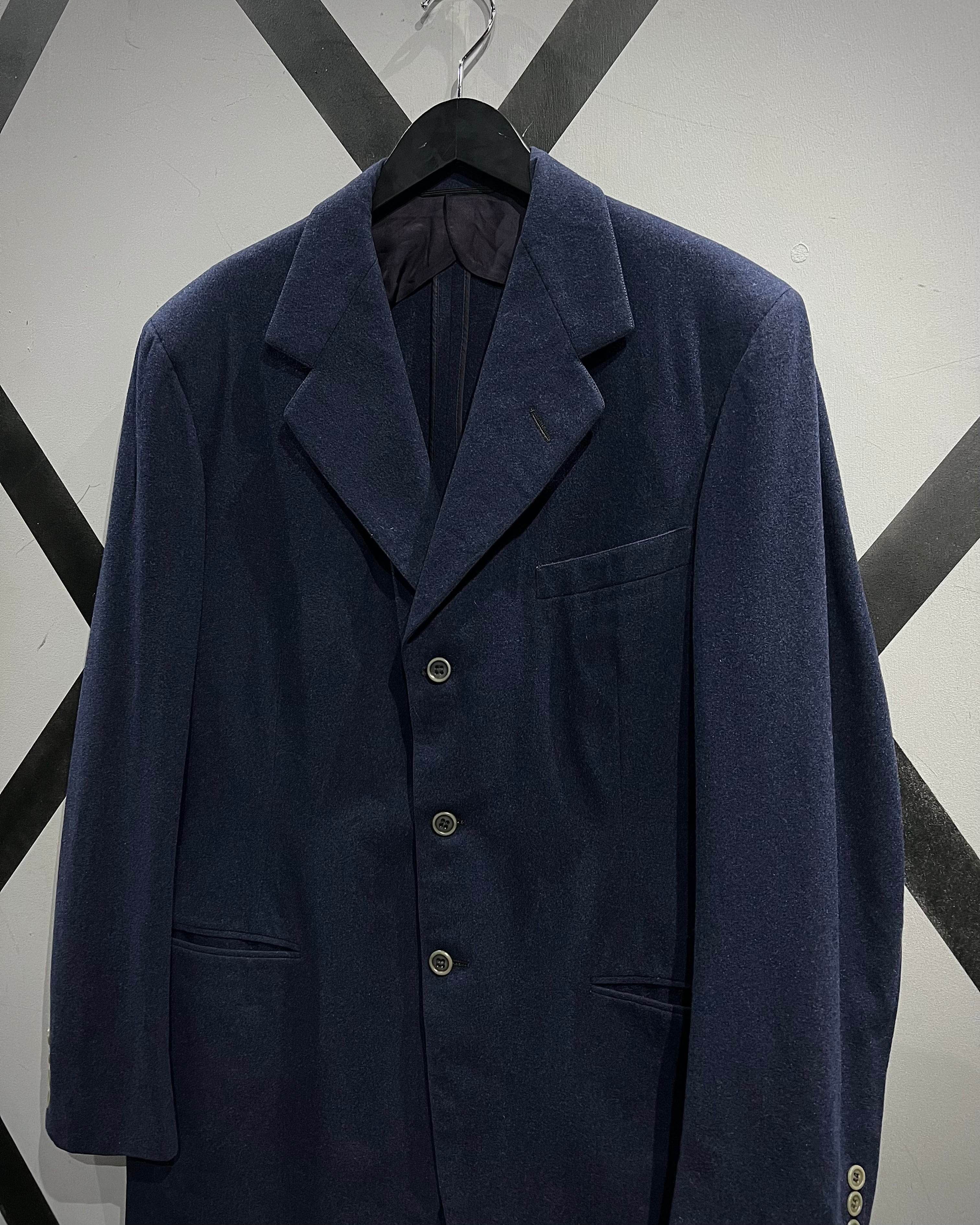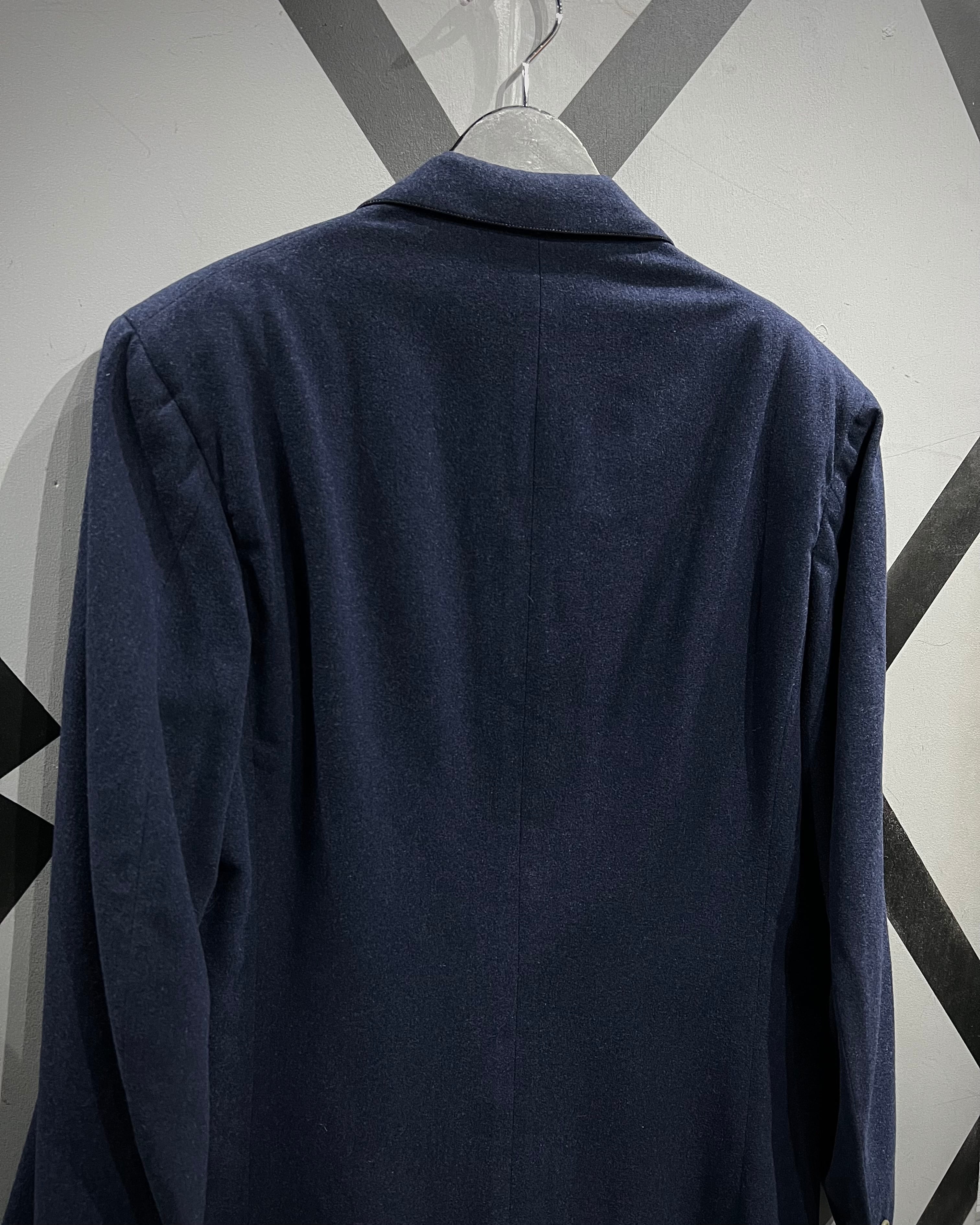 フロントはシンプルな3ボタン仕様、ポケットなど、装飾を抑えたミニマルなディテール。だからこそシルエットと生地の良さが際立ち、時代を超えて通用する完成度の高さを感じさせますね。