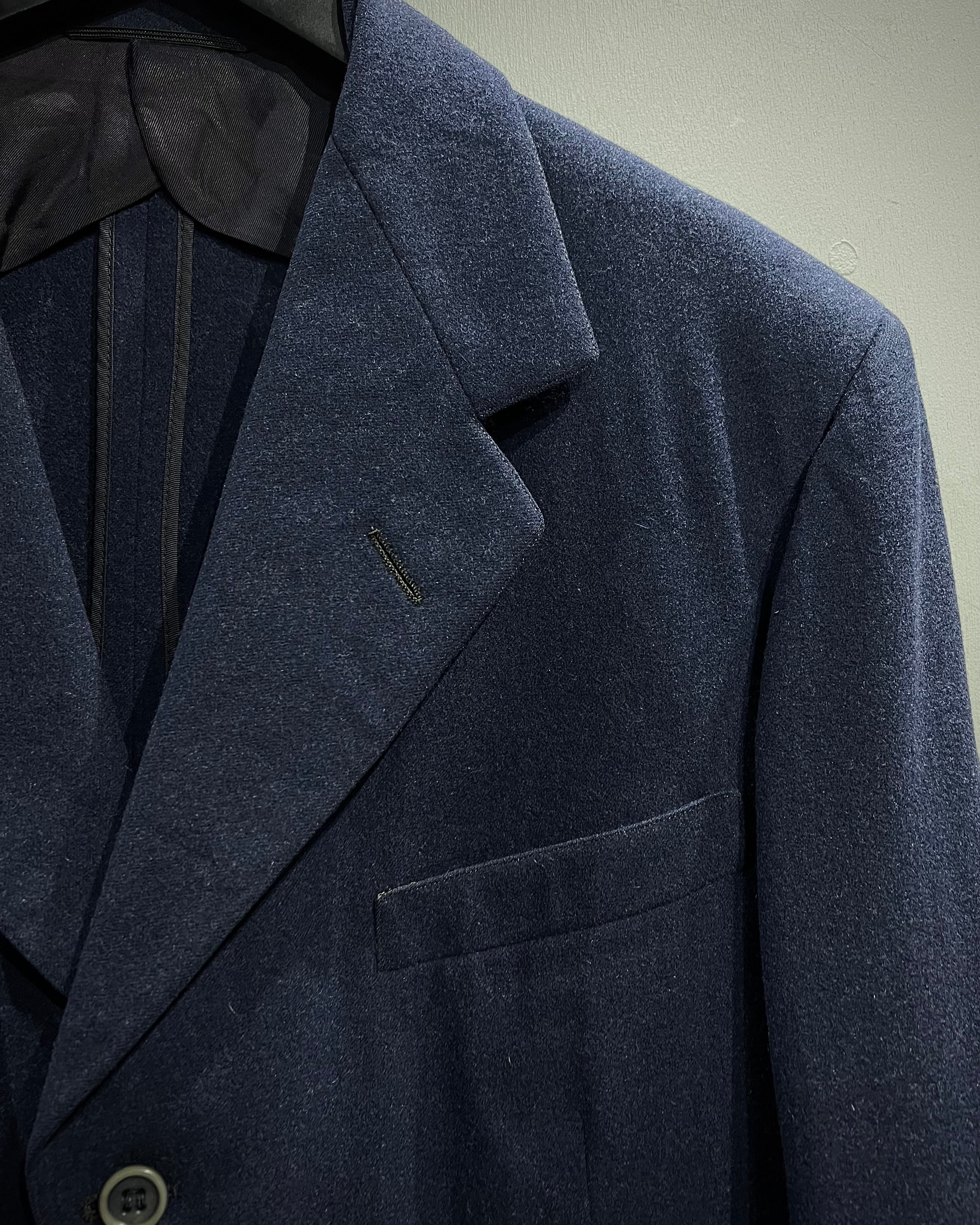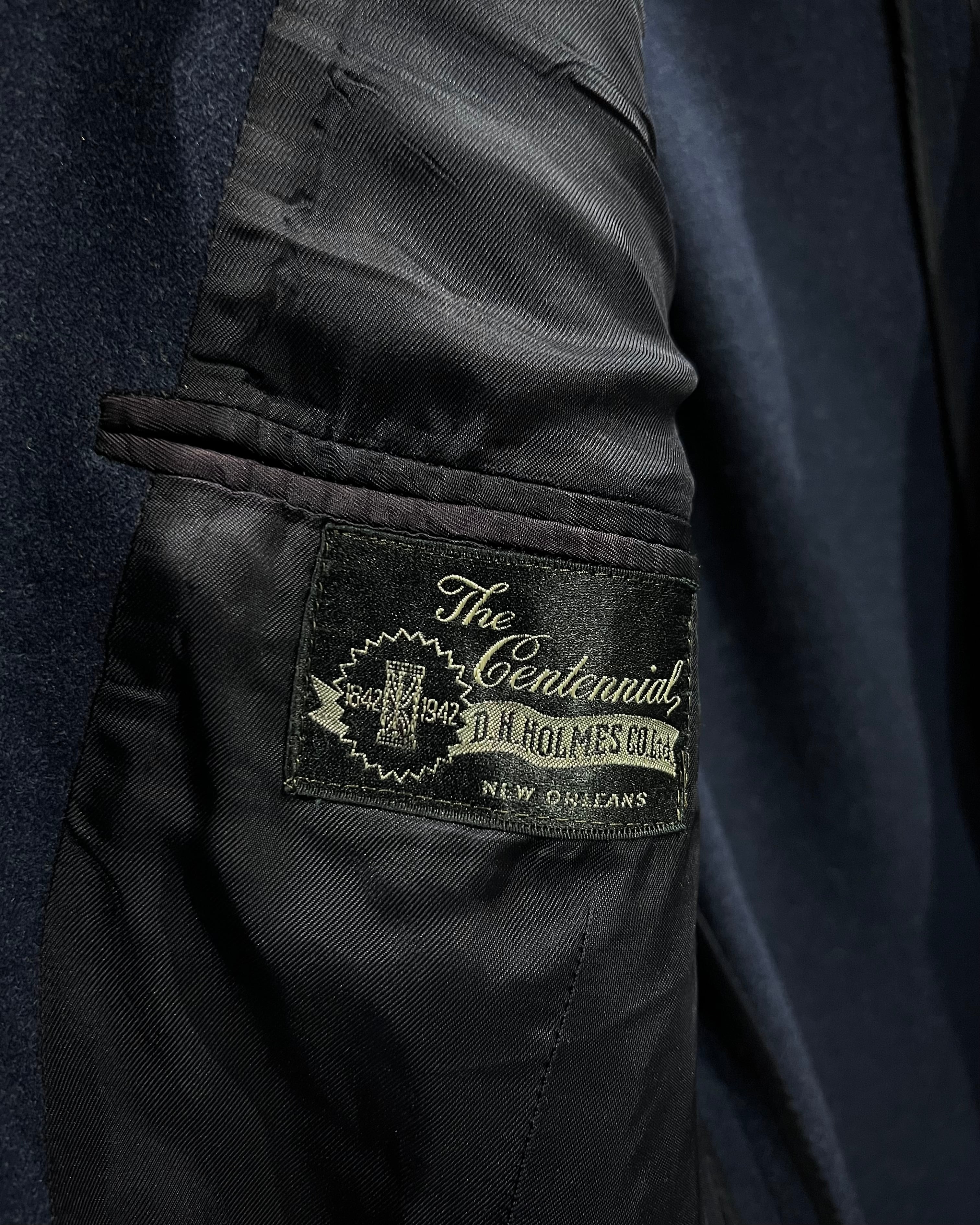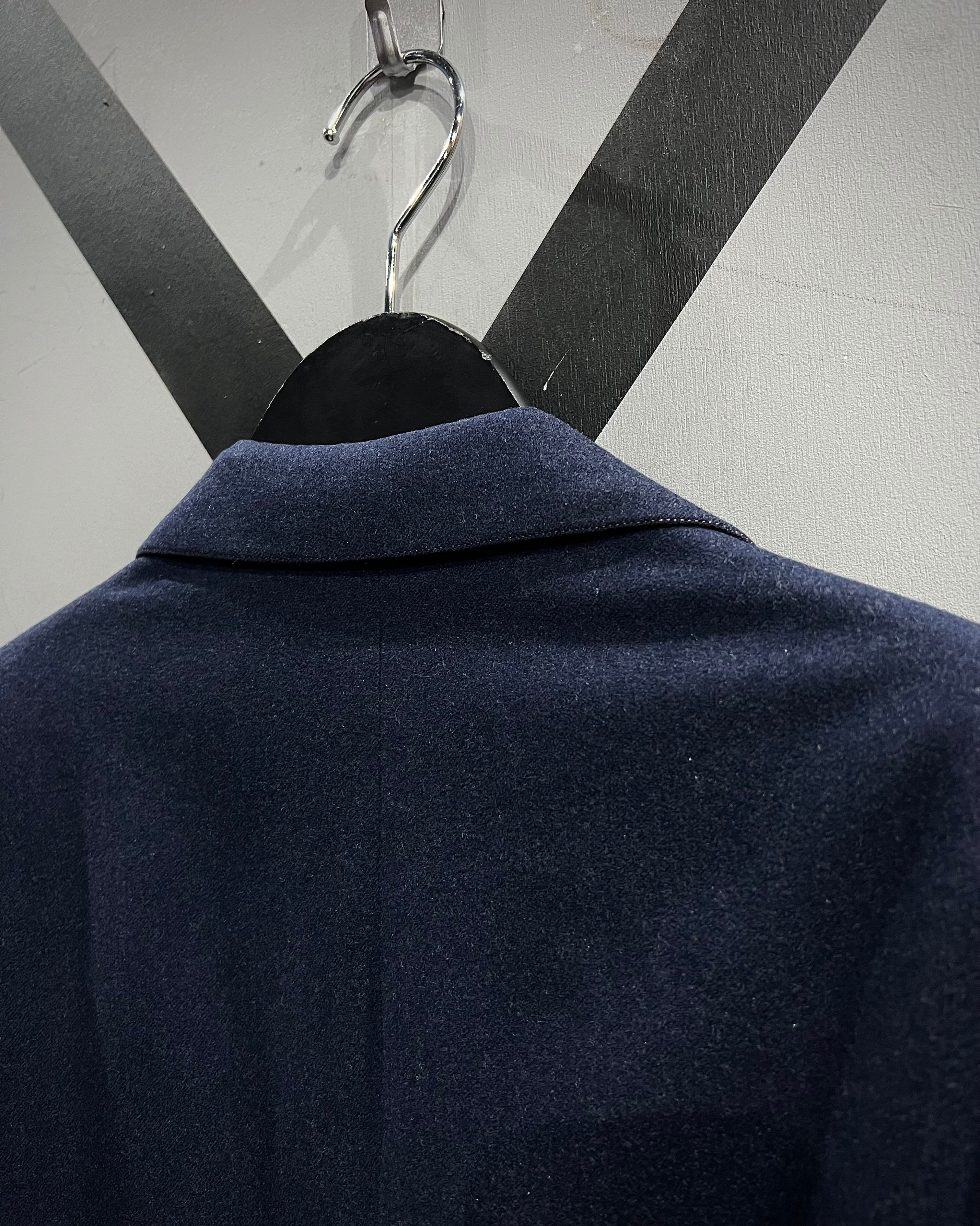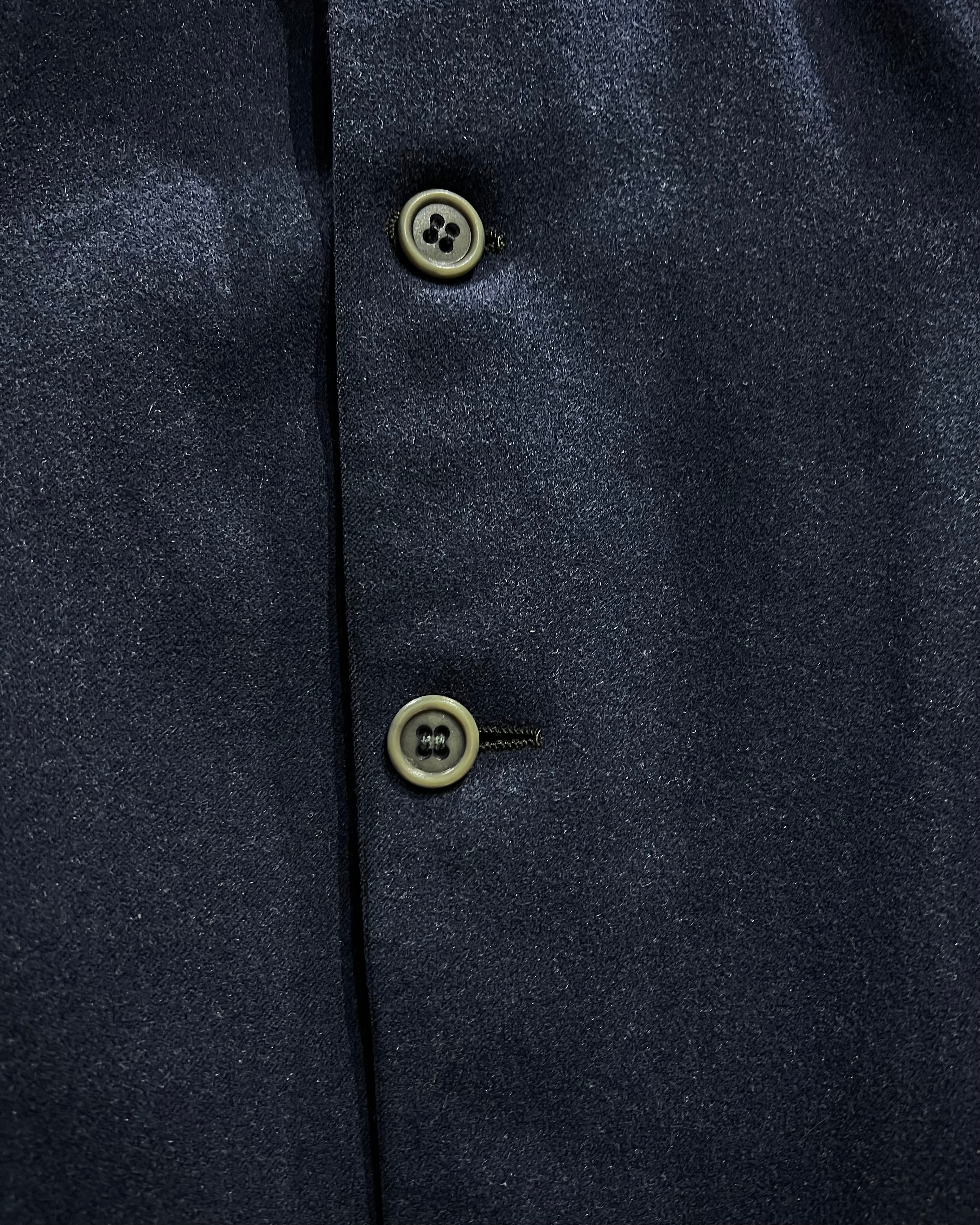 落ち着いたネイビーのボディは、ウール特有のマットで奥行きのある表情が魅力。繊維の立ち方がしっかりと残っており、ヴィンテージならではの素材感を存分に楽しめます。