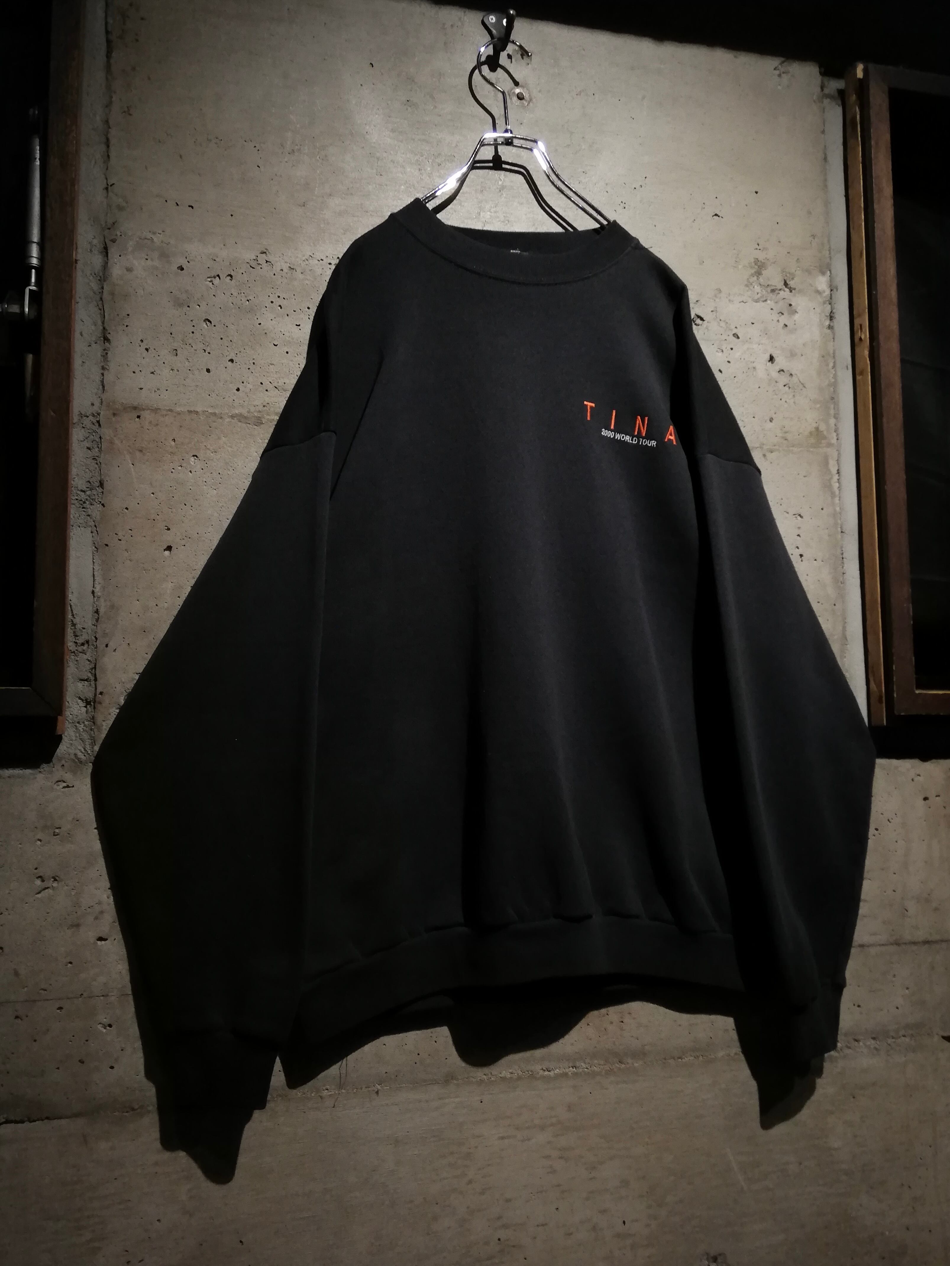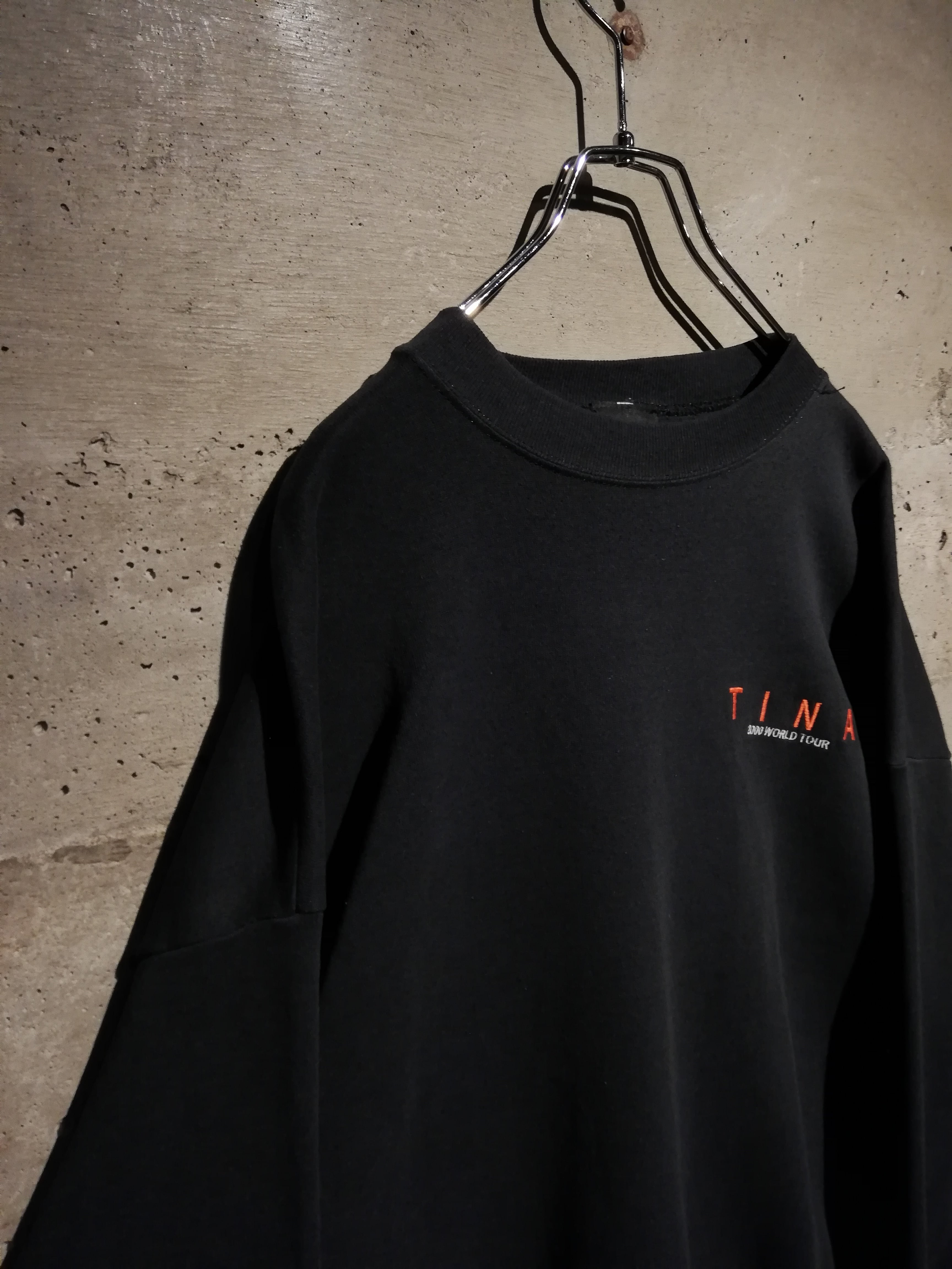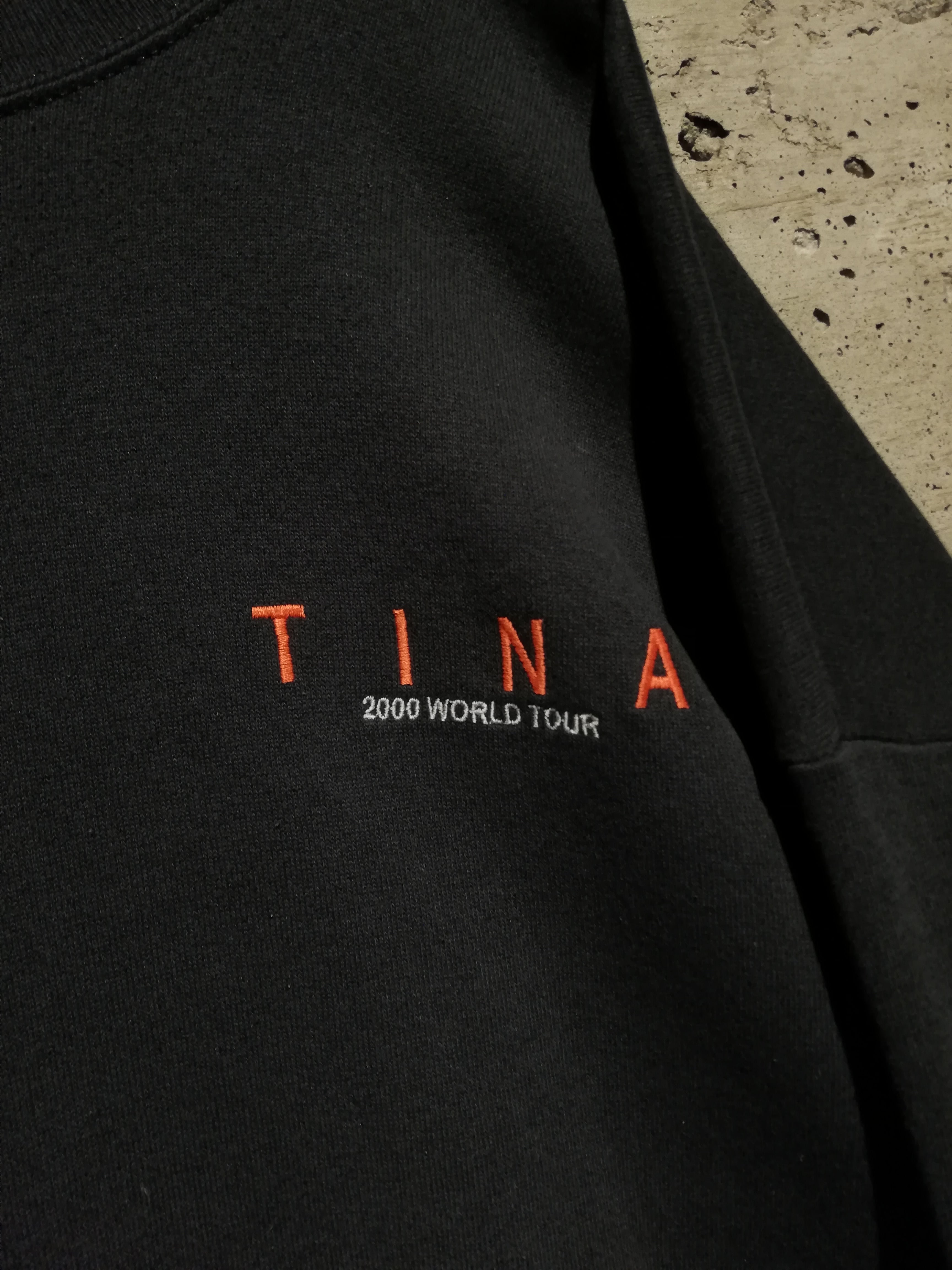 ブラックボディに、左胸へ控えめに入る“TINA / 2000 WORLD TOUR”の刺繍が、主張しすぎず、それでいて確かな背景を感じさせますね。