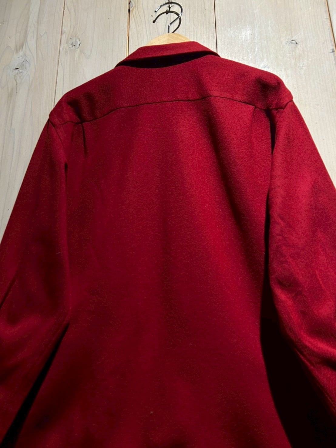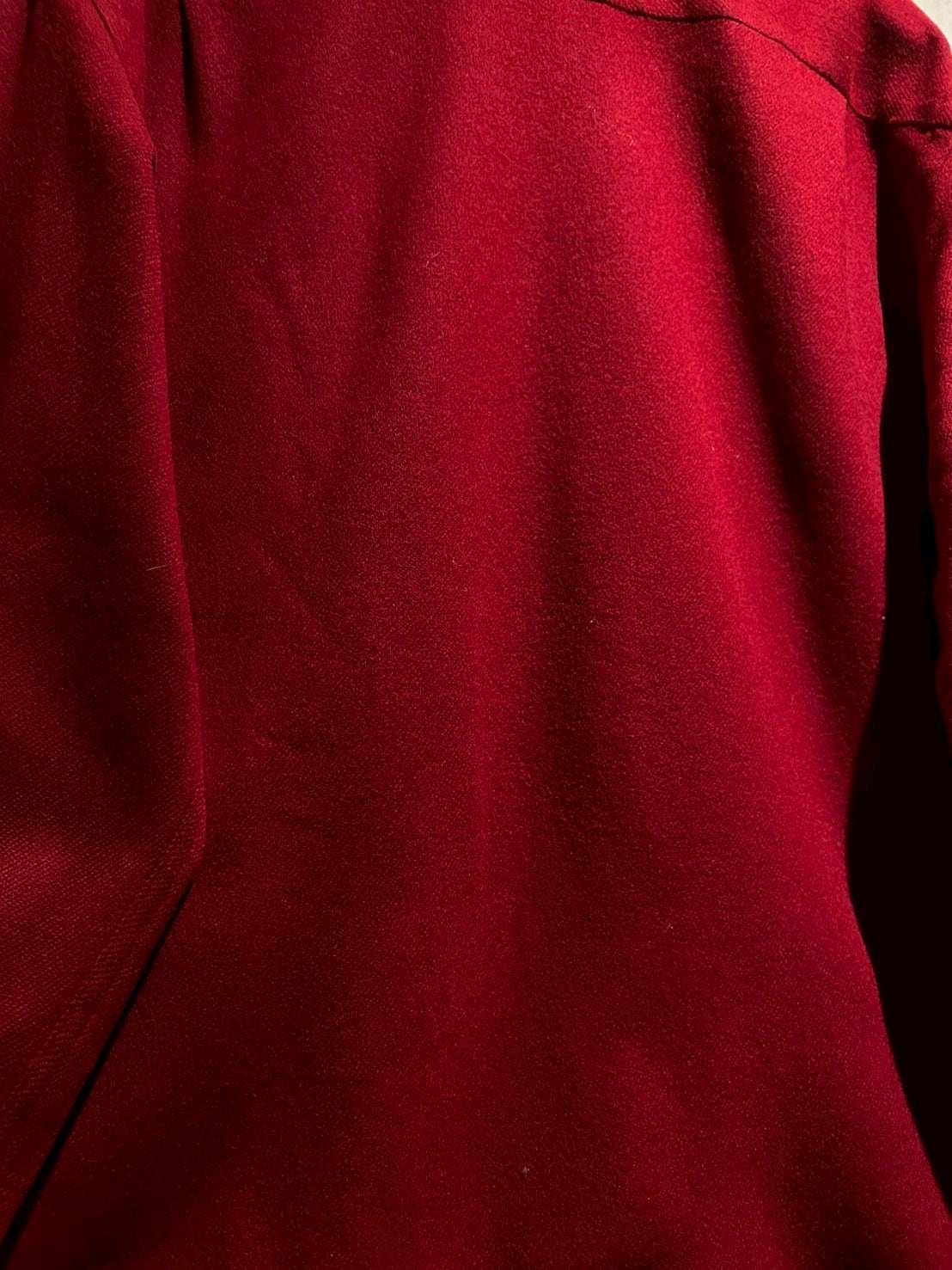 深みのあるレッドカラーが印象的な1着。目の詰まったファブリックを用いたボディは、しっかりとした肉感がありながらも柔らかく、着込むことで風合いが増していきます。
