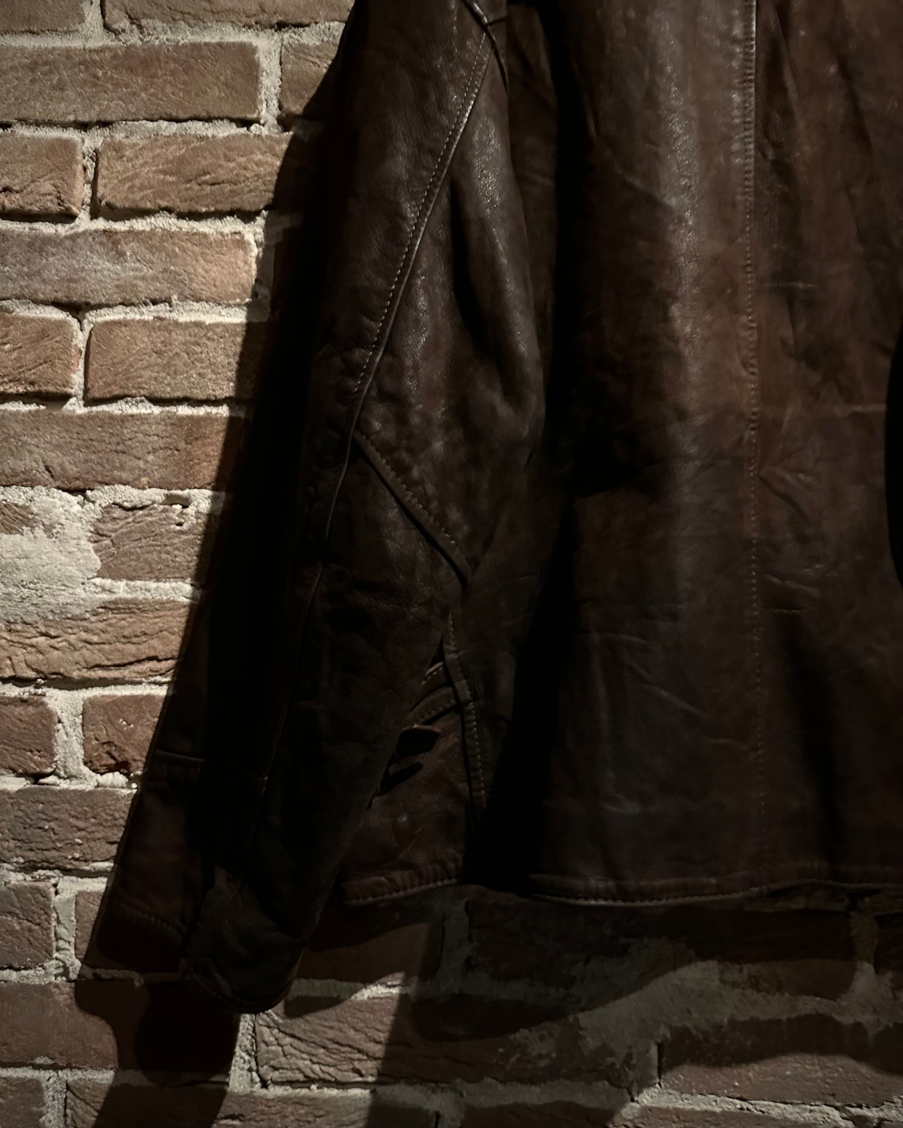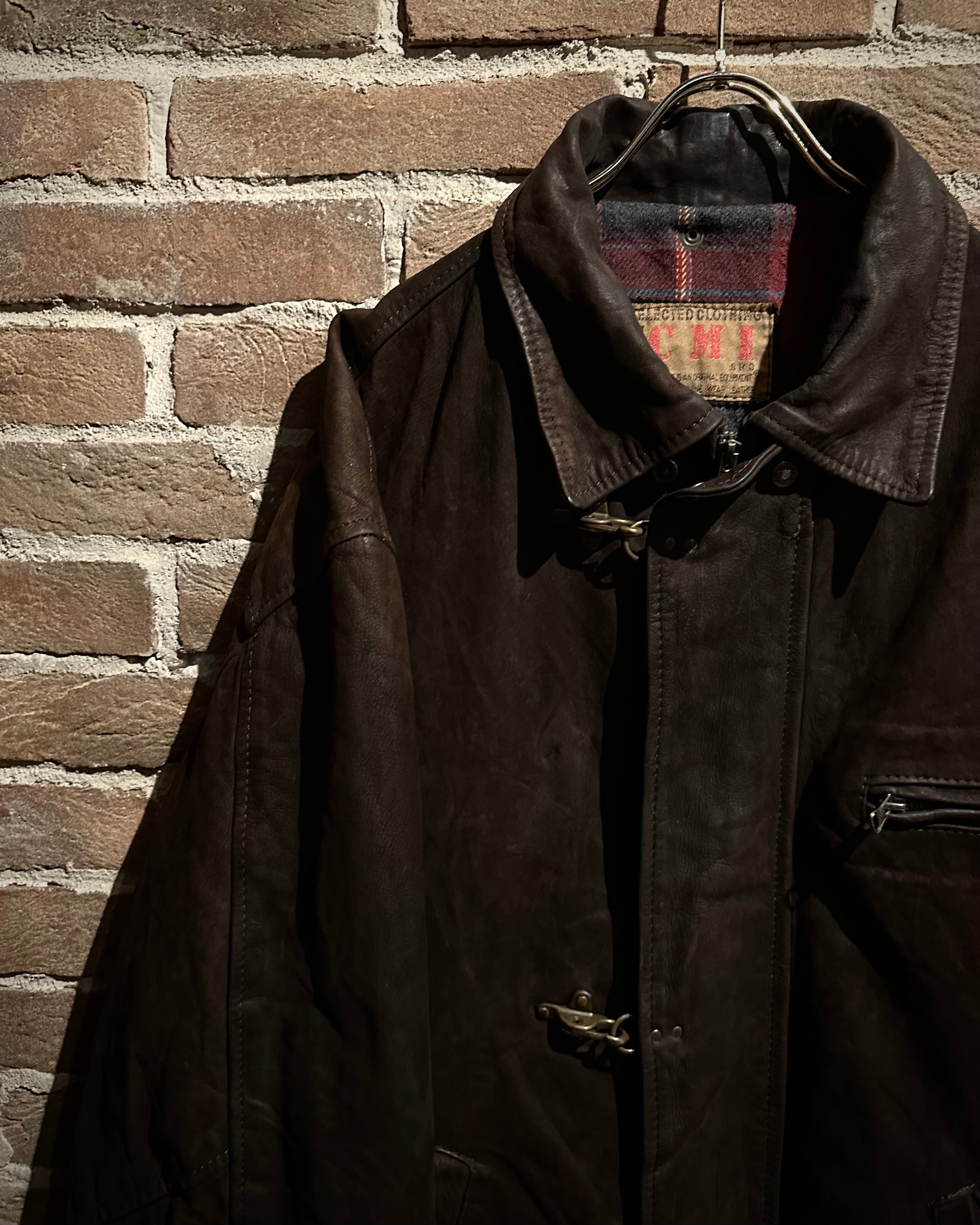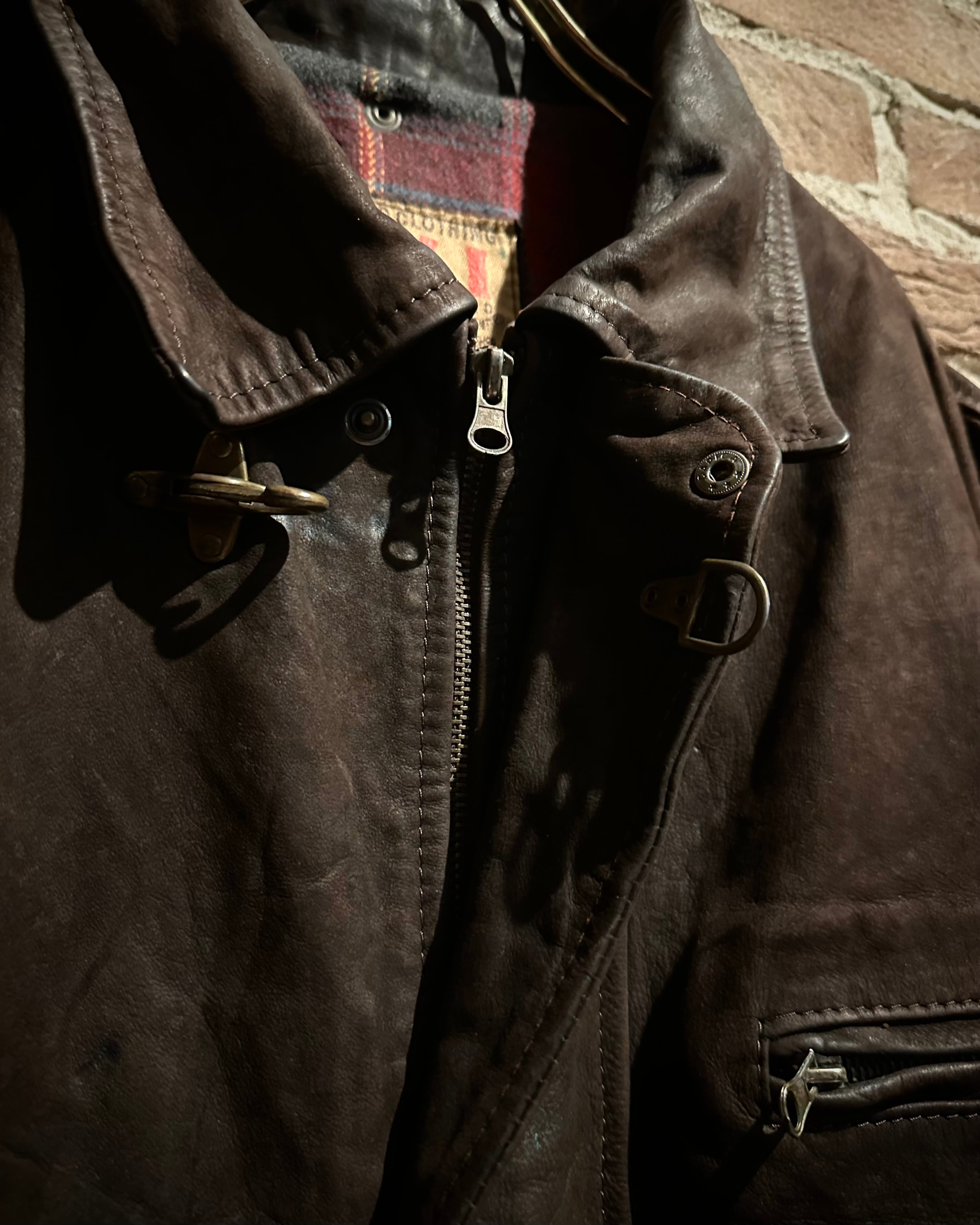 デトロイト型という完成されたフォーマットに、ファイアーマンバックルというギミックを掛け合わせた、意外性に心惹かれるレザージャケットの逸品です。