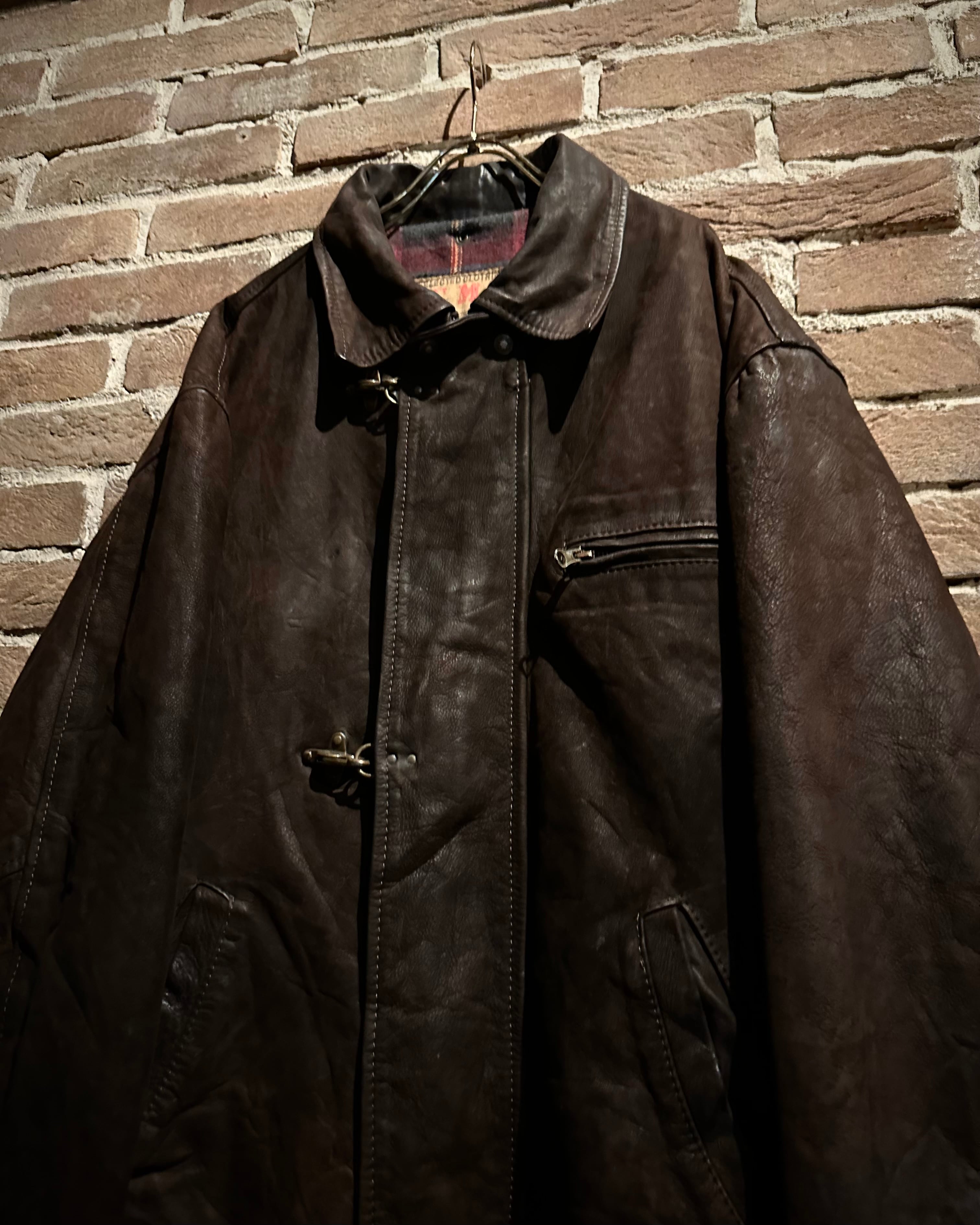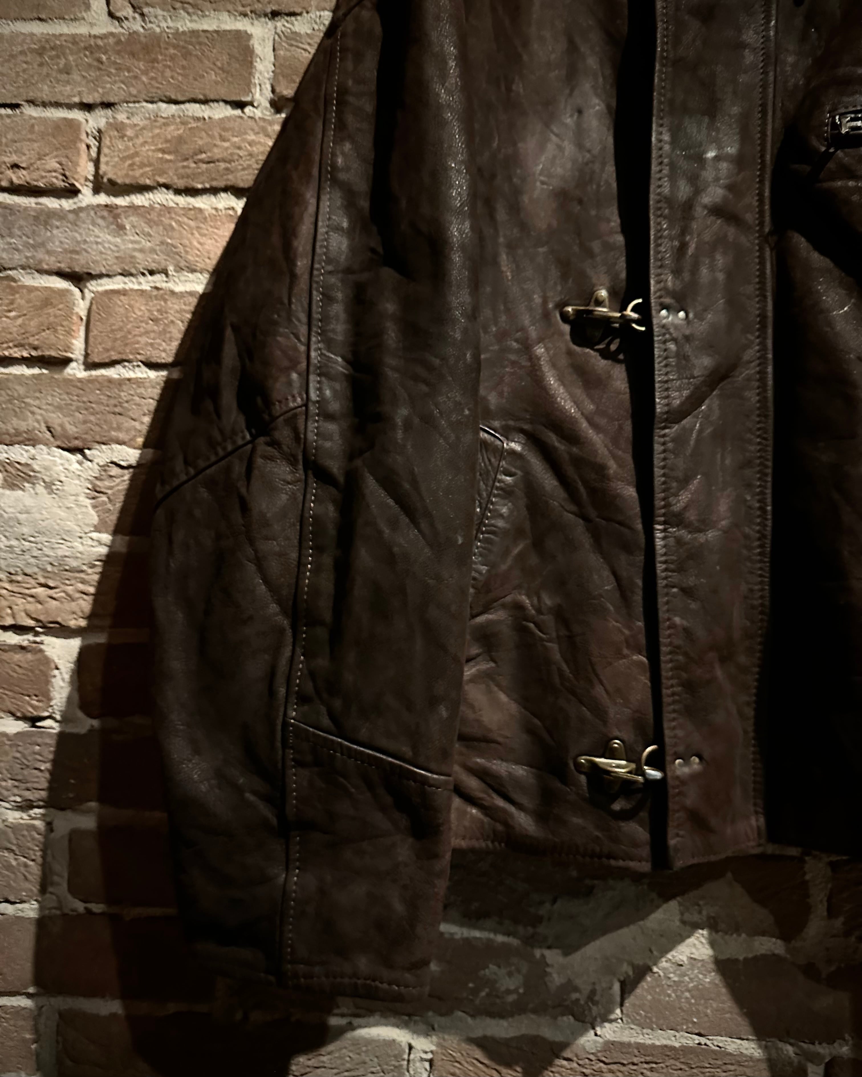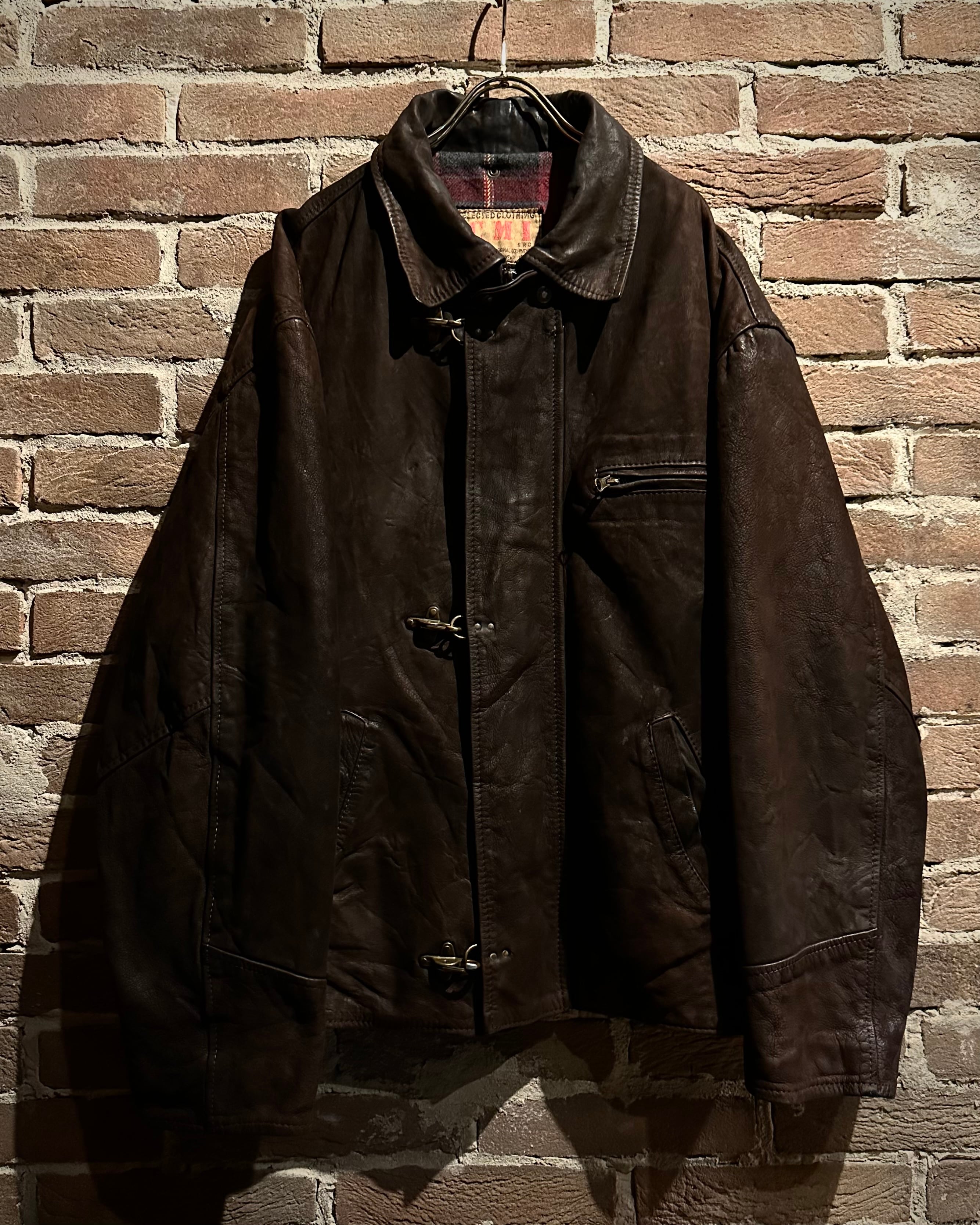 デトロイト型という完成されたフォーマットに、ファイアーマンバックルというギミックを掛け合わせた、意外性に心惹かれるレザージャケットの逸品です。