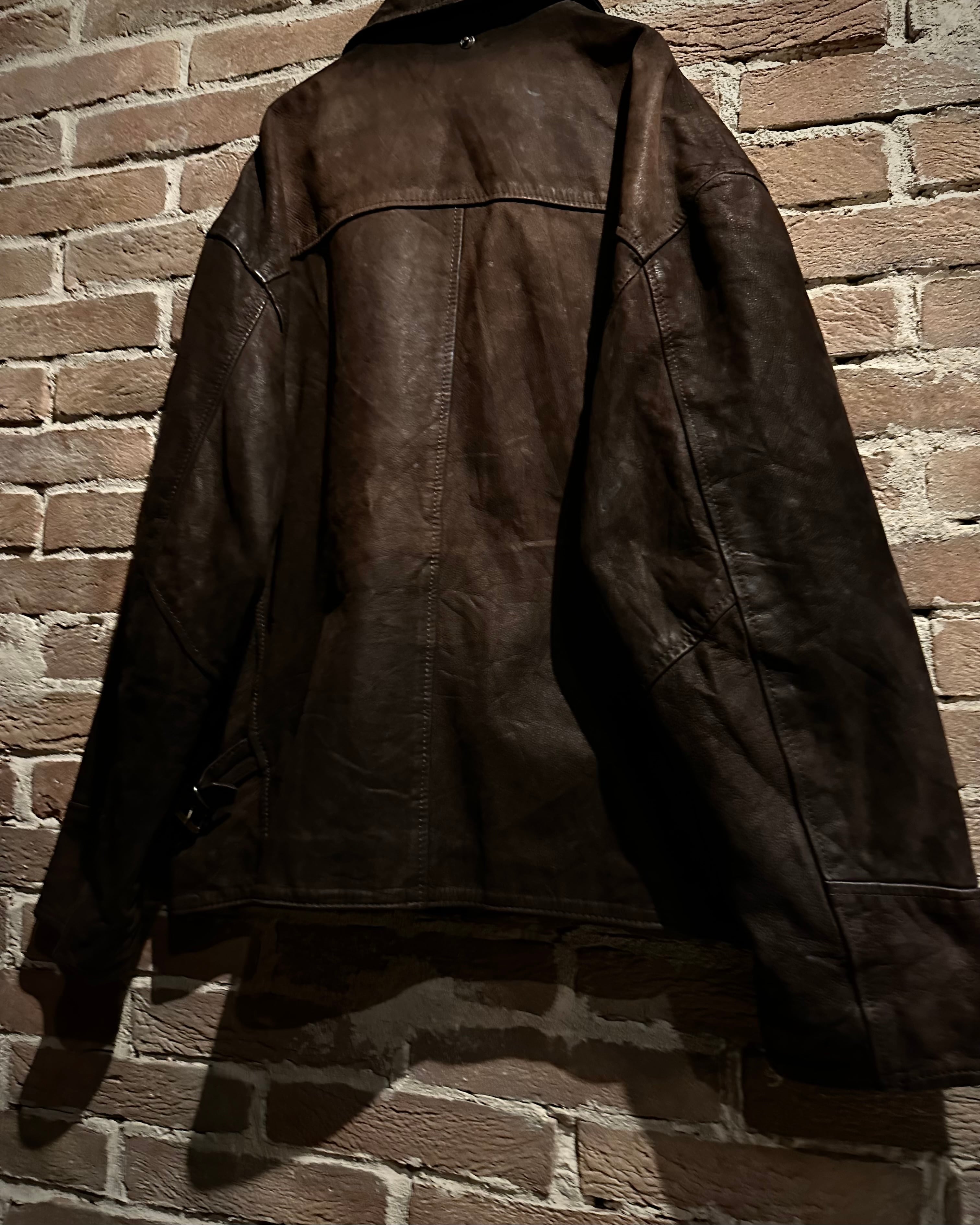 デトロイト型に仕上げられたボディをベースに、ファイアーマンバックルのギミックを載せたスペシャルなレザージャケット。