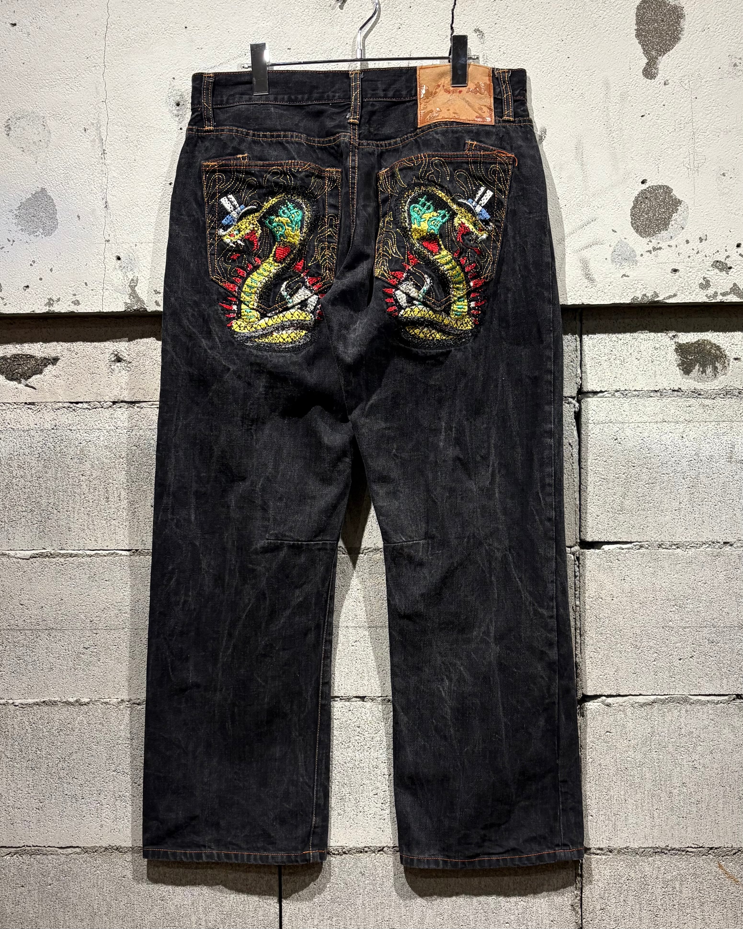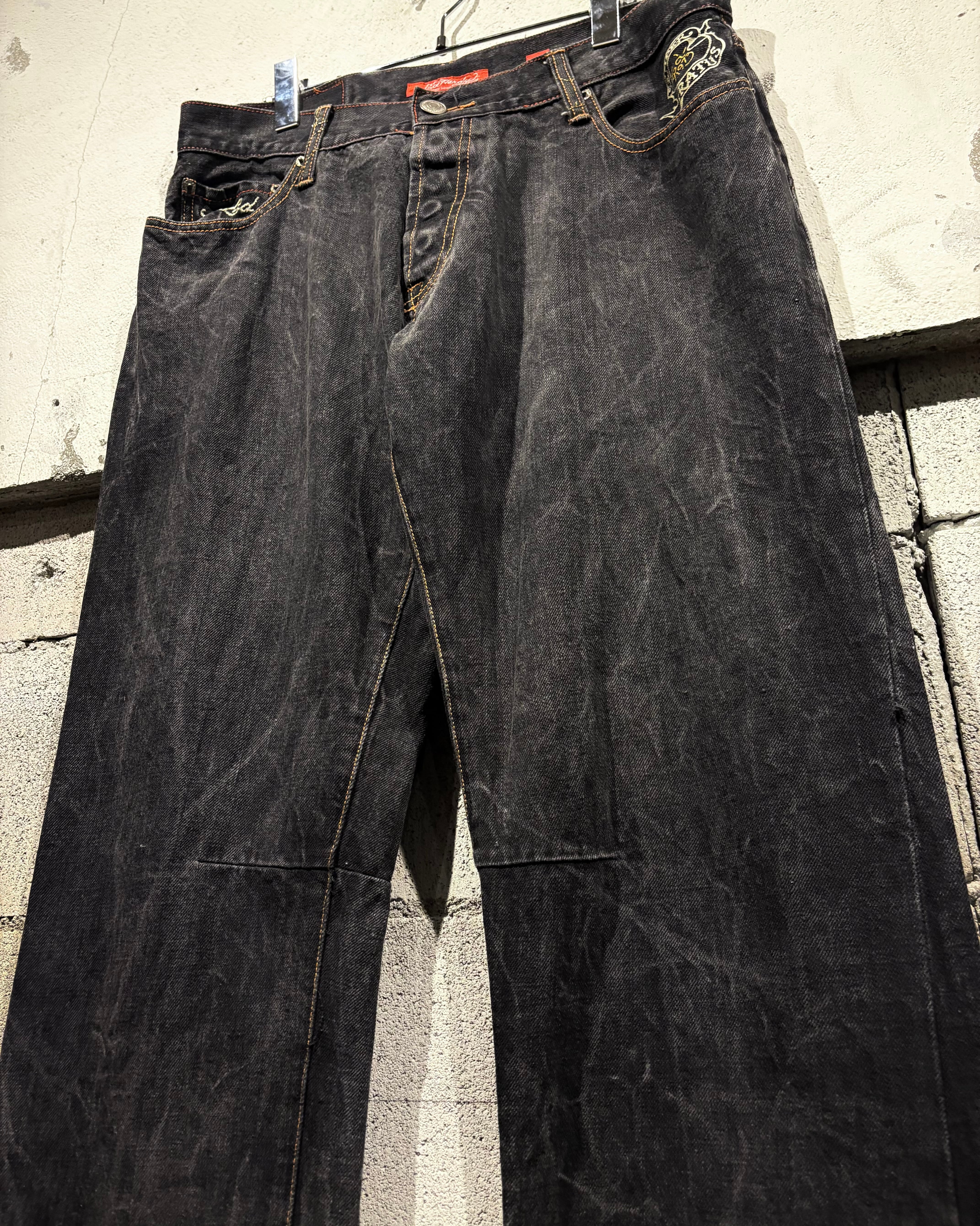 アメリカ西海岸のタトゥーカルチャーとストリートを強く結びつけ、2000年代を象徴する存在として一世を風靡した“Ed Hardy”より、ブランドらしさを全開で感じさせるデニムパンツ。