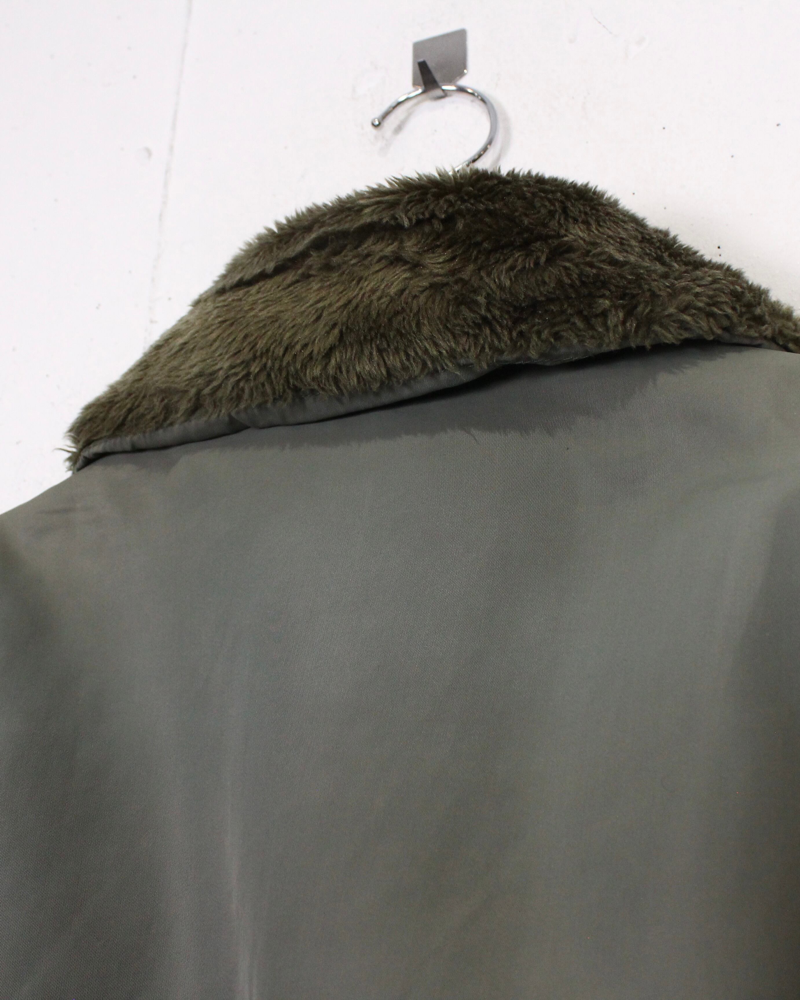 ボディには落ち着いたオリーブトーンのナイロンを採用し、程よくマットな質感とハリ感のある表情が特徴。襟元にはB-15を象徴するボリュームのあるファーカラーを備え、取り外しも可能です◎