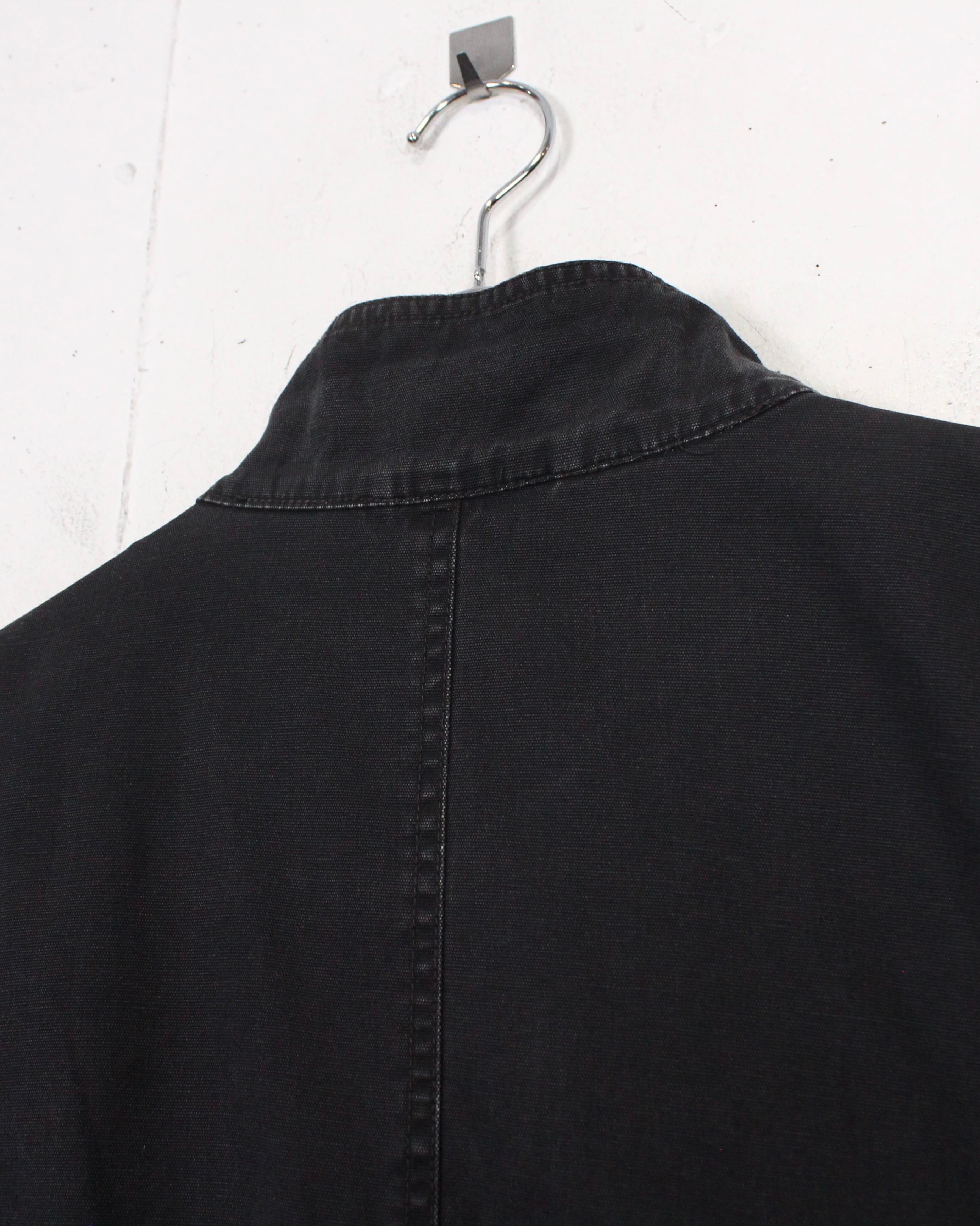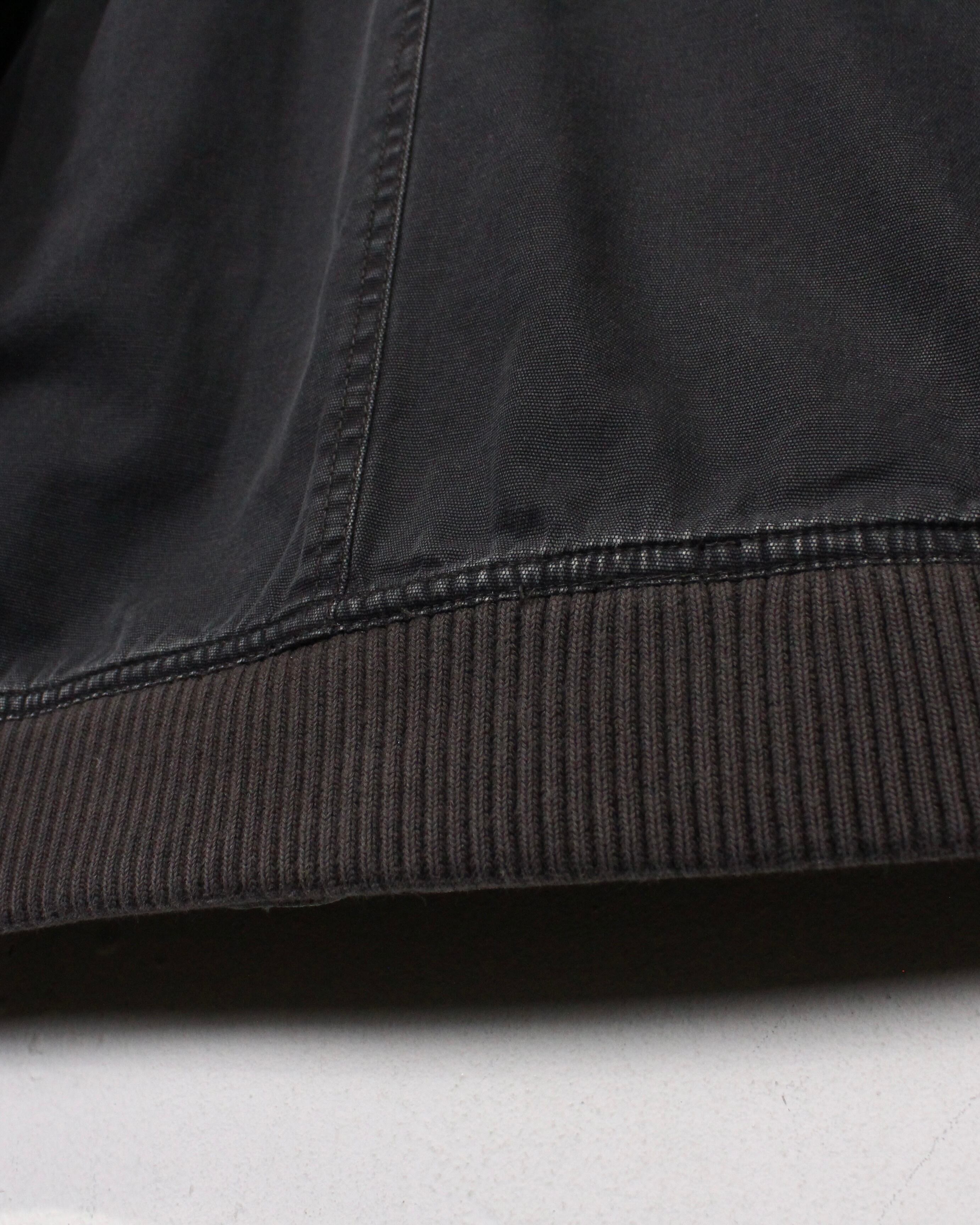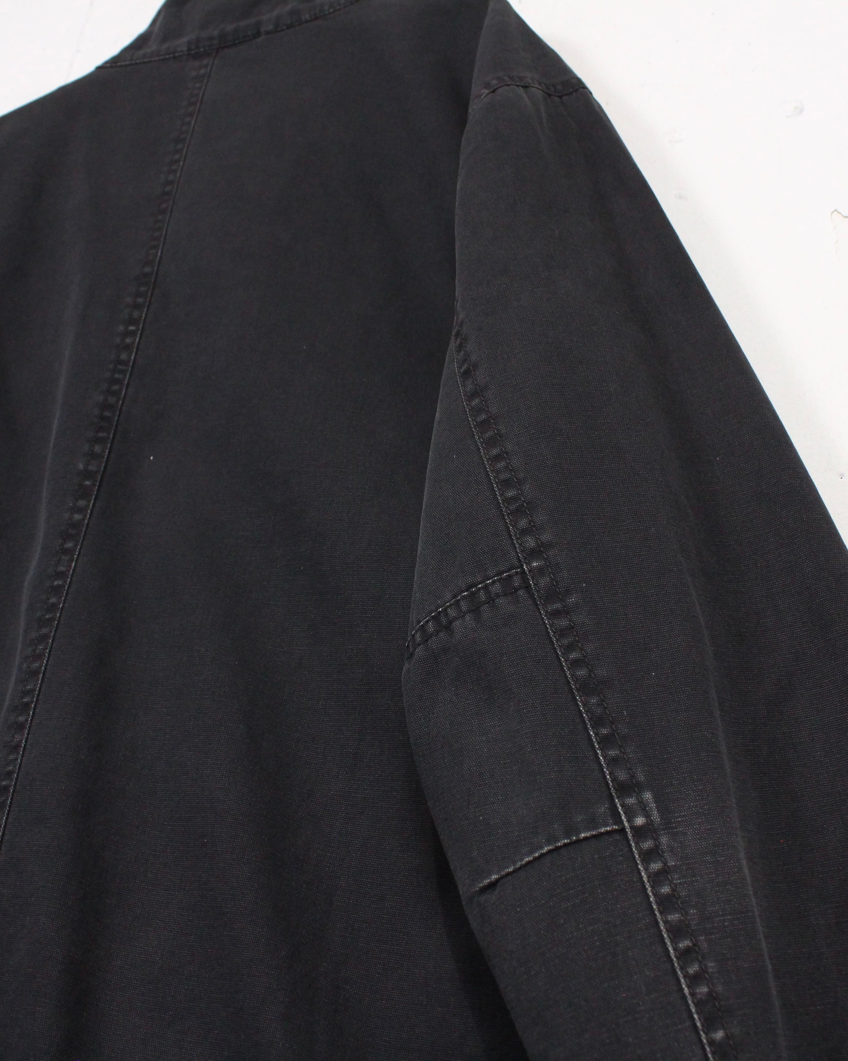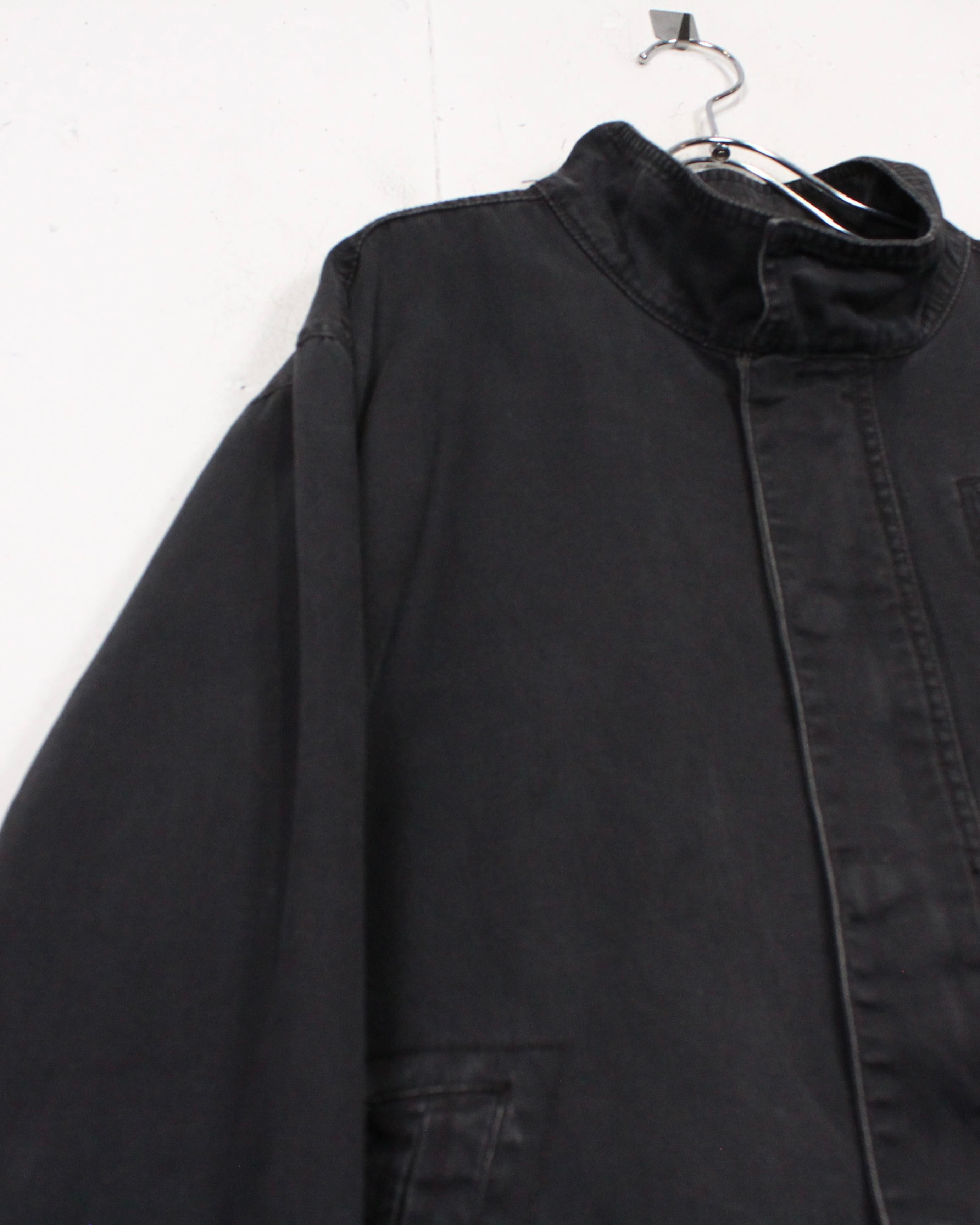 ボディにはハリのあるコットンファブリックを採用。着用と洗いを重ねることで生まれたブラックのフェード感が、均一ではない濃淡となって表情に奥行きを与えています。