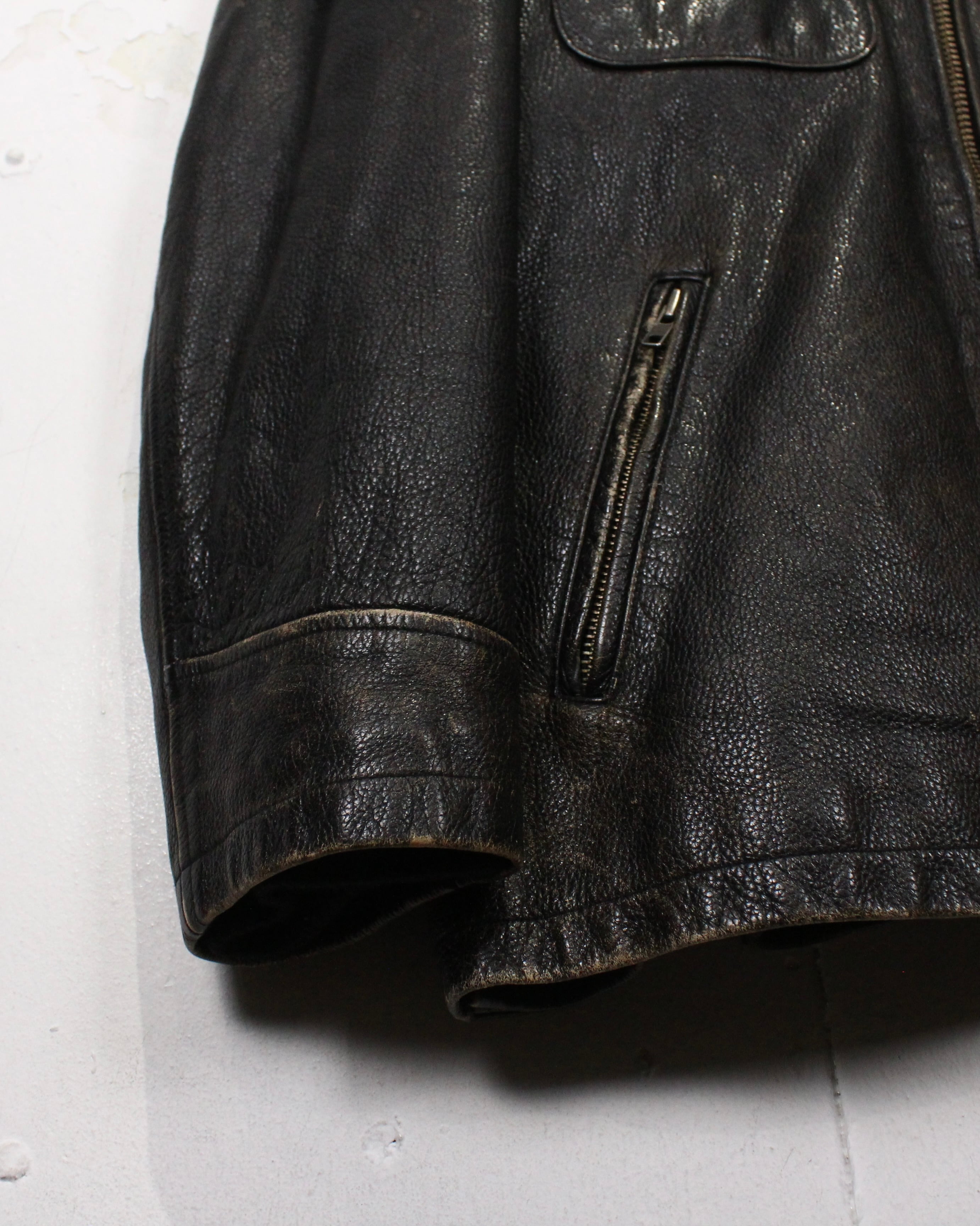 しなやかさとコシを併せ持ったリアルレザーを使用しており、長年の着用によって生まれたエイジングが全面に現れた、非常に表情豊かな1着。