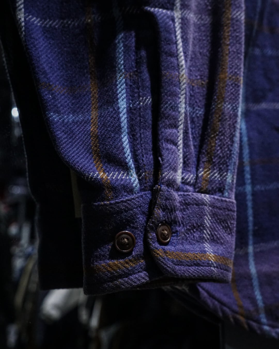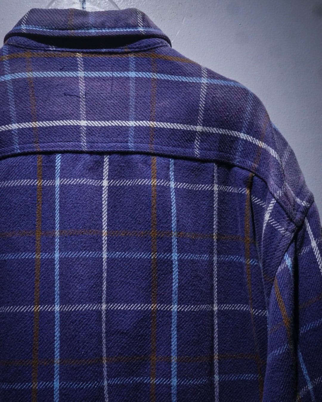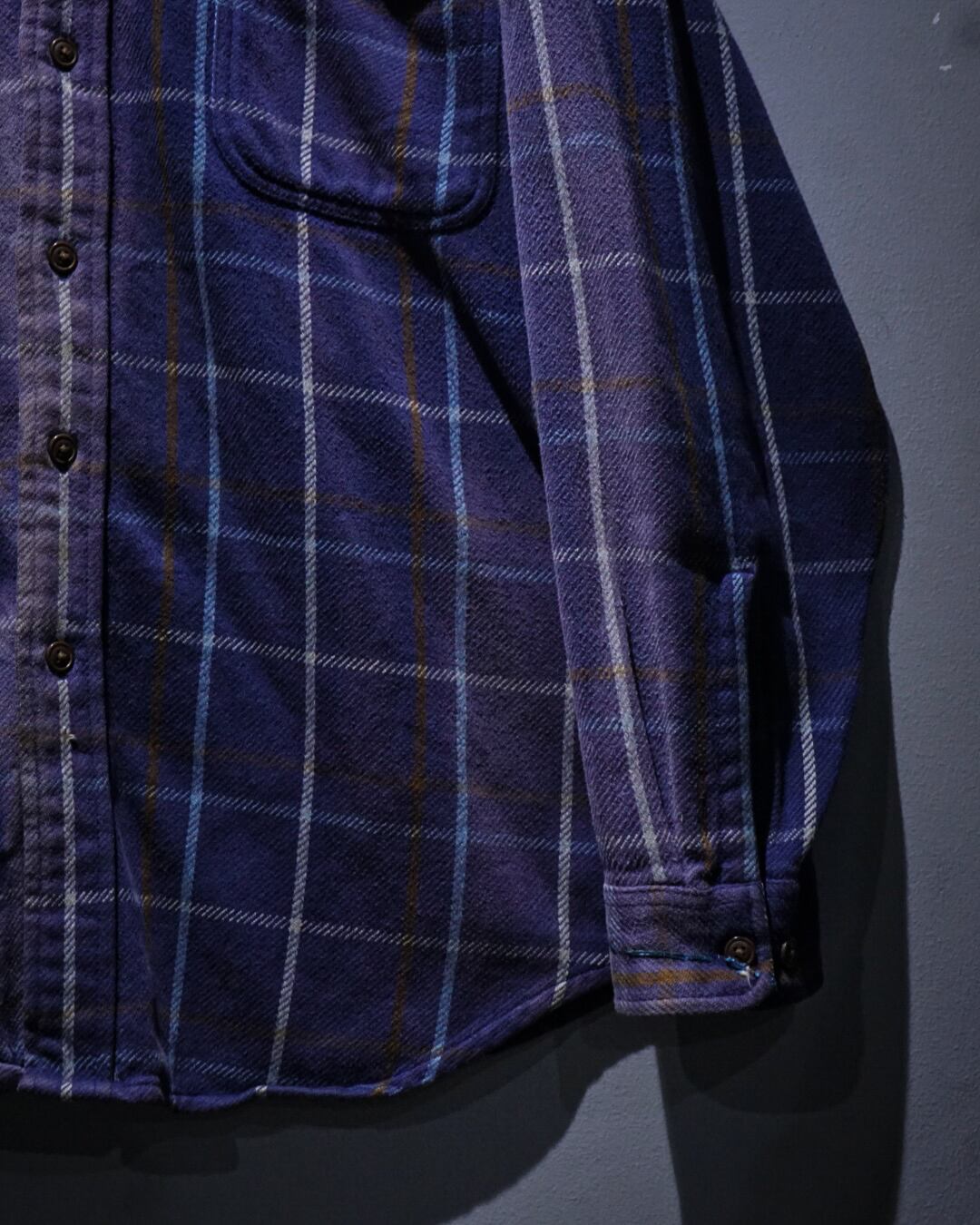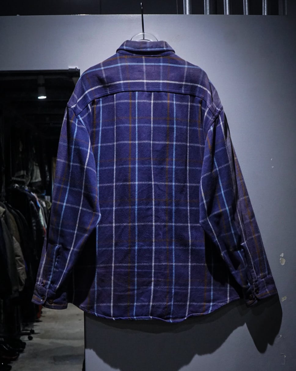 しっかりと肉厚なコットンネルを用いたボディは、着込まれることでのみ生まれる柔らかさとコシを併せ持った質感。ネイビーベースのチェック柄に、長年の着用と日光によって生まれたサンフェードが重なり、ヴィンテージならではの奥行きある表情へと仕上がっています。