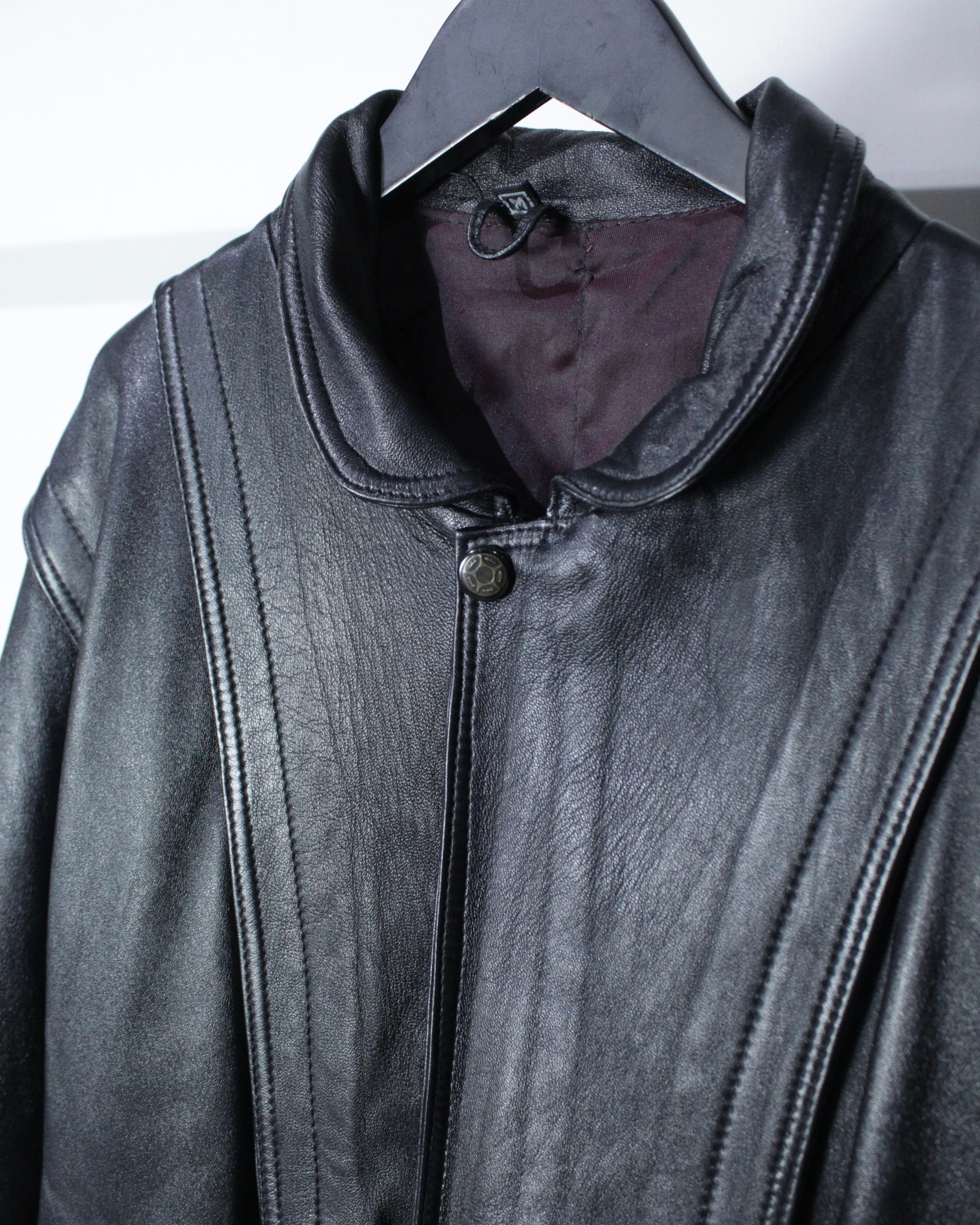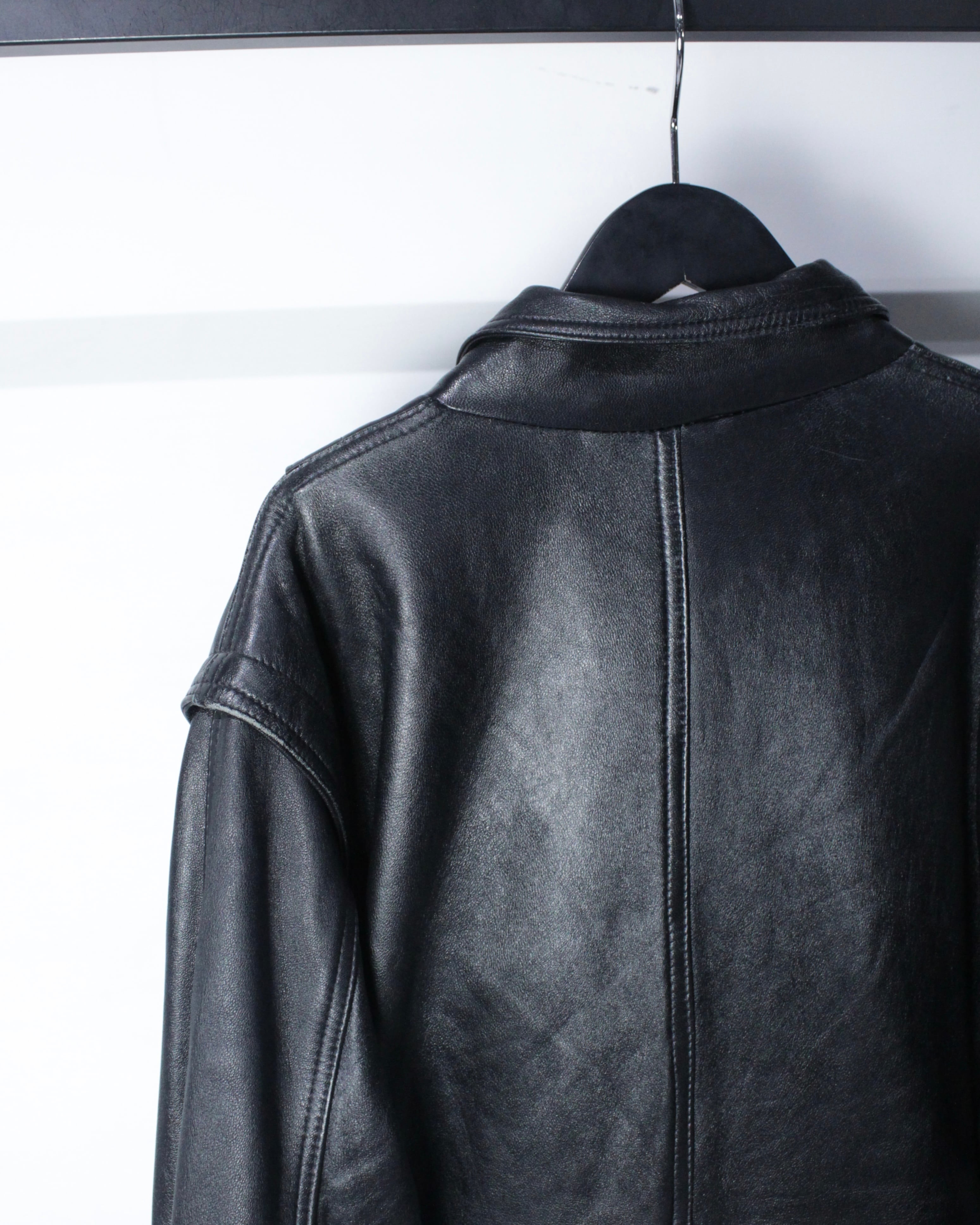 上質なブラックレザーを贅沢に用いた、重厚感としなやかさを併せ持つレザージャケット。