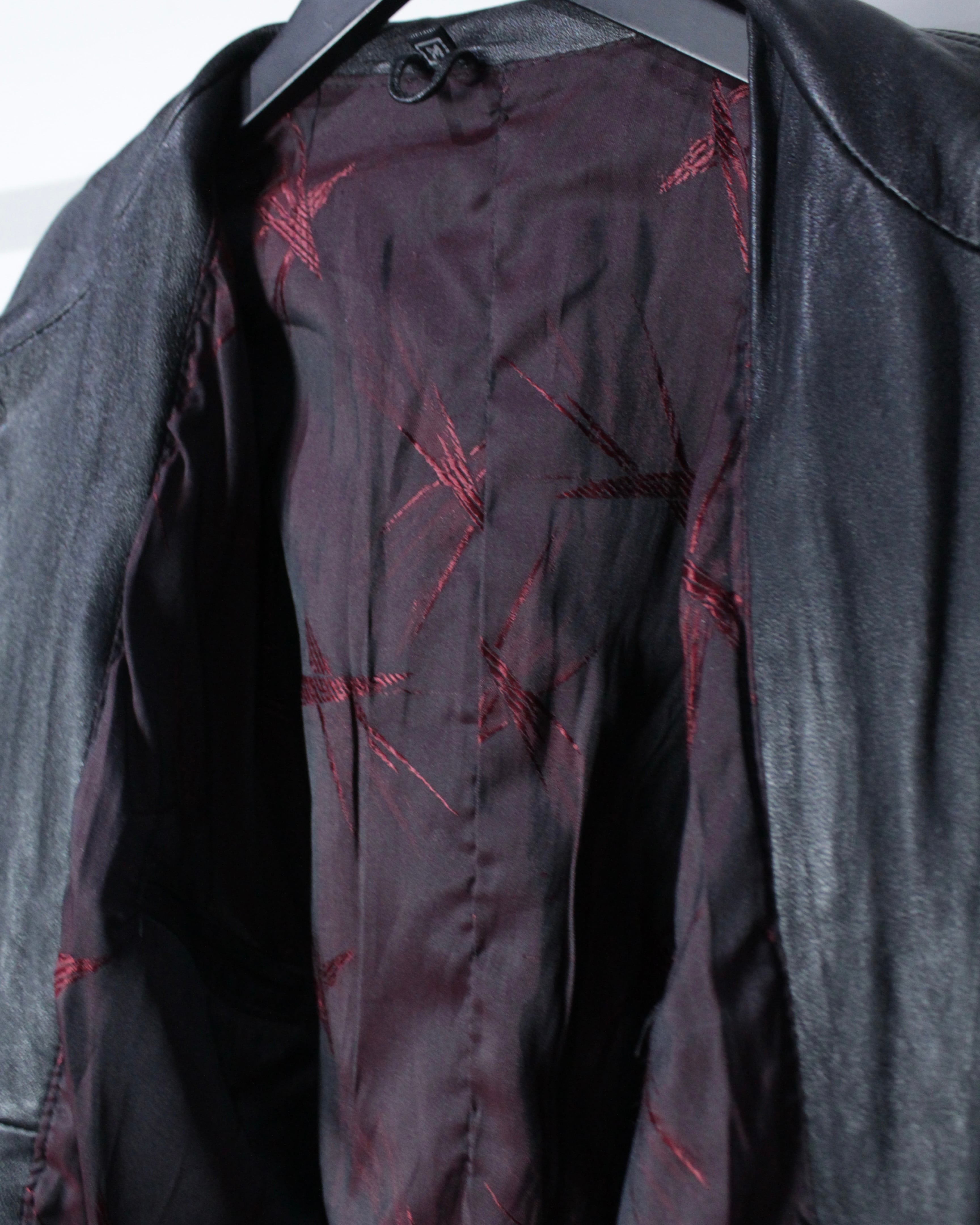 レザーの質感、計算されたパターン、そして内側の遊び心まで含め、ファッションとしての完成度が高いレザージャケットの逸品です。