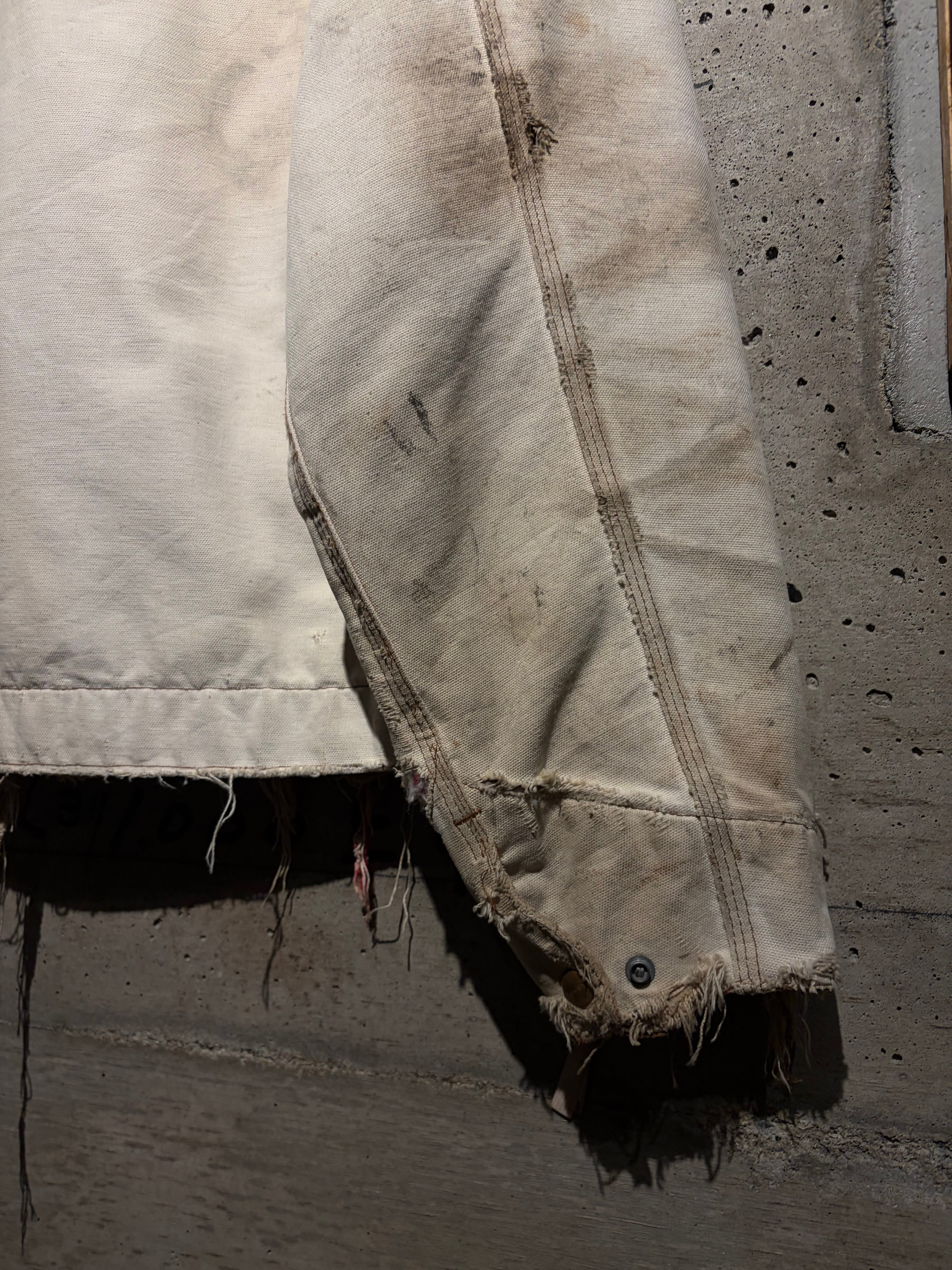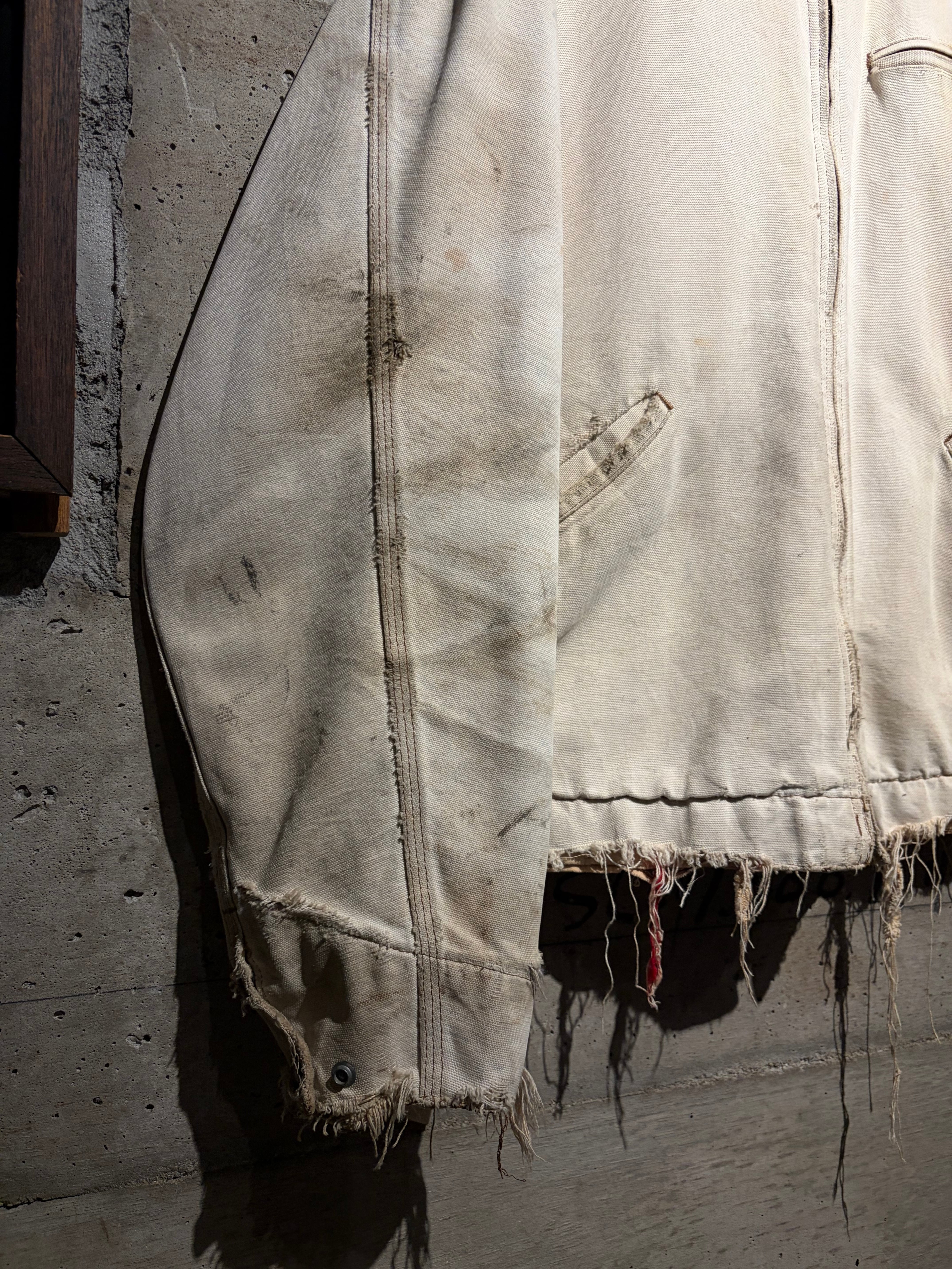 タフなダック地をベースに長年の着用によるフェード感や擦れ、ダメージ等が重なった、量産では決して再現できないヴィンテージならではの表情が生み出されたスペシャルな1着。