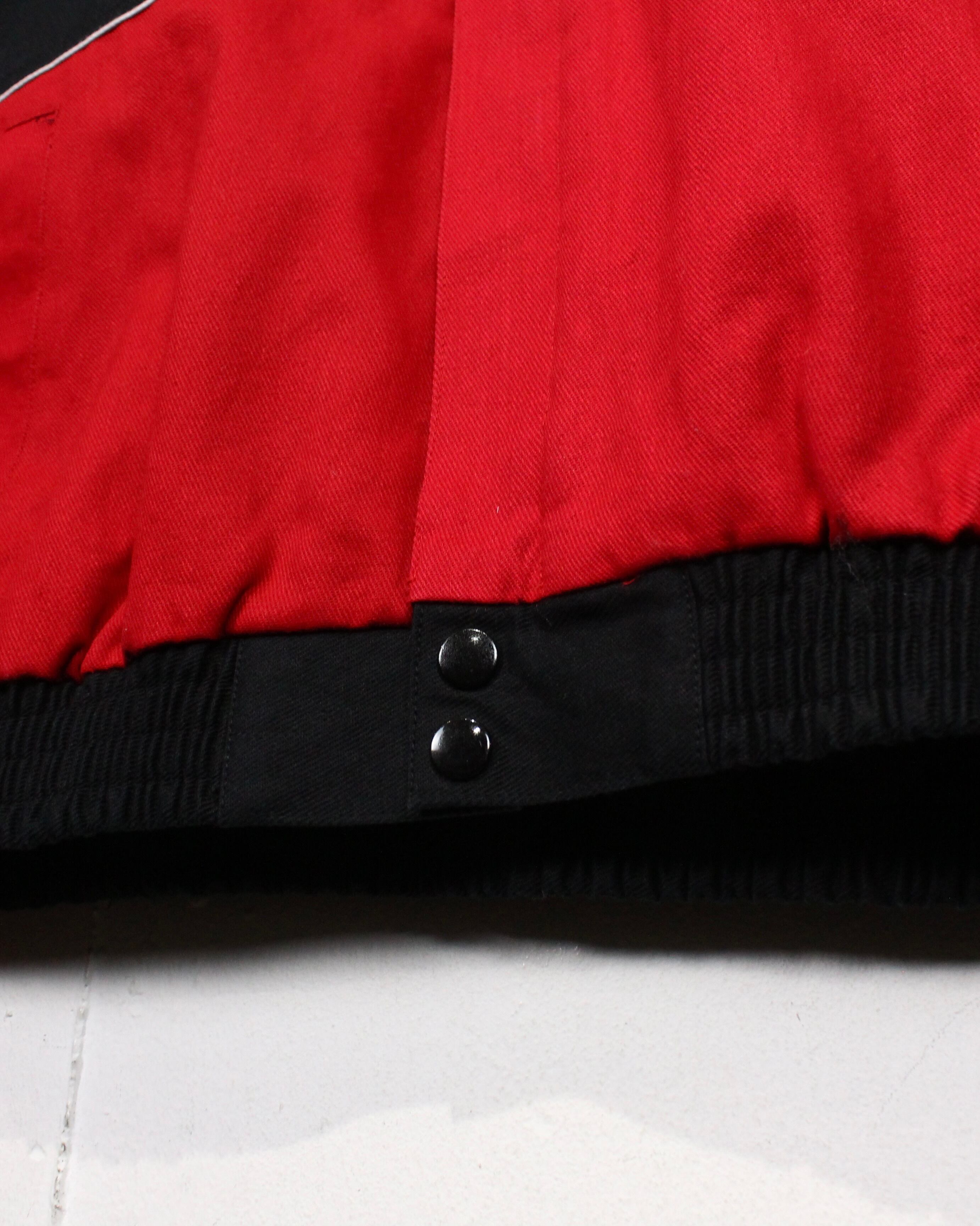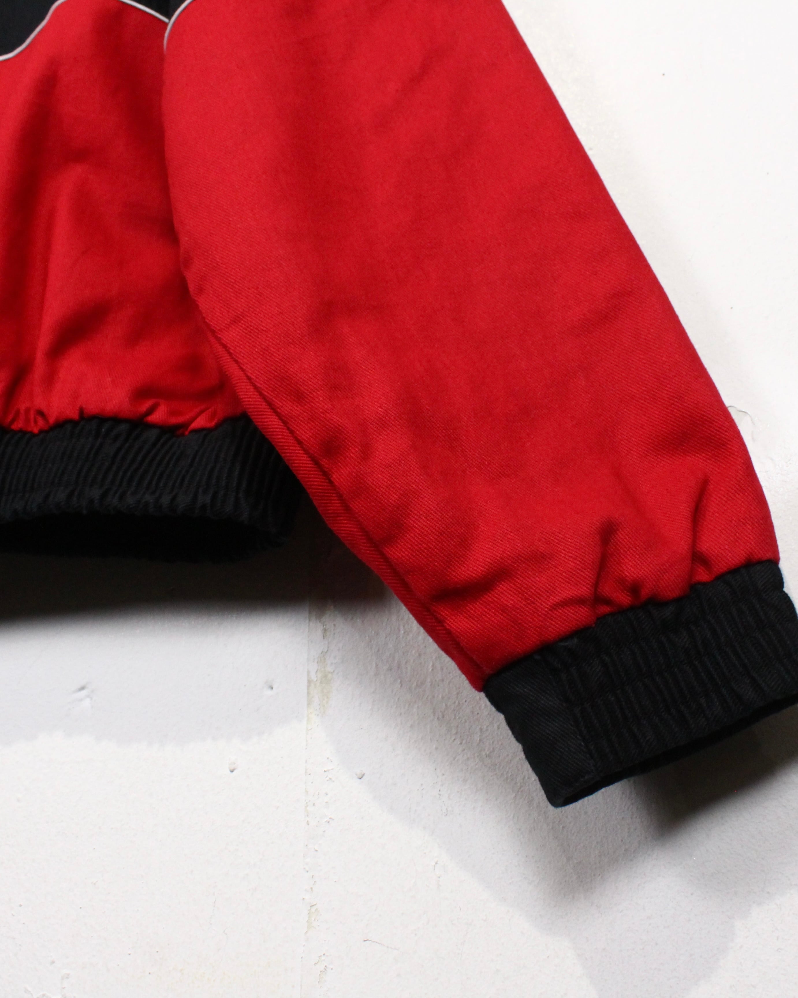 タフでコシがありながらも柔らかさを兼ね備えたコットンツイルをボディに用いて、赤×黒でボディを切り替えたレーシングジャケット。