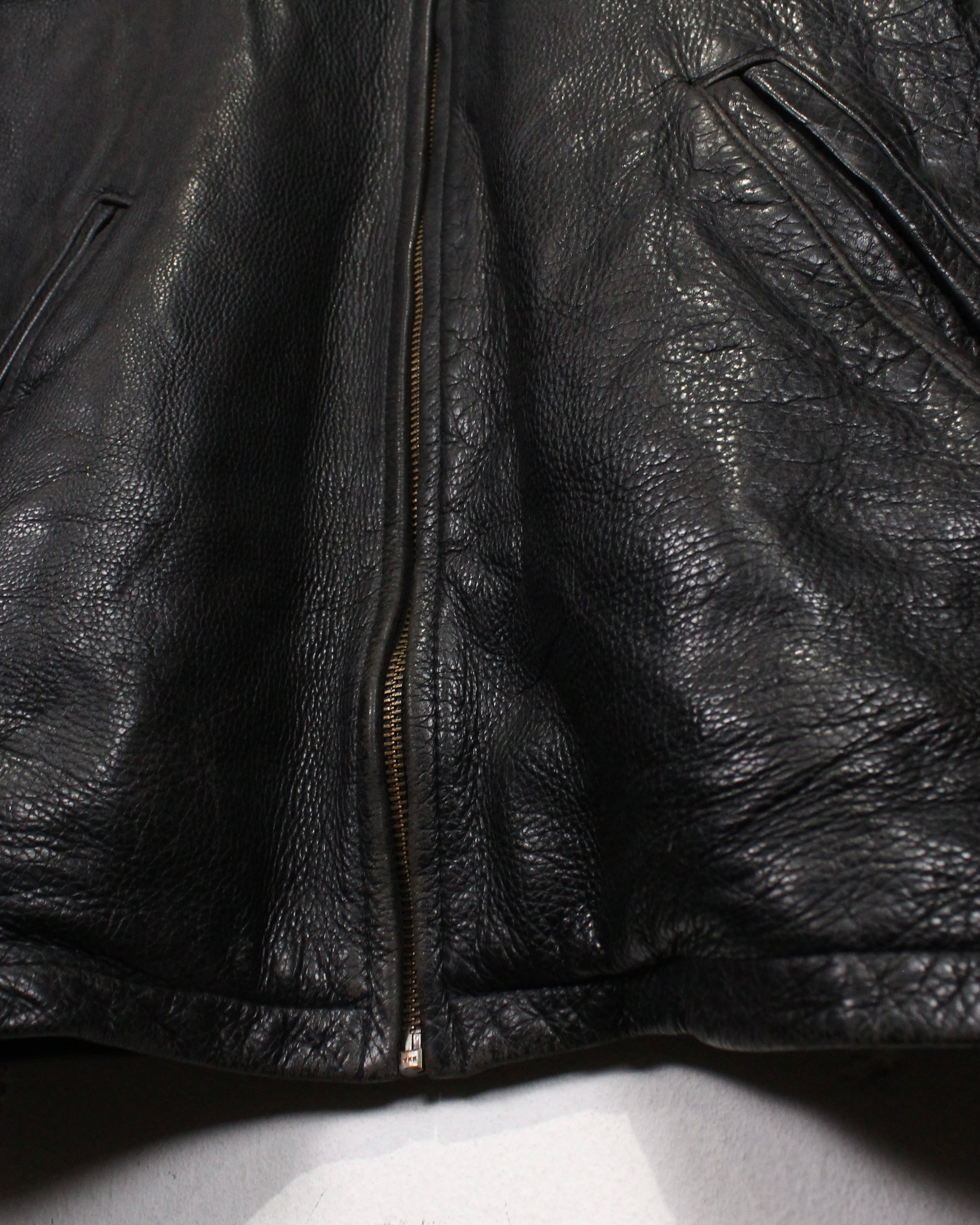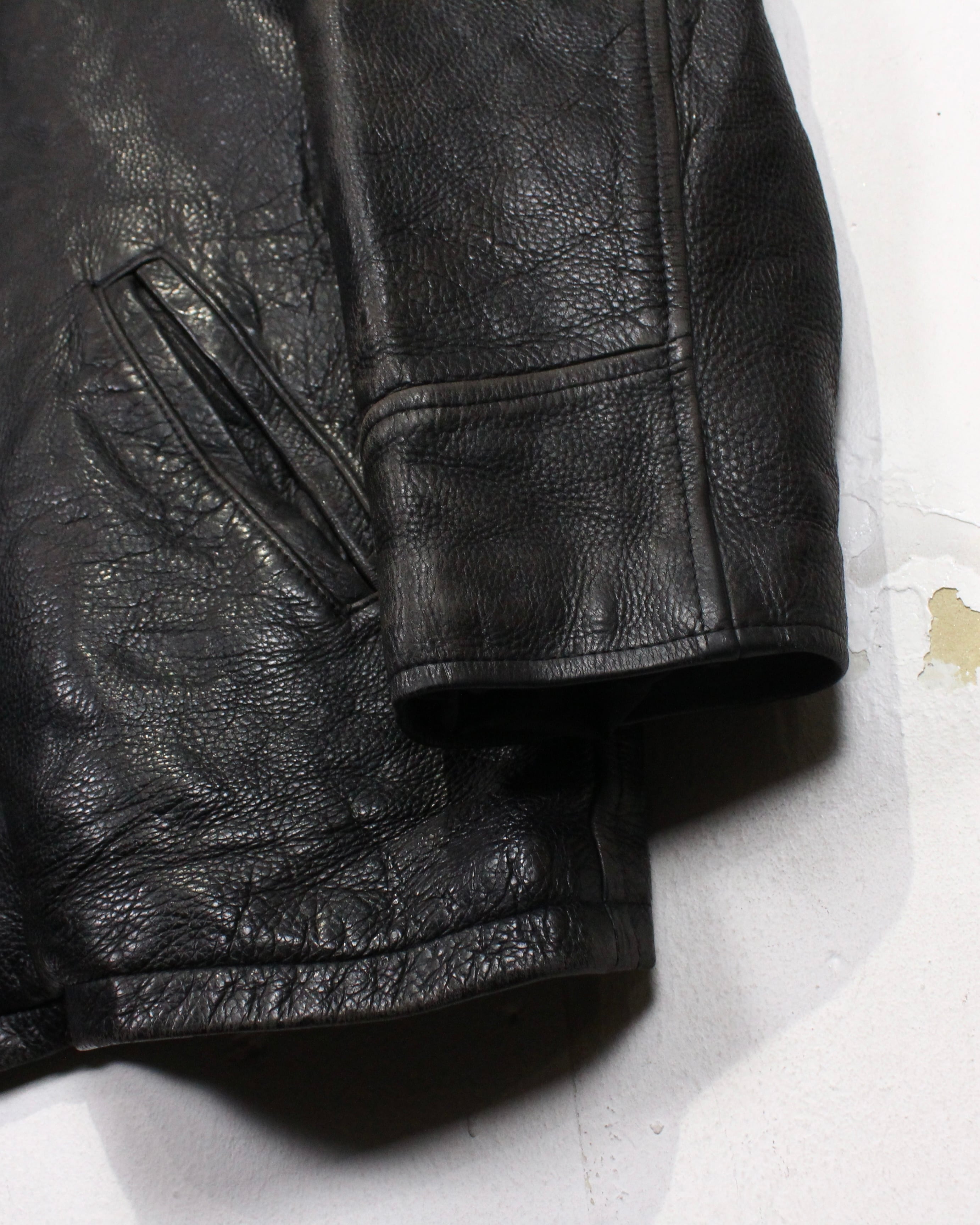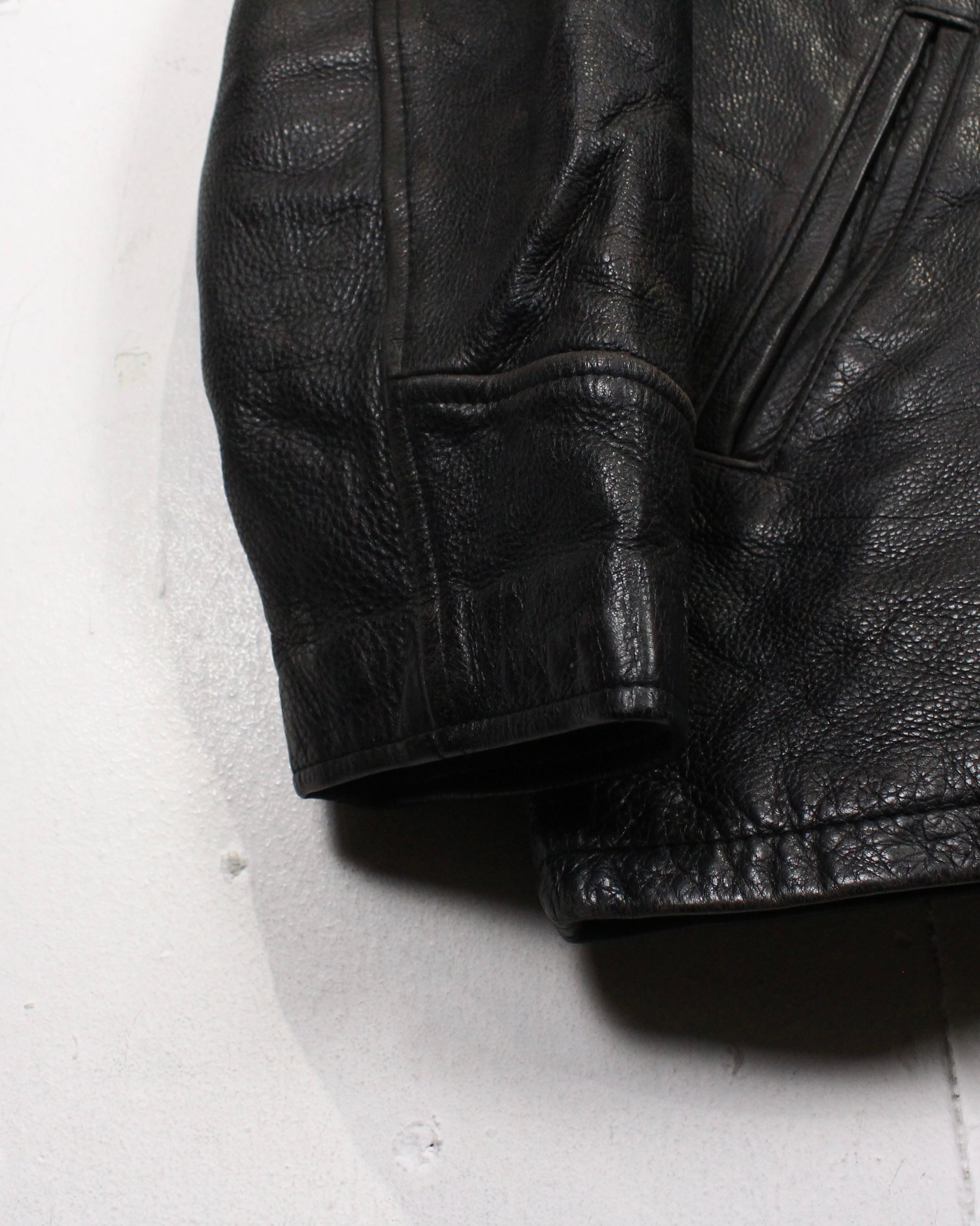 裏地付きで袖通しも良く、レザー特有の硬さを感じさせない着心地。防風性も高く、秋冬のメインアウターとしてしっかり活躍します。