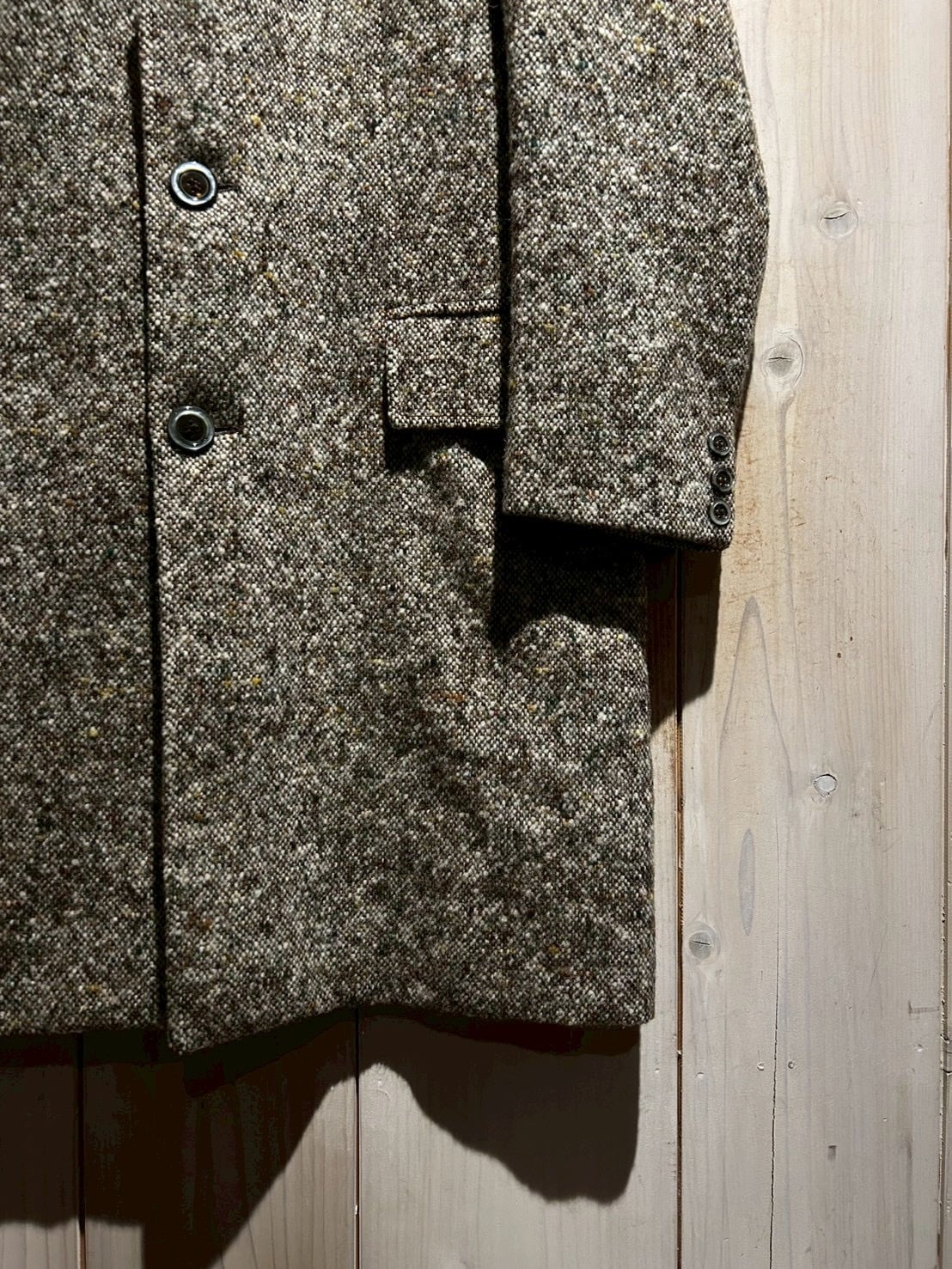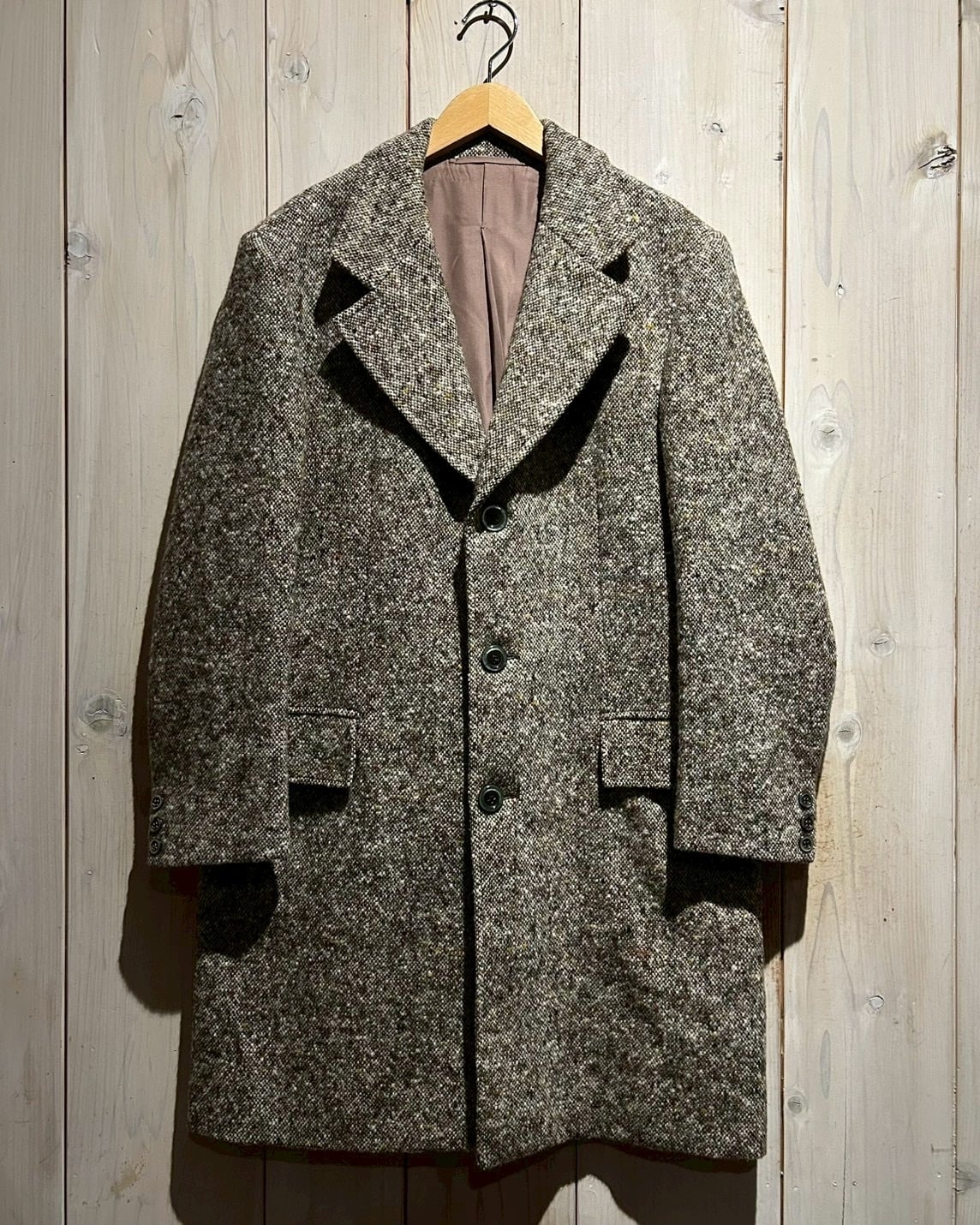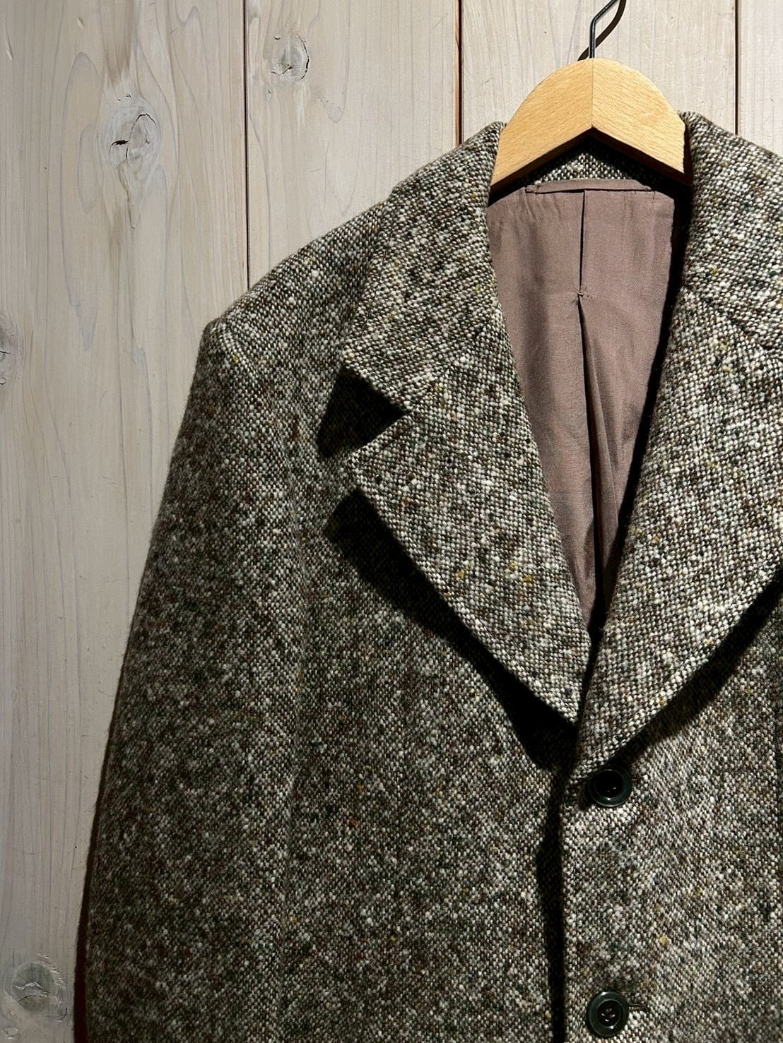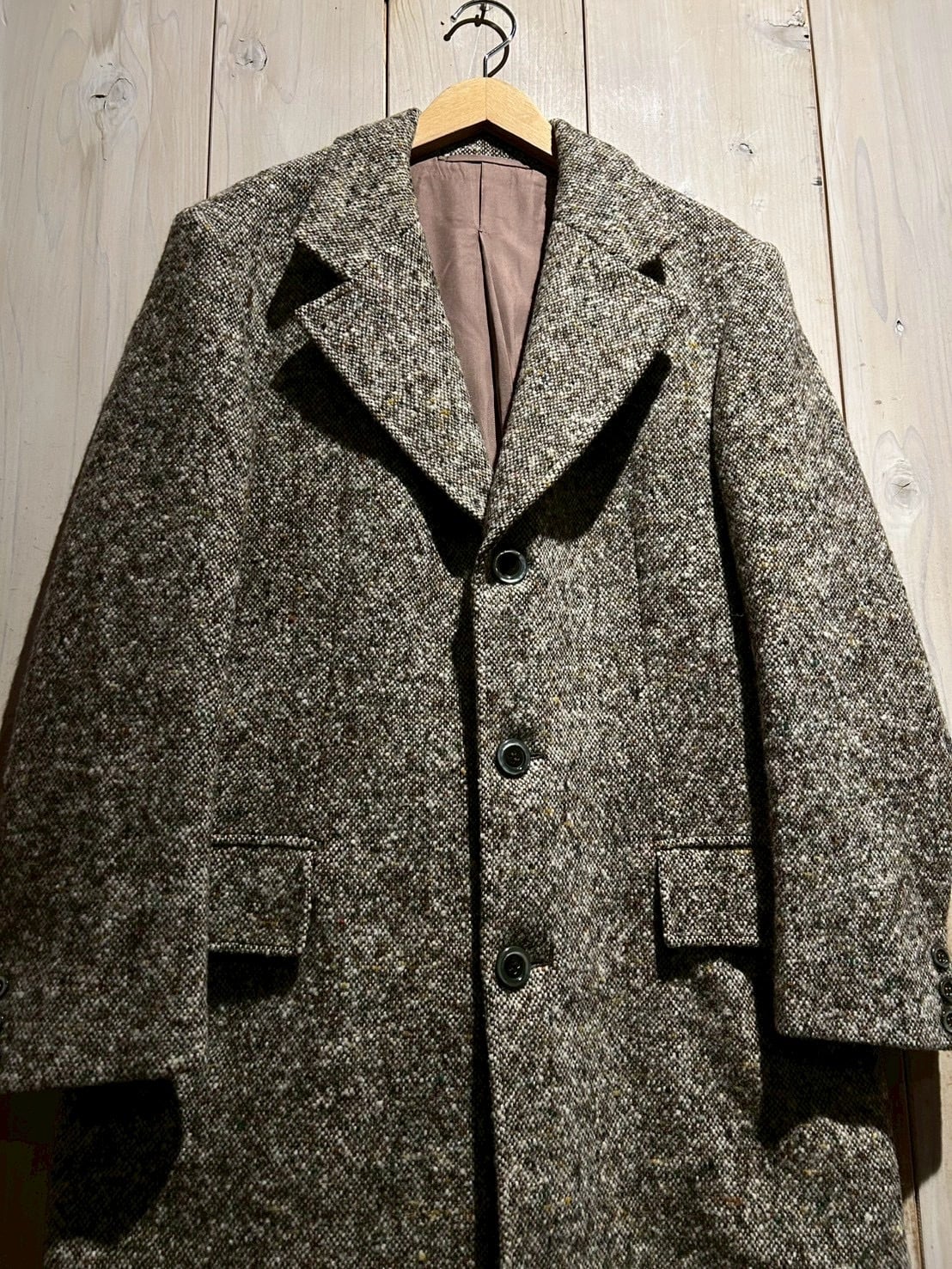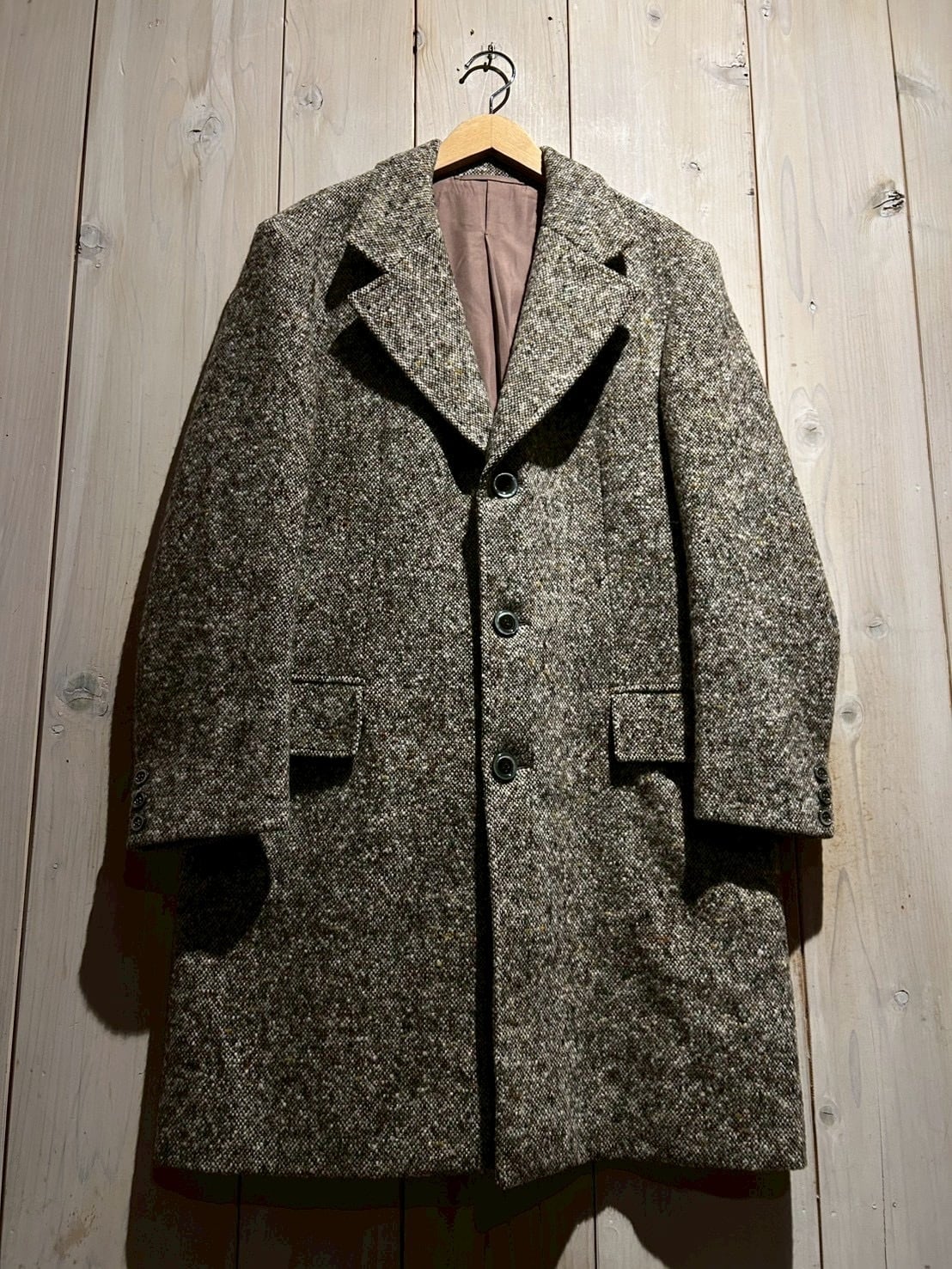 温かみのある表情とクラシックな佇まいが魅力の、ツイードを用いたヴィンテージコート。