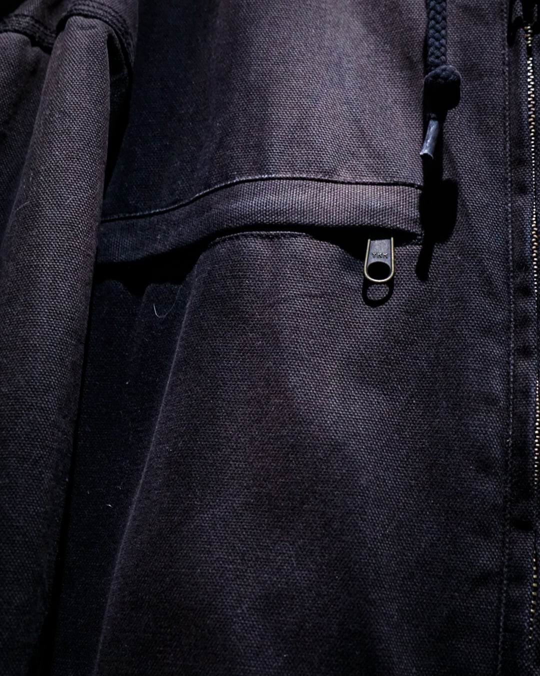フロントジップ仕様で着脱も容易。フード付きのため防風性も高く、インナー次第で長いシーズン活躍。ヘビーすぎないバランス感で、デイリーに落とし込みやすい点もポイントです。
