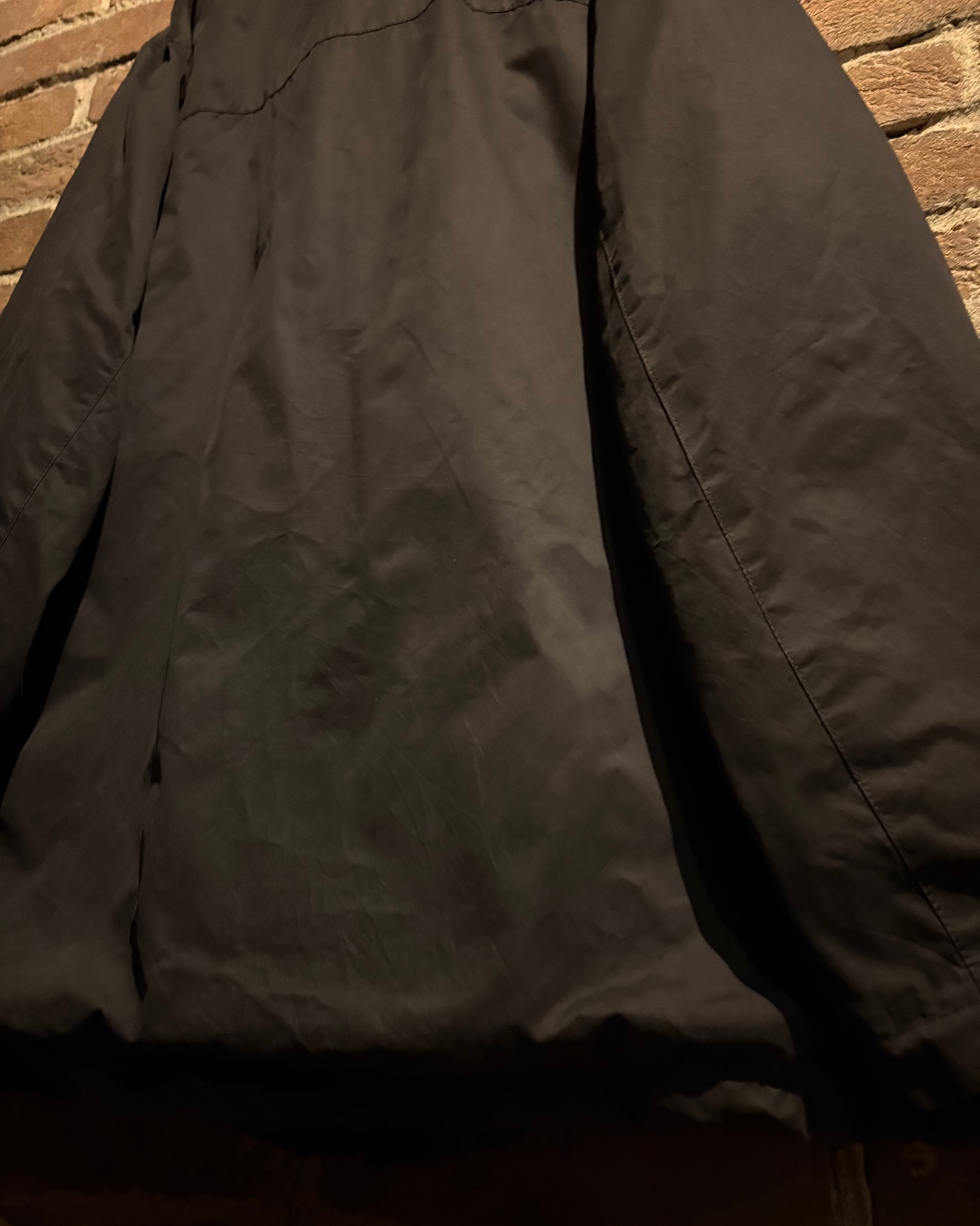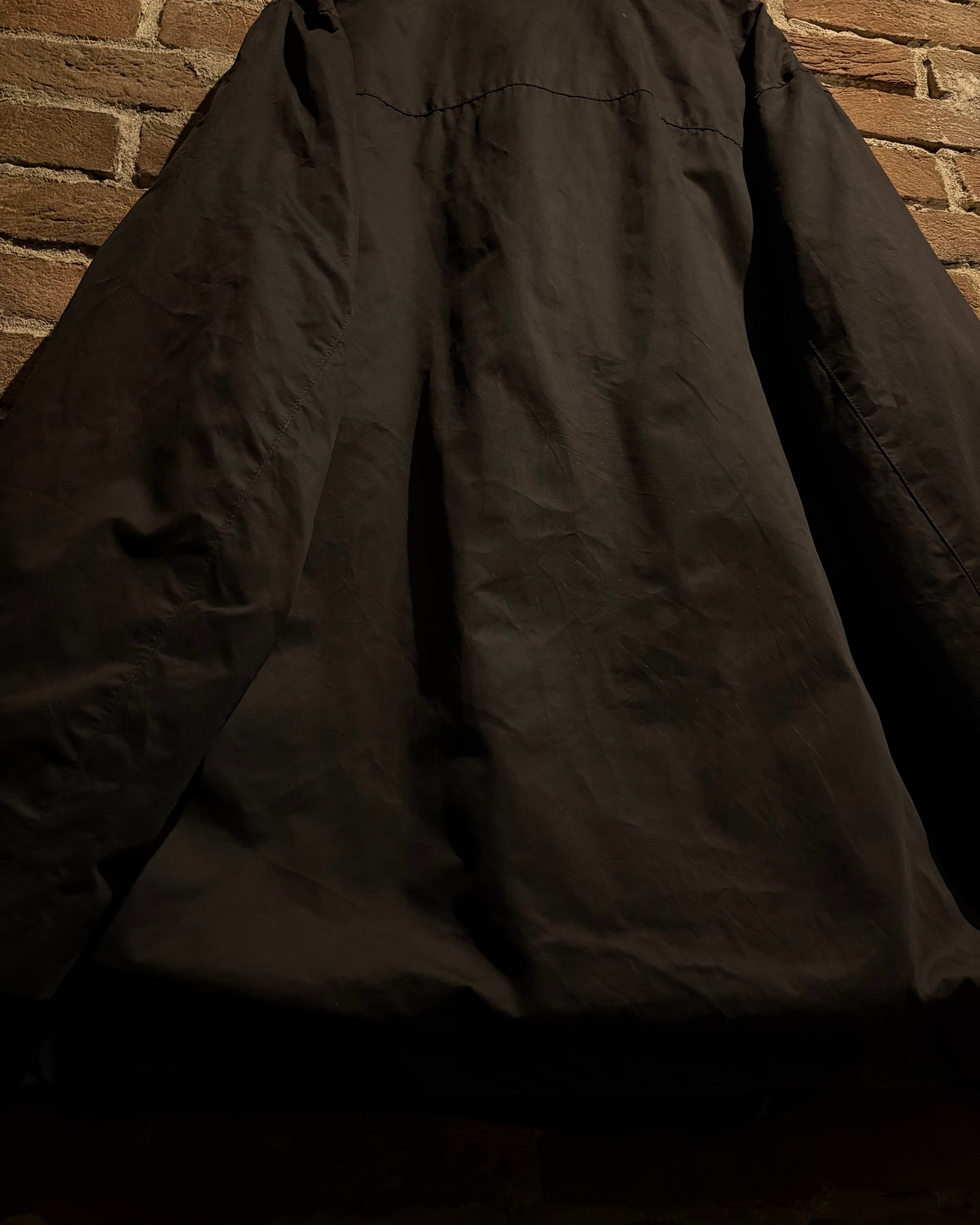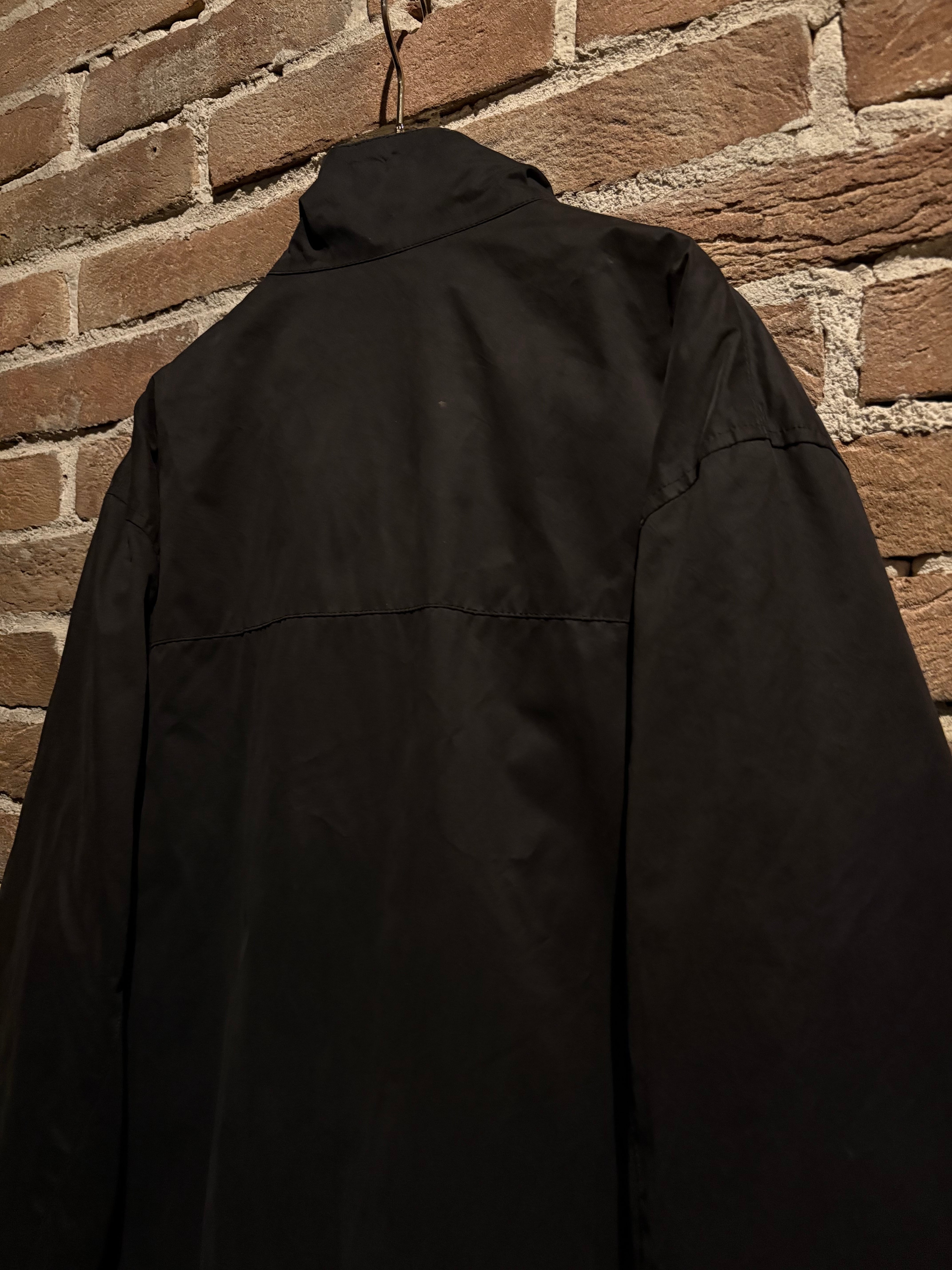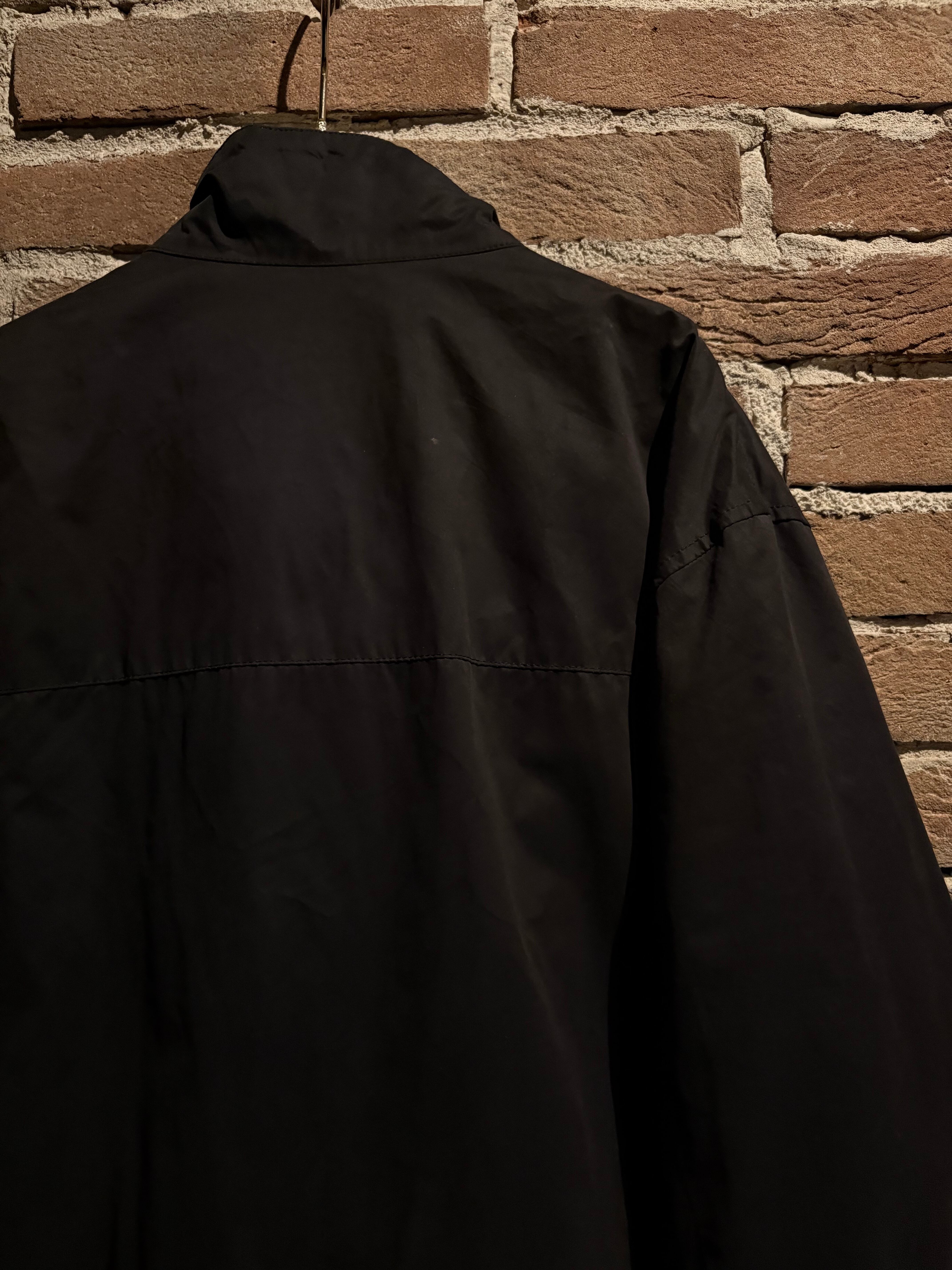 首元はスタンドカラー仕様となっており、ジップを上まで閉めた際の立体的なシルエットが非常に美しく、顔周りをシャープに演出。フロントは比翼仕立てで、ジップやスナップを隠すことでクリーンな印象に仕上げられています。ジップトップにはブランド刻印入りのパーツを採用し、さりげない主張も抜かりありません。