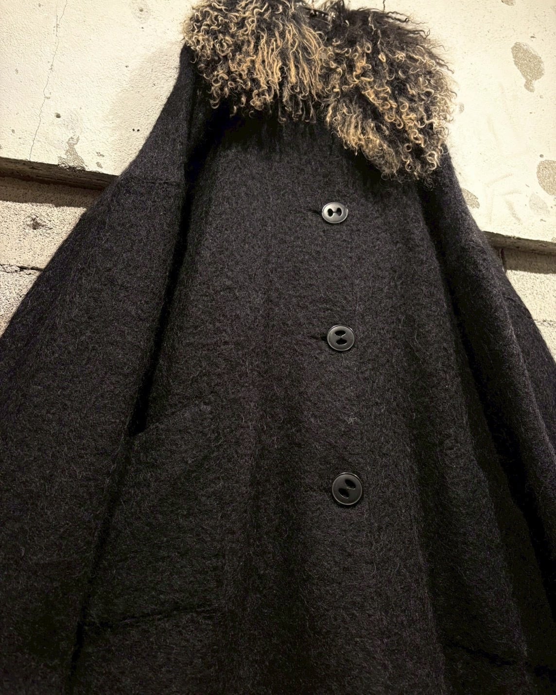 ボリュームのある襟で他とは一線を画する存在感を放つ、スペシャルなウールコート。