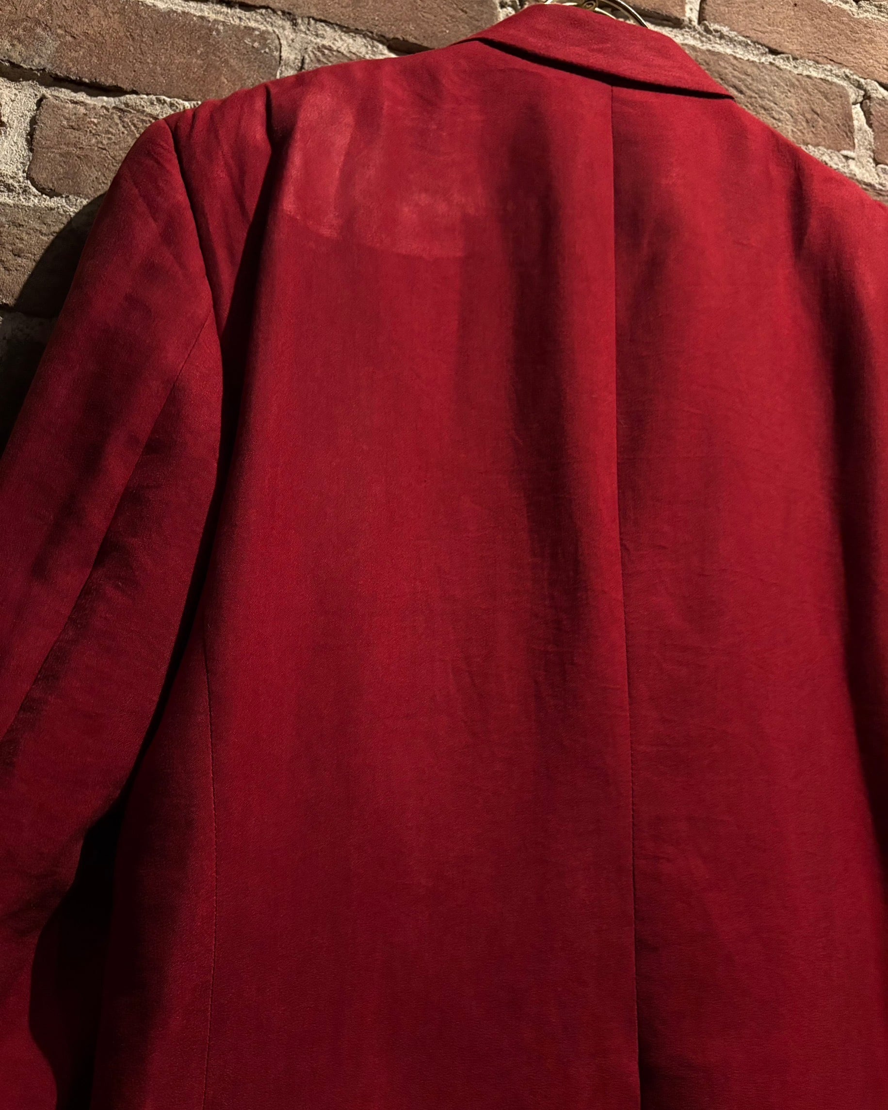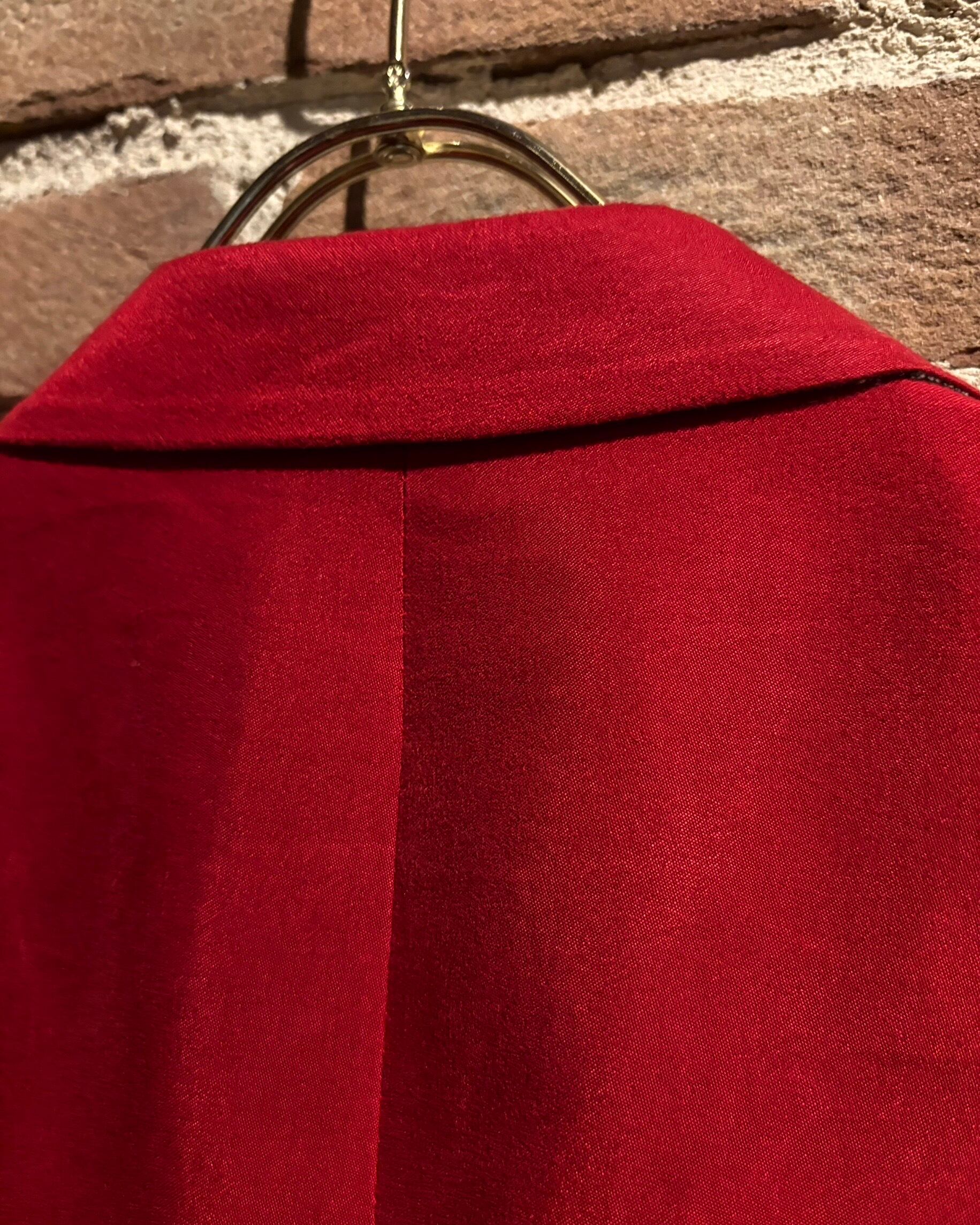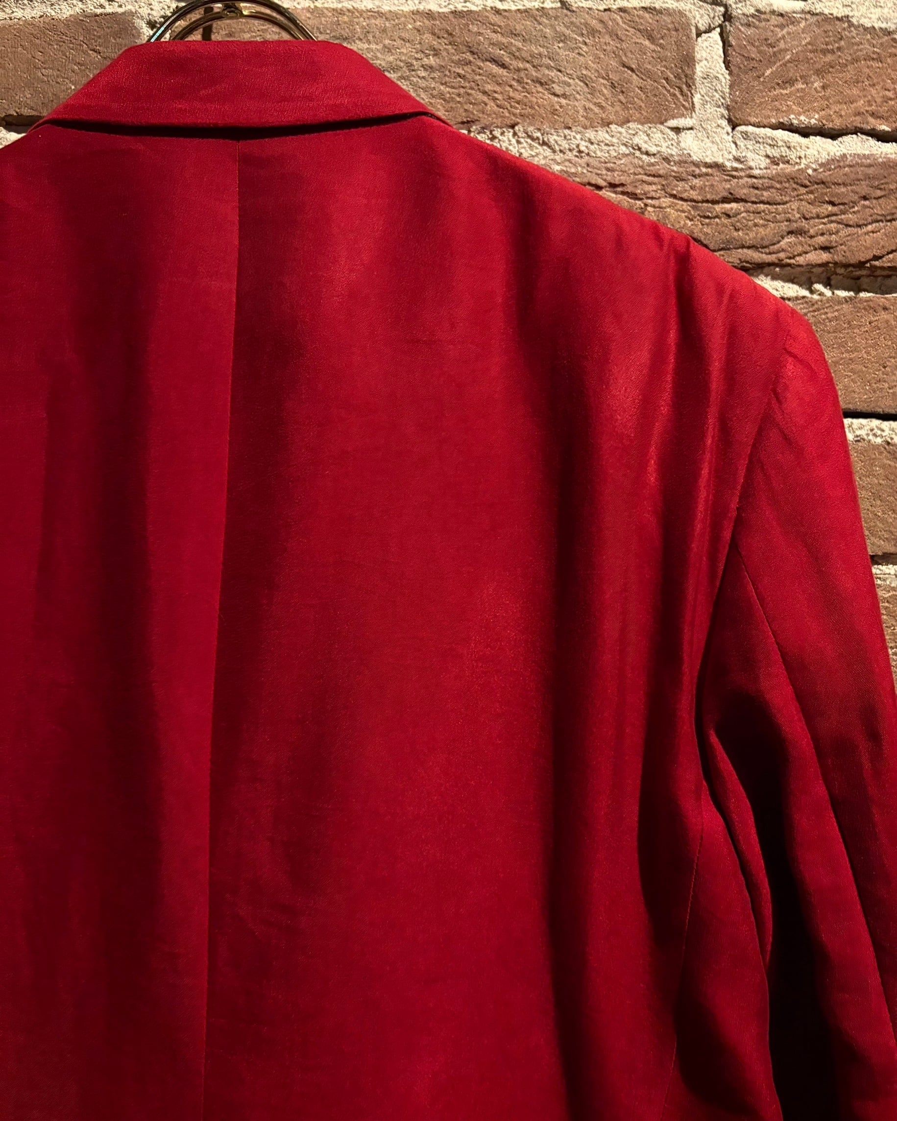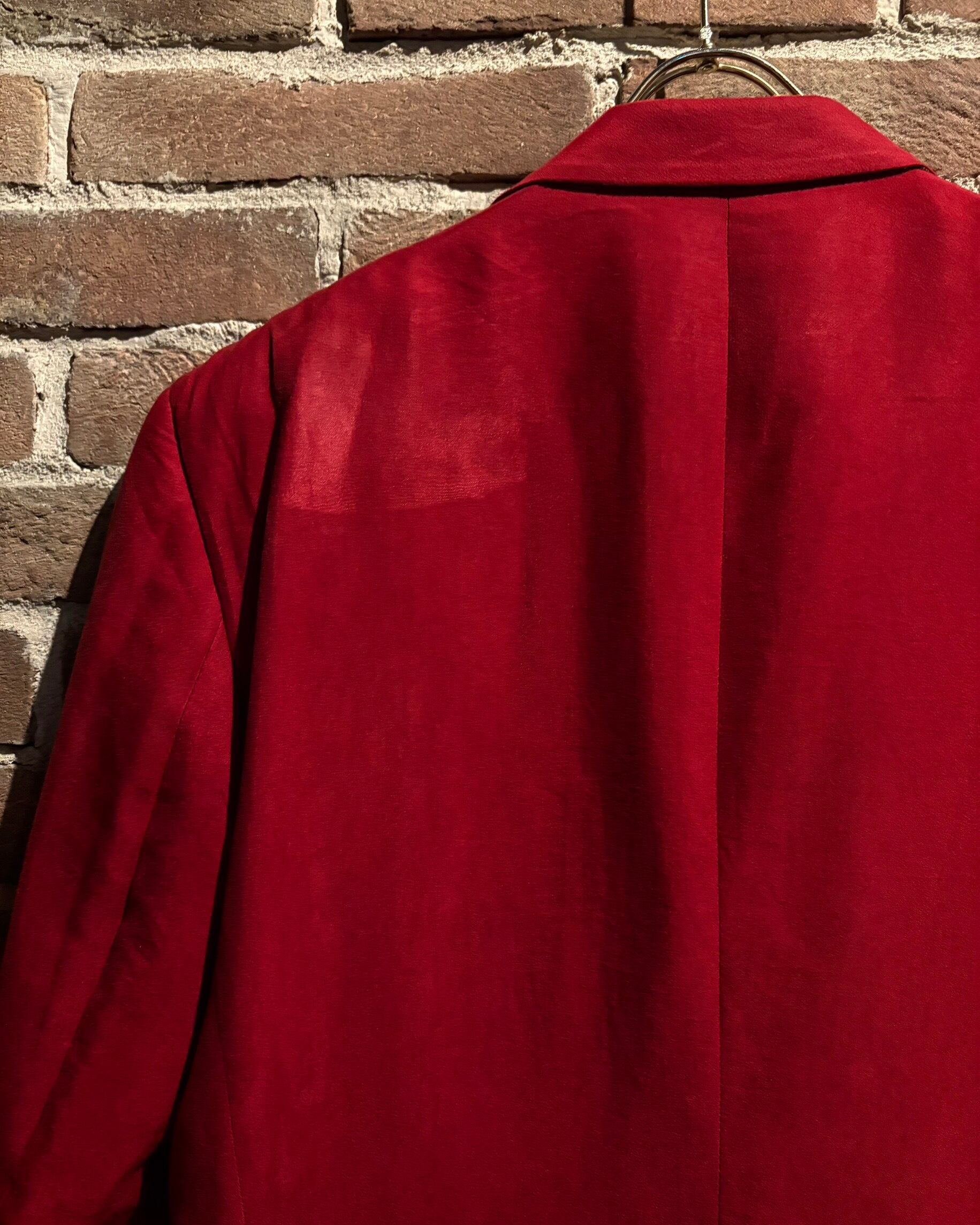 フロントはシングルブレスト仕様。美しいショルダーラインと、身体に沿いすぎないバランスの取れたシルエットが、モードにもクラシックにも振れる懐の深さを演出。ヴィンテージながら現代的なスタイリングにも自然に馴染みます。
