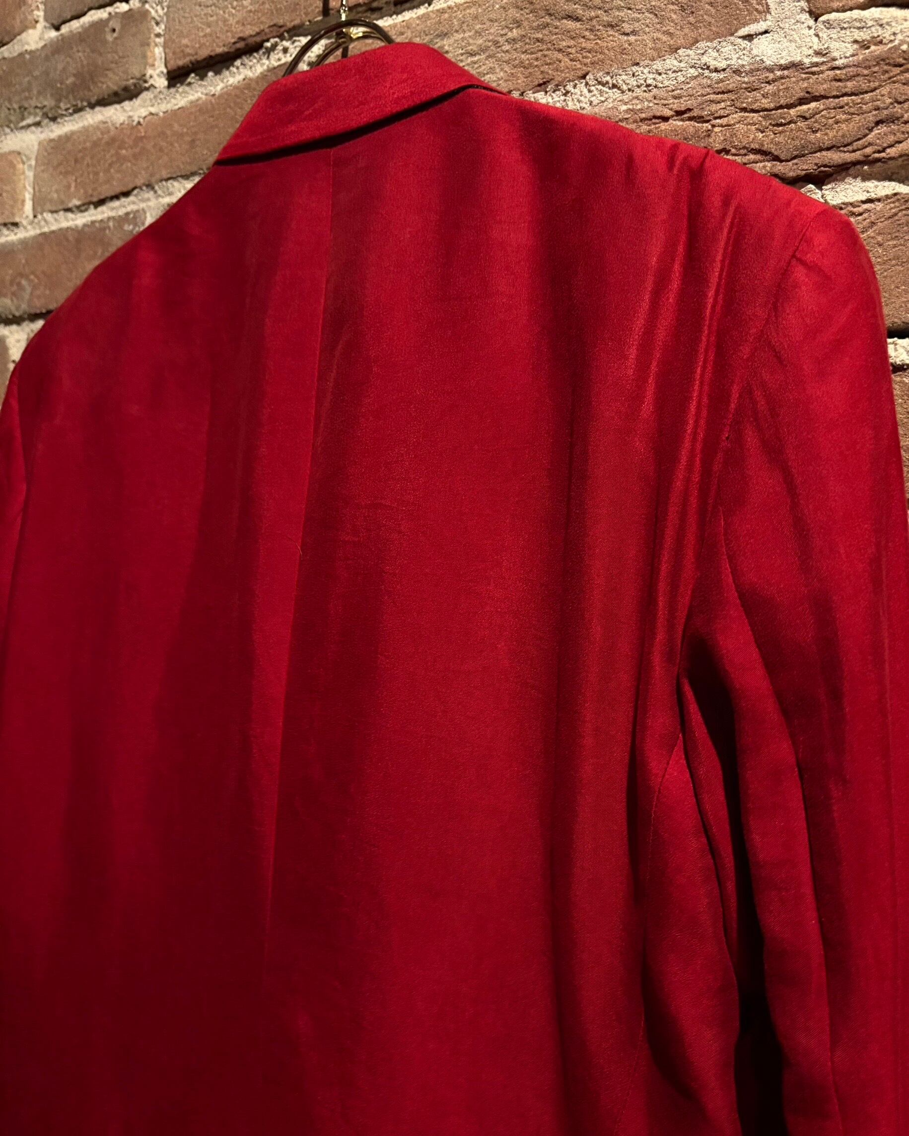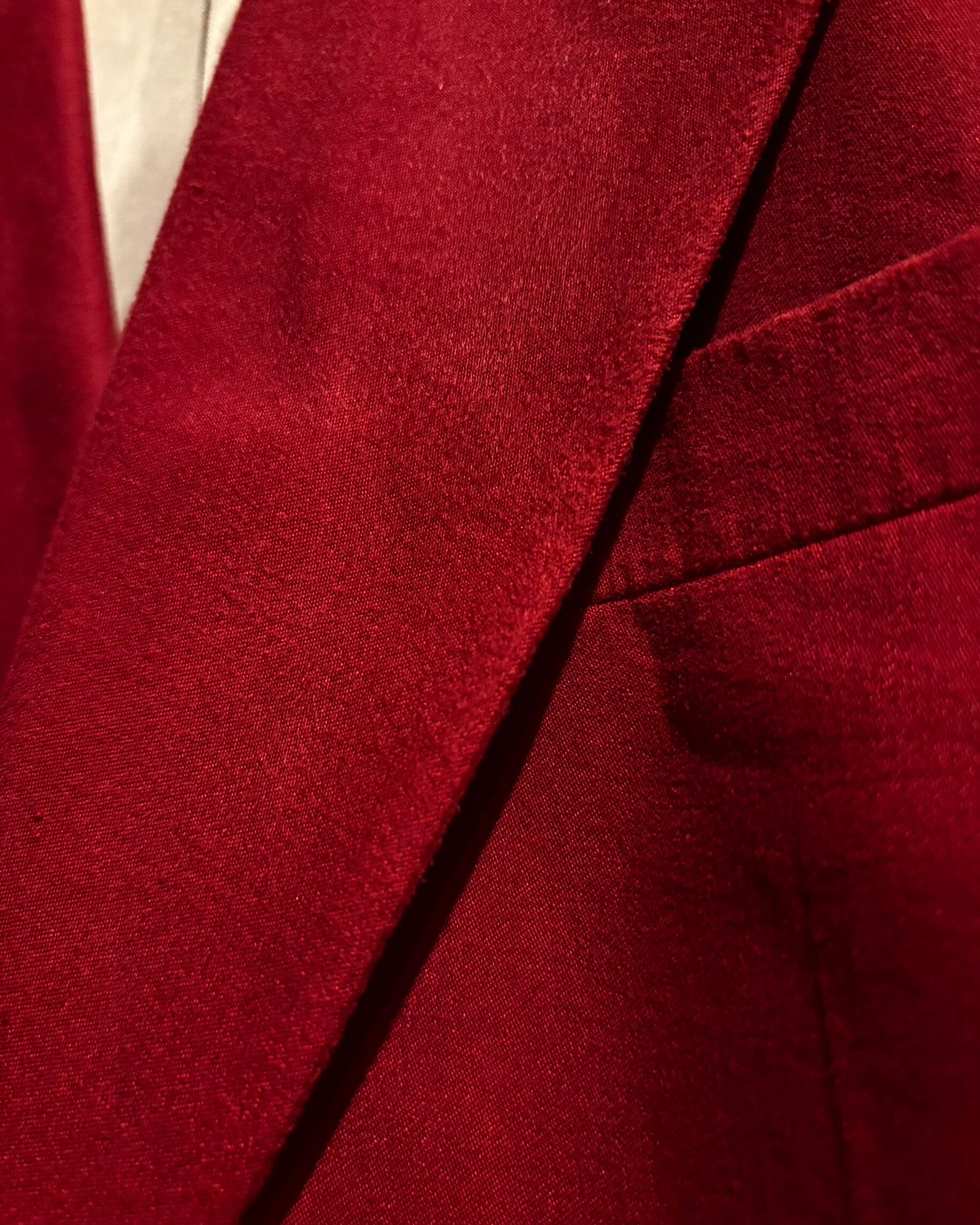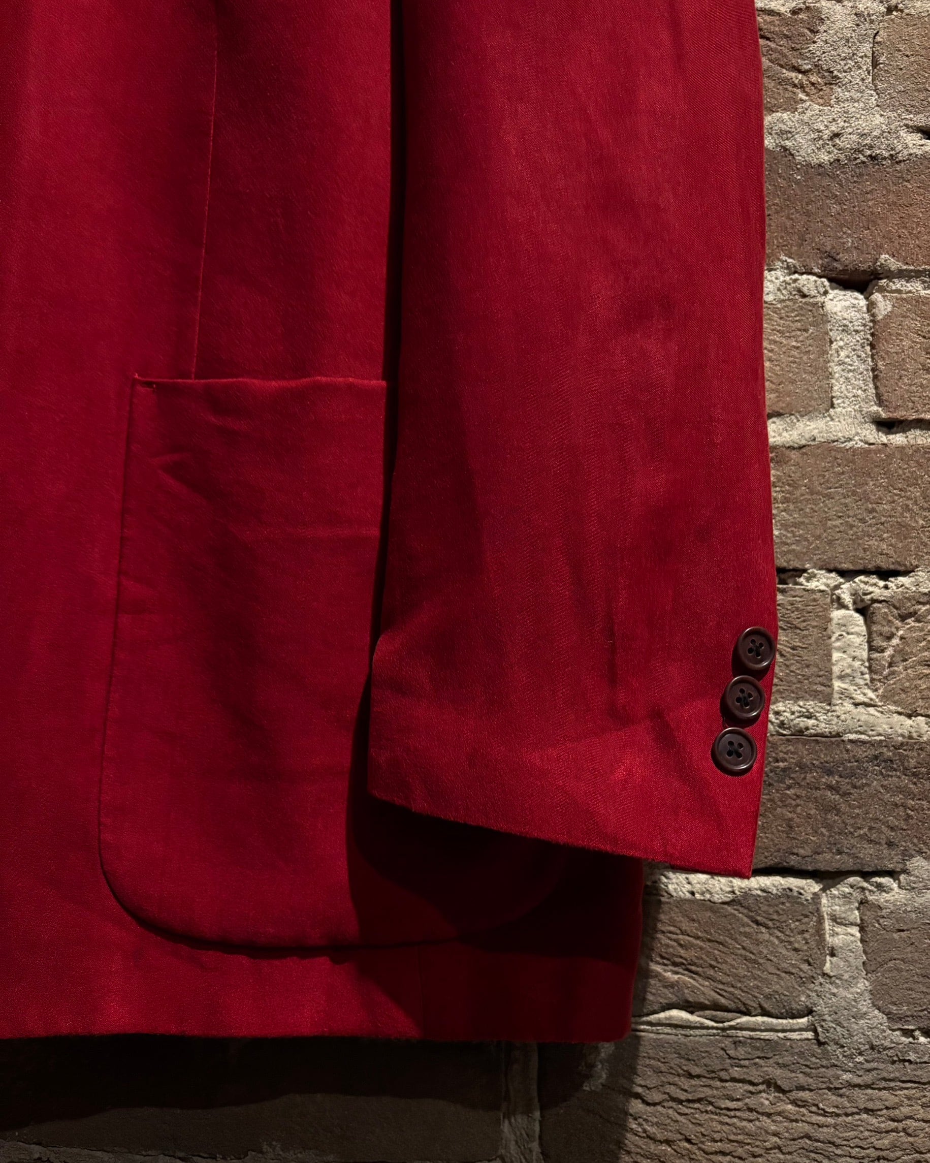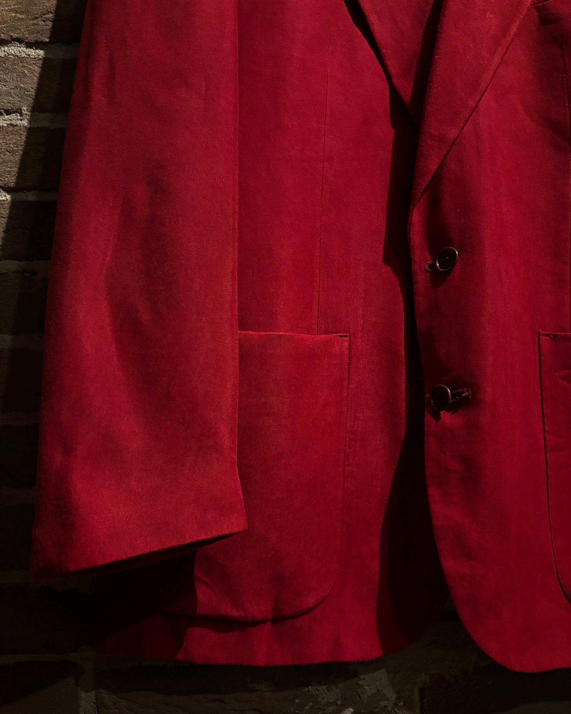 フロントはシングルブレスト仕様。美しいショルダーラインと、身体に沿いすぎないバランスの取れたシルエットが、モードにもクラシックにも振れる懐の深さを演出。ヴィンテージながら現代的なスタイリングにも自然に馴染みます。
