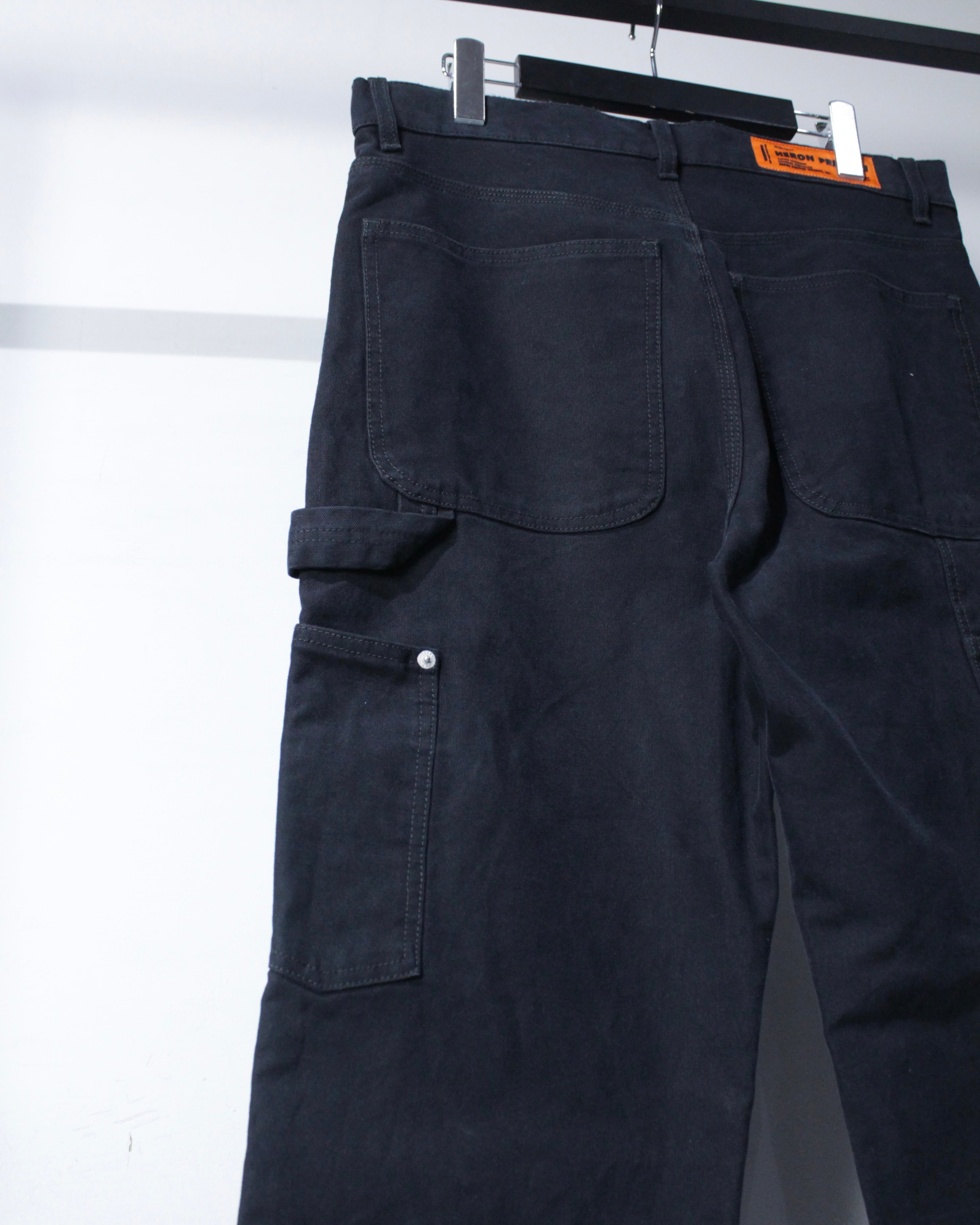 ヘビーオンスのダック生地を用いたタフなボディに、フロントにはダブルニー仕様を採用。摩耗しやすい膝周りを補強する本格的なワークディテールでありながら、HERON PRESTONらしい解釈が加わることで、無骨さの中にも洗練された表情を感じさせます。