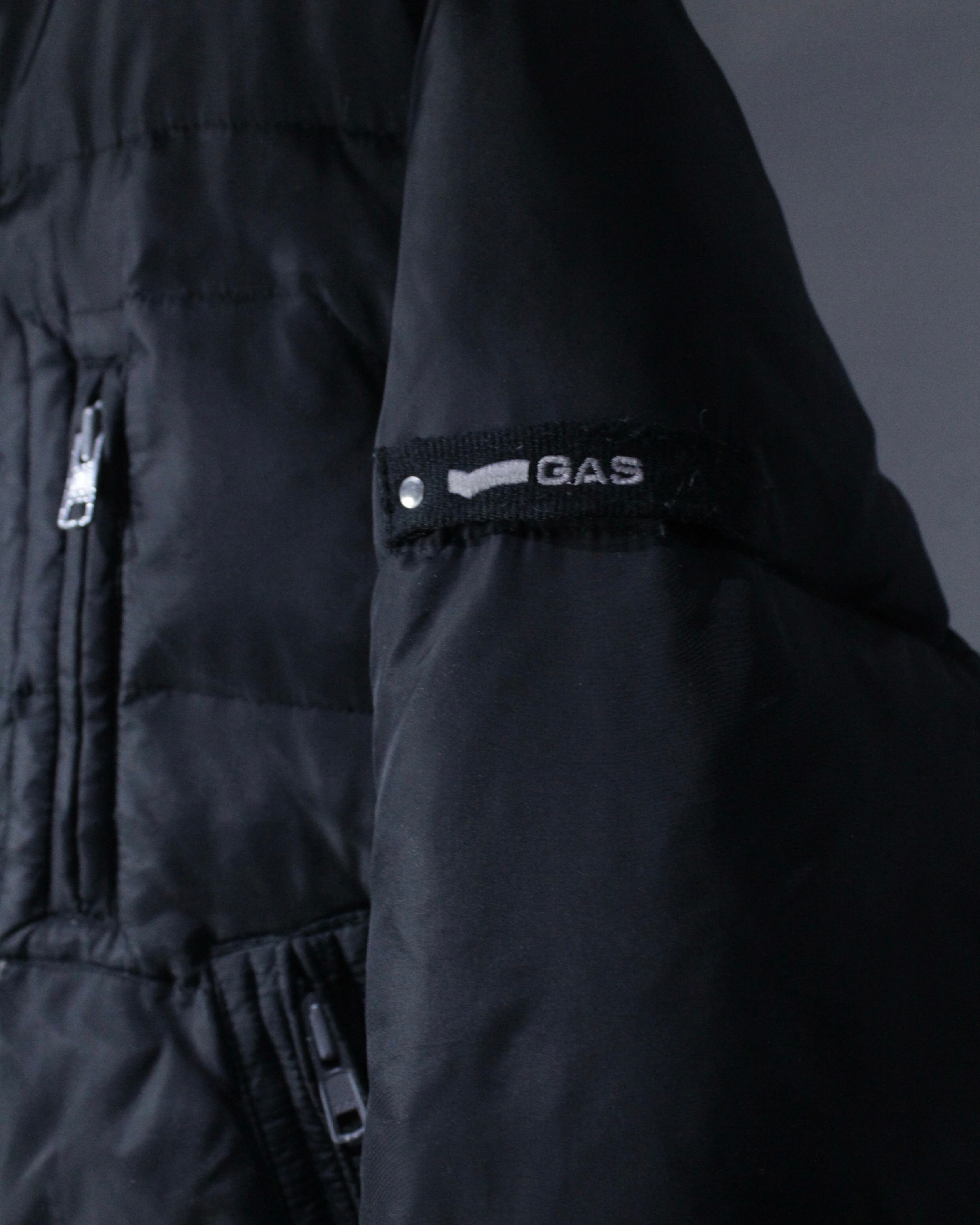 胸元とサイドにはジップポケットを配置し、フライトジャケットを彷彿とさせるユーティリティポケット、袖にはさりげなくGASのロゴタブと、無骨さとブランドらしさがマッチしています。