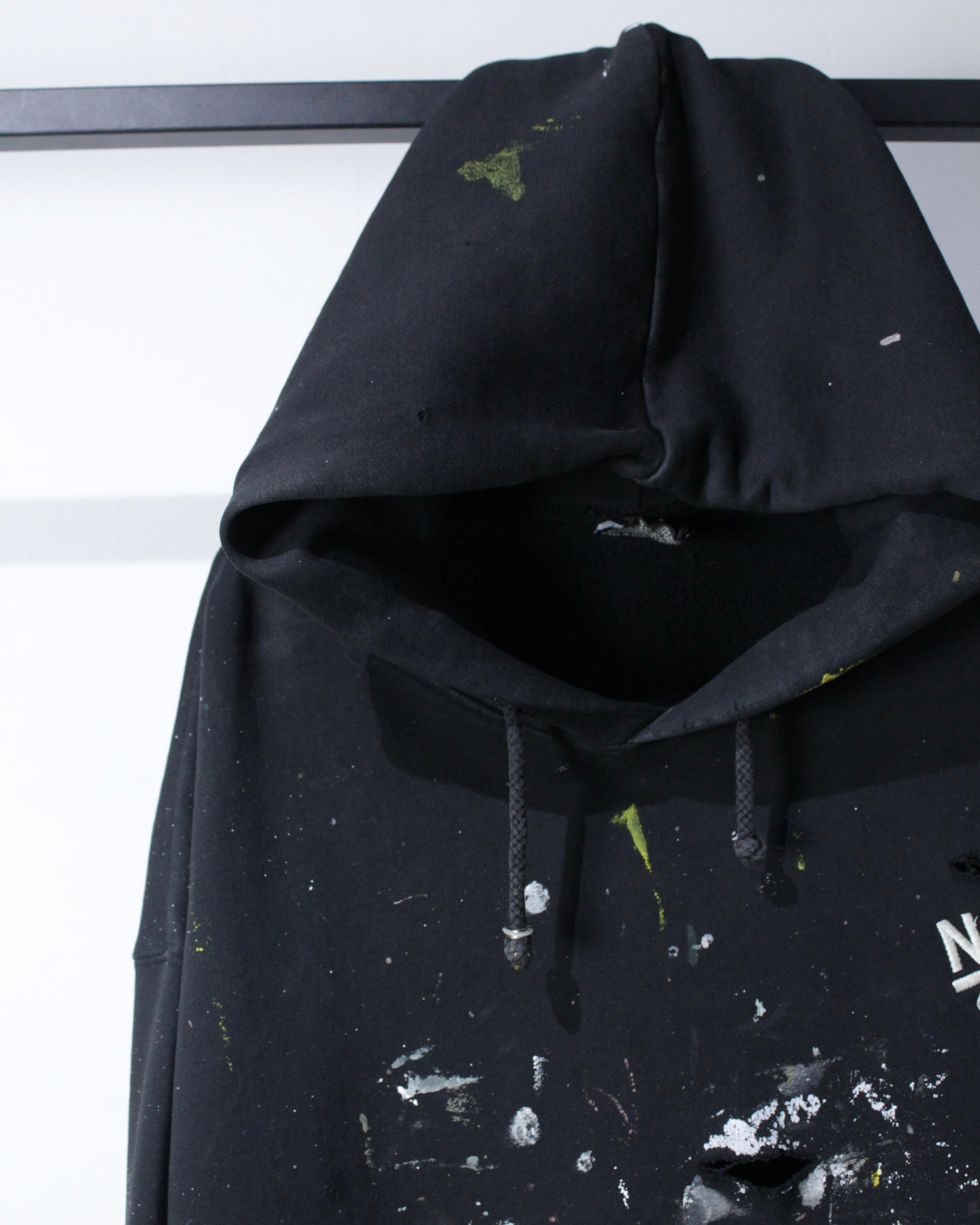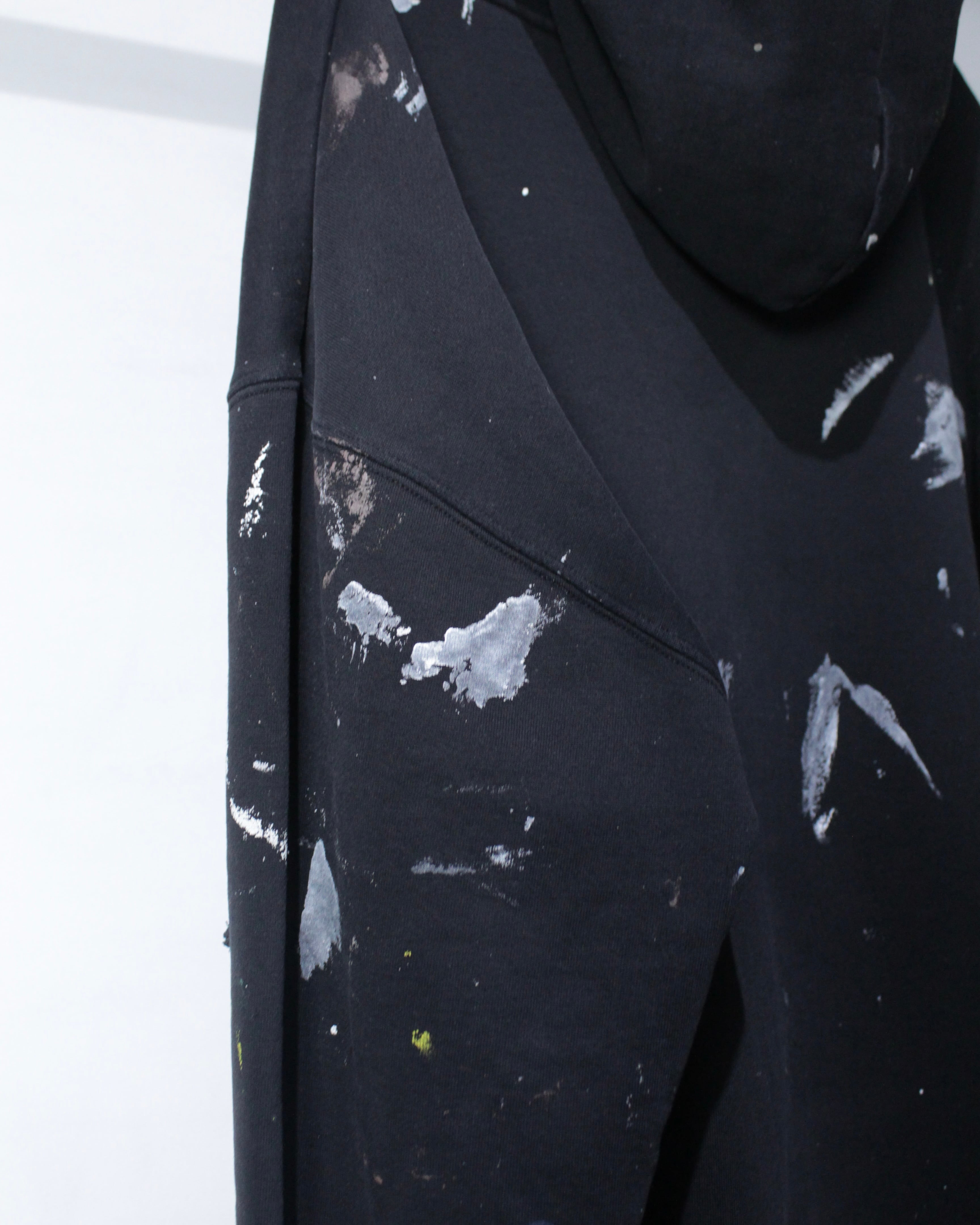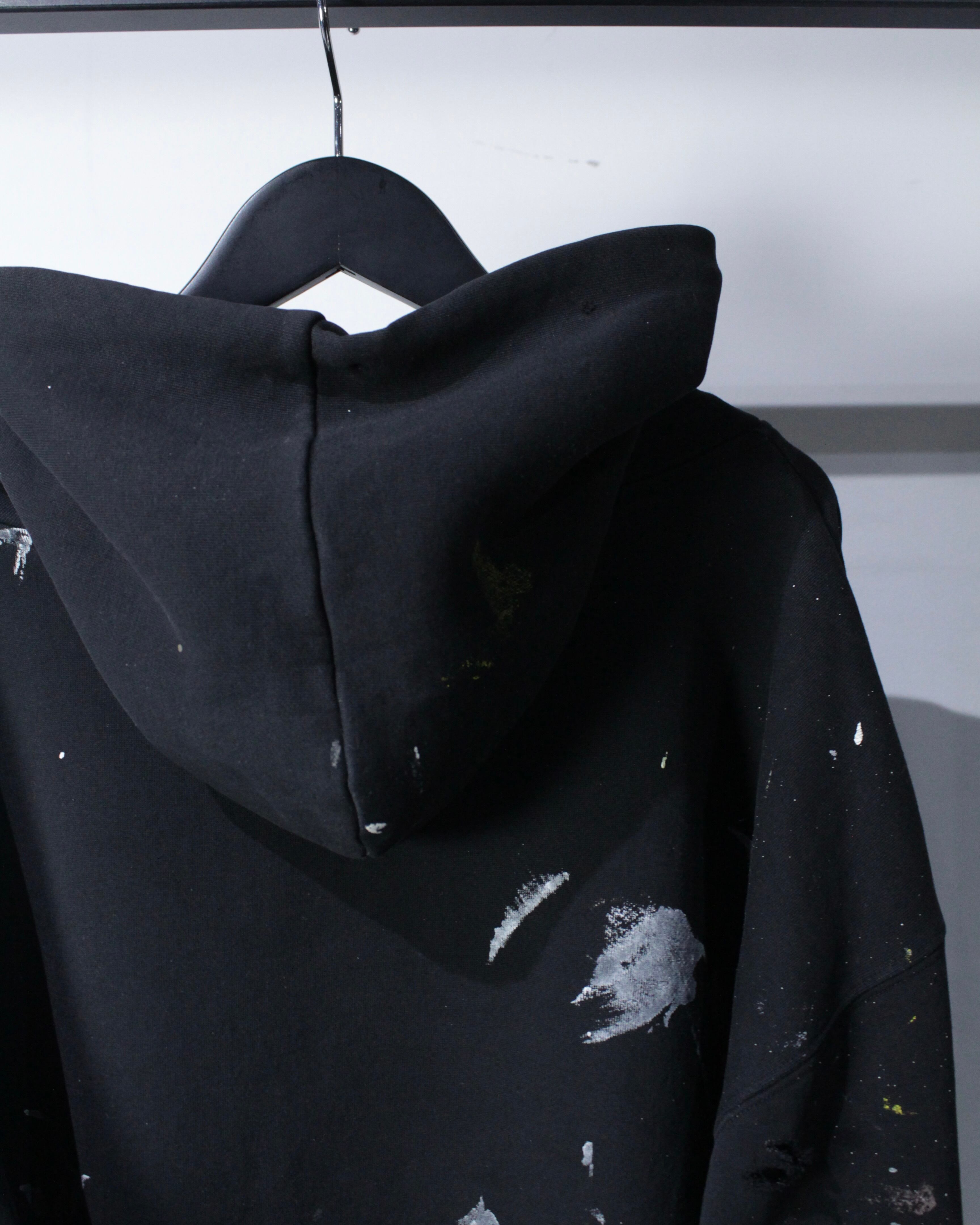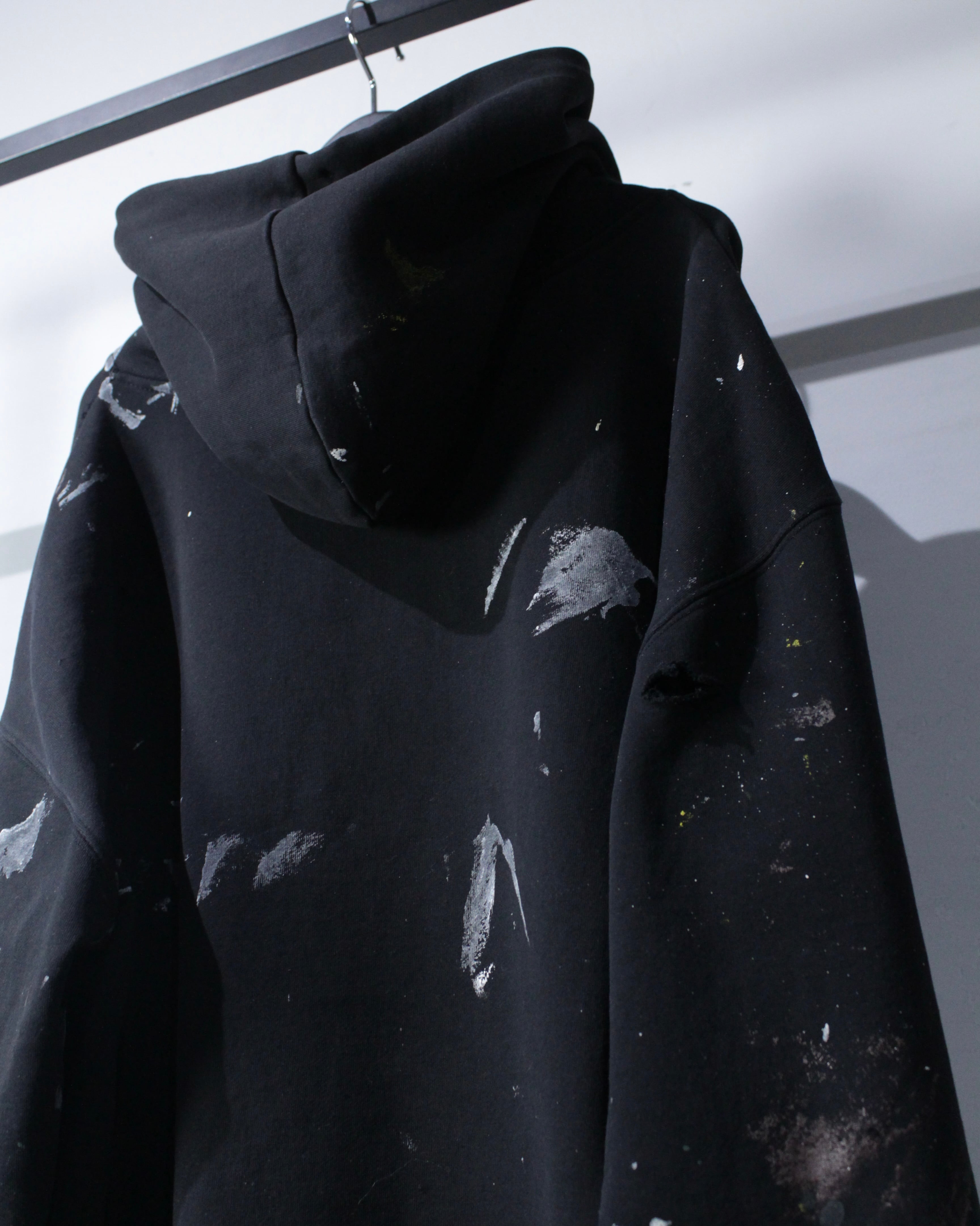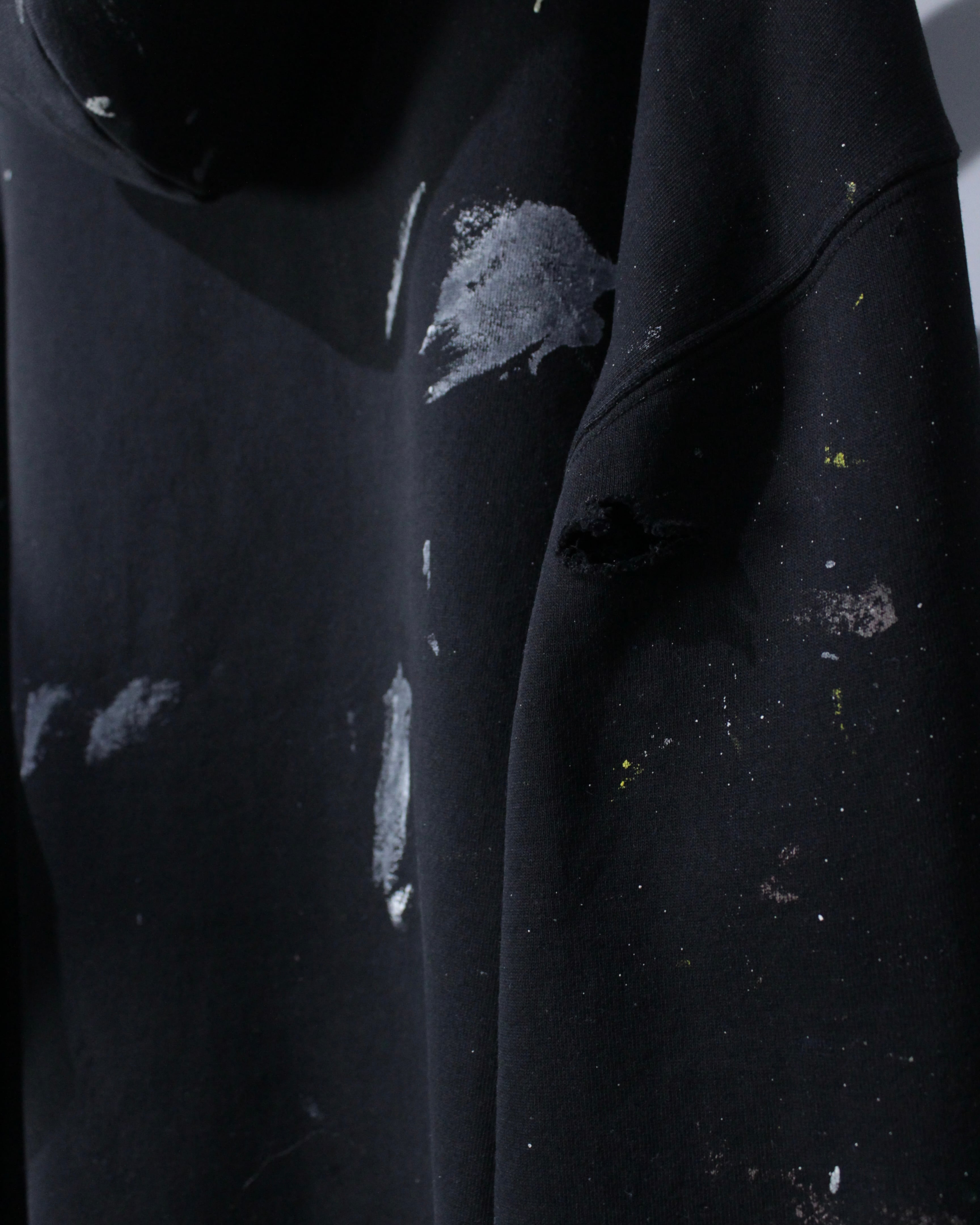 ブラックボディをベースに、全体へランダムに施されたペイント跡と大胆なボロ加工。カスタムならではの仕上がりで、既製品では決して出せないリアルな退廃感と奥行きが際立ちます。
