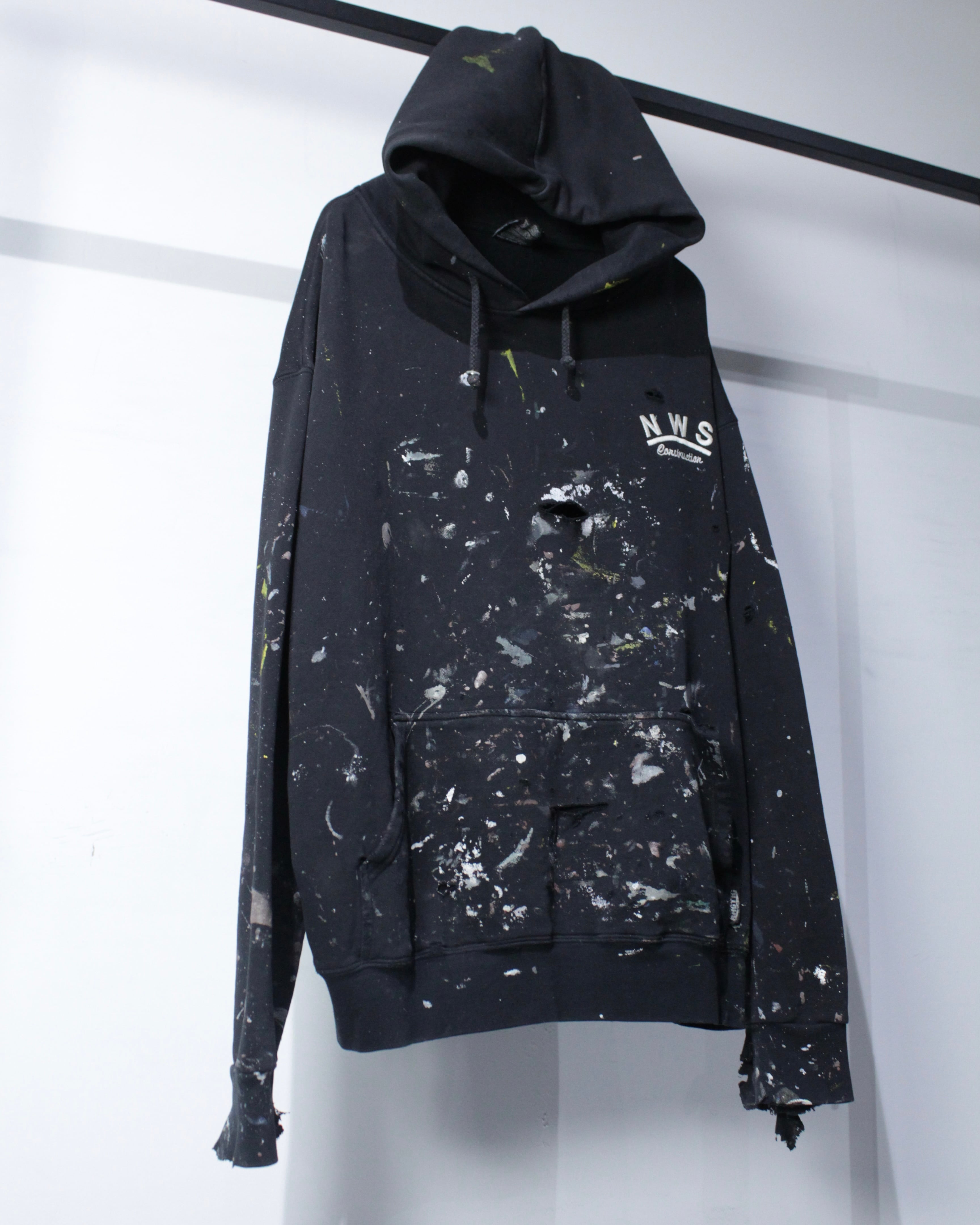 胸元には“NWS Construction”のロゴ刺繍を配置し、退廃的な表情の中にアクセントをプラス。