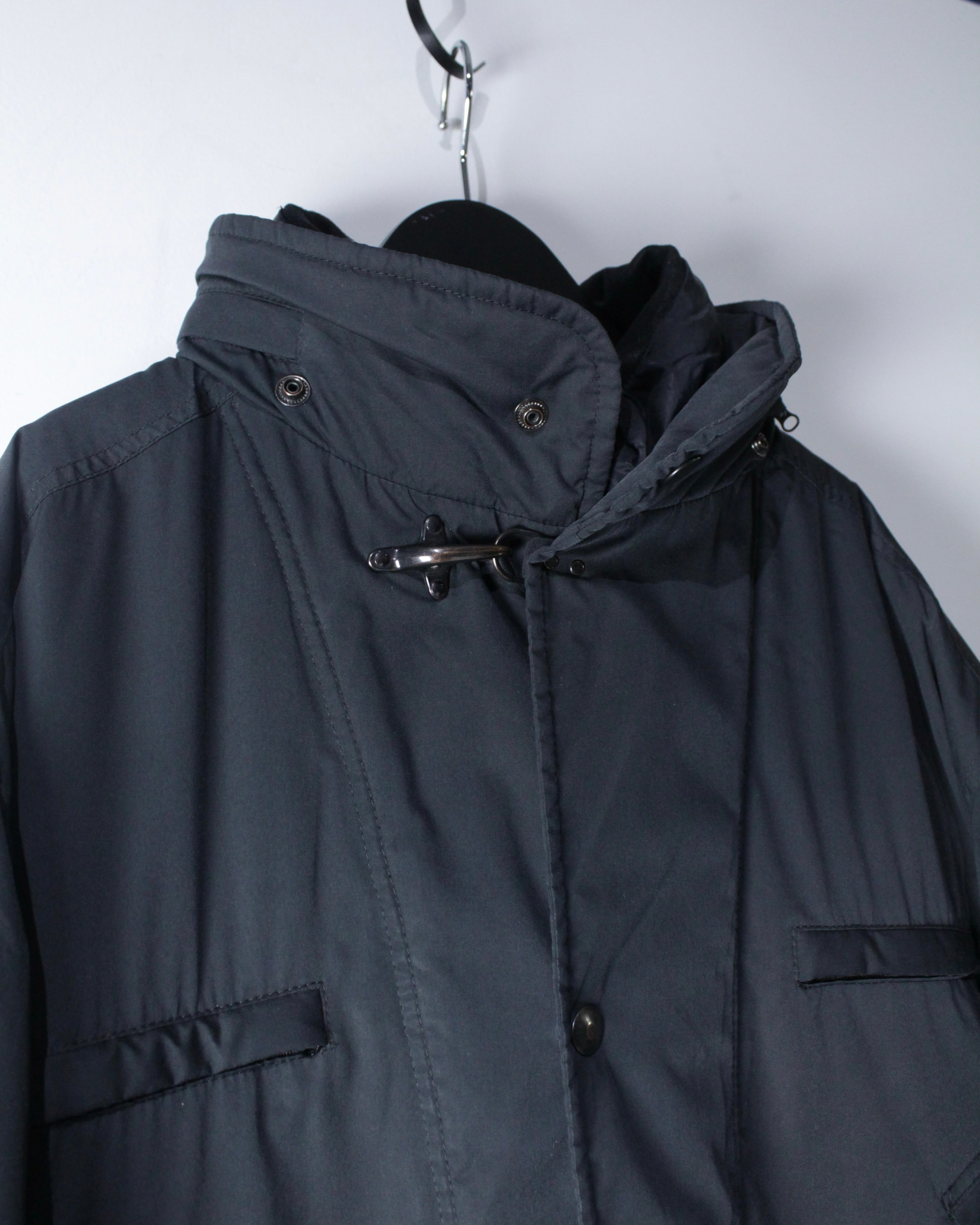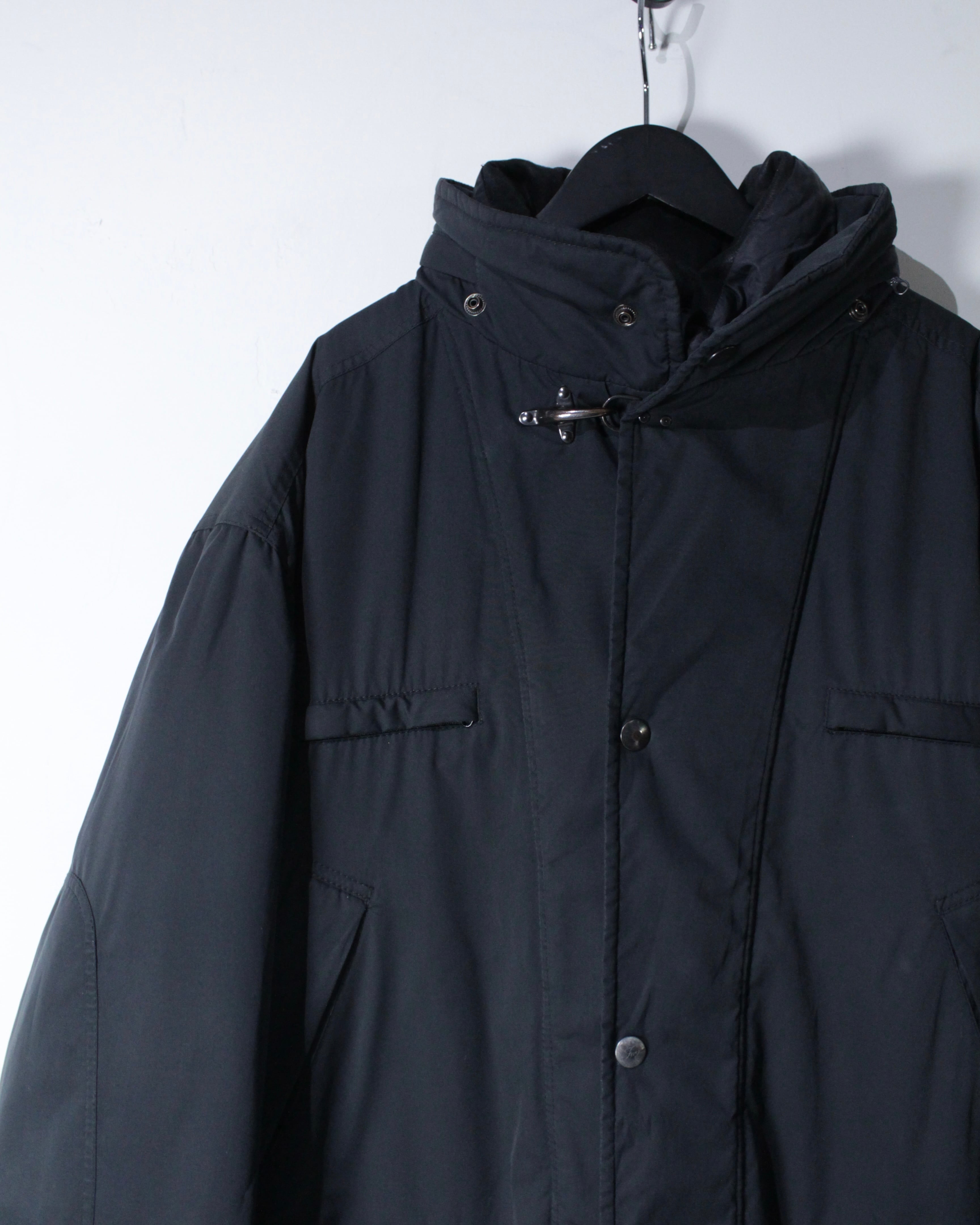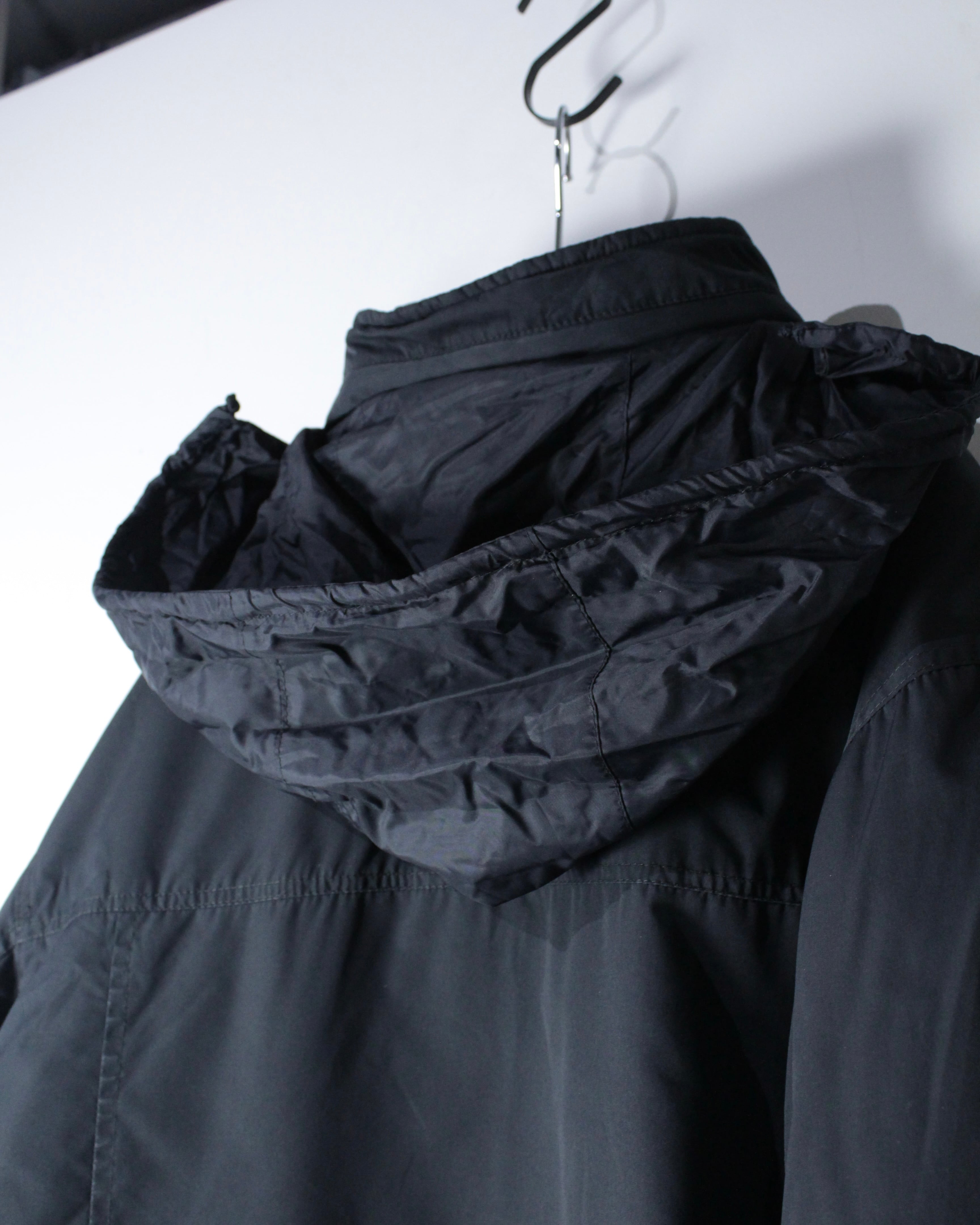 ボディはマットで落ち着いたブラックカラー。中綿入りでしっかりと防寒性を確保しつつ、ボリュームが出ないので洗練された印象をキープ。ビルドインフードで着用時の印象を変えられるのも◎