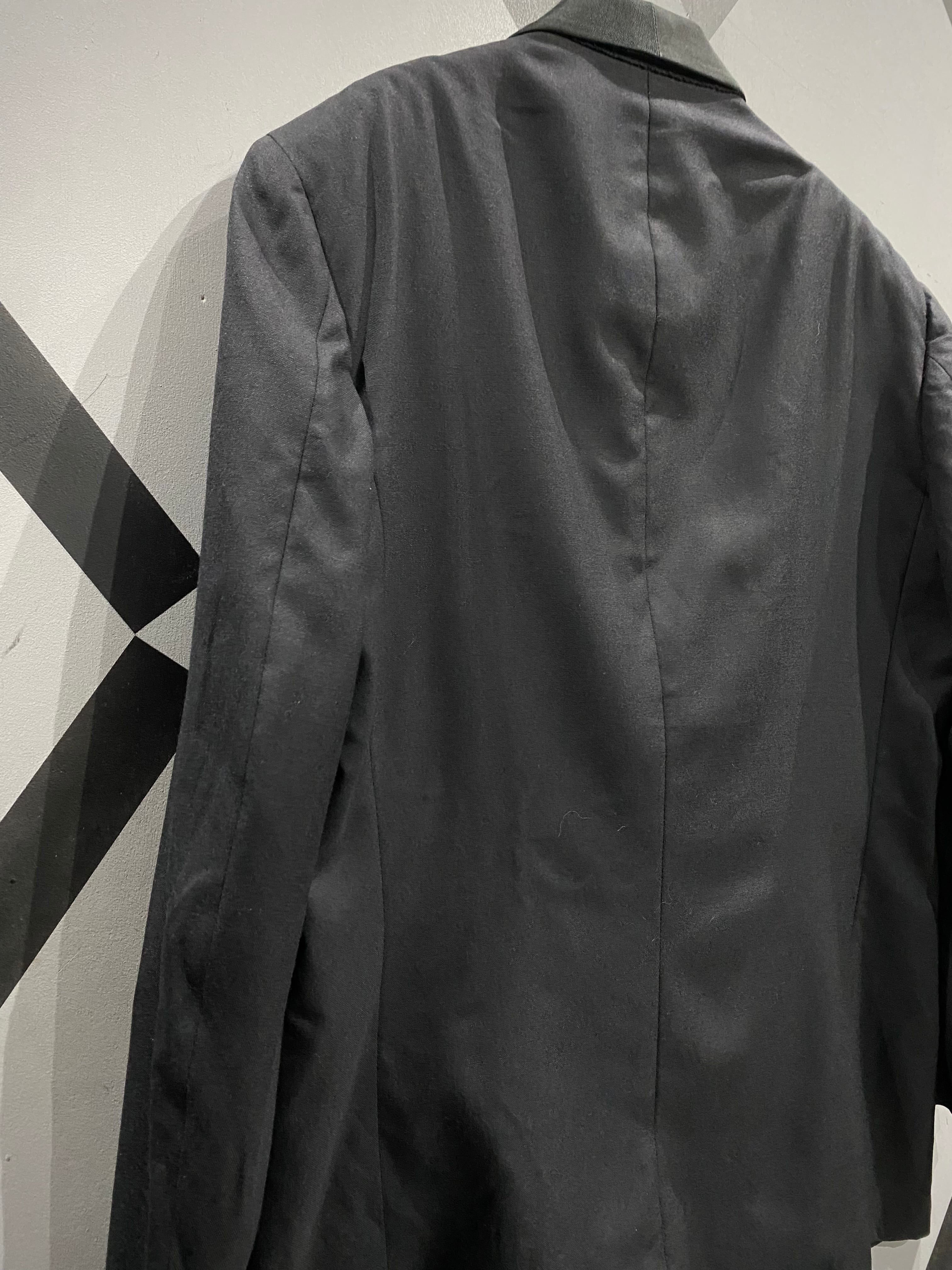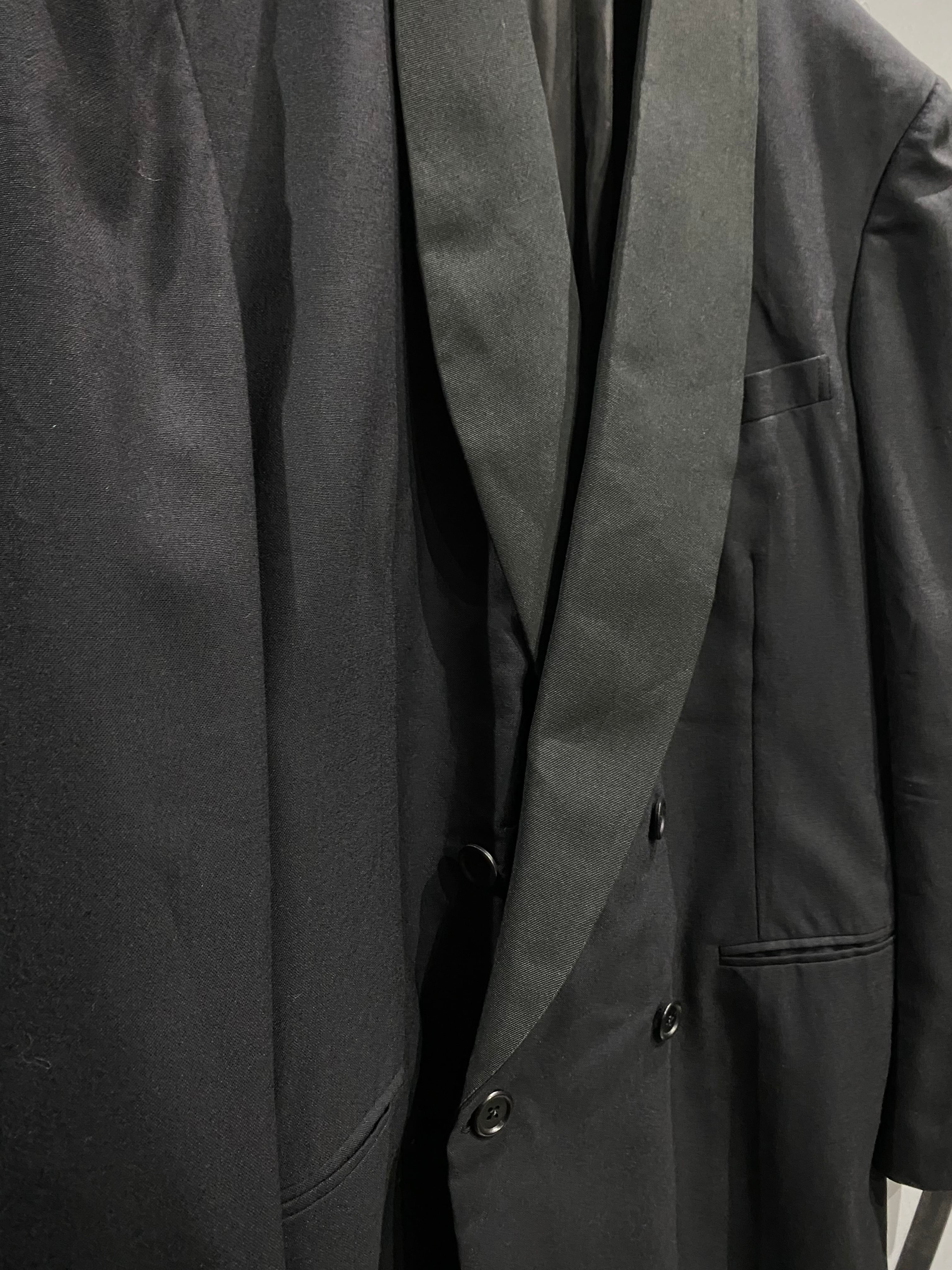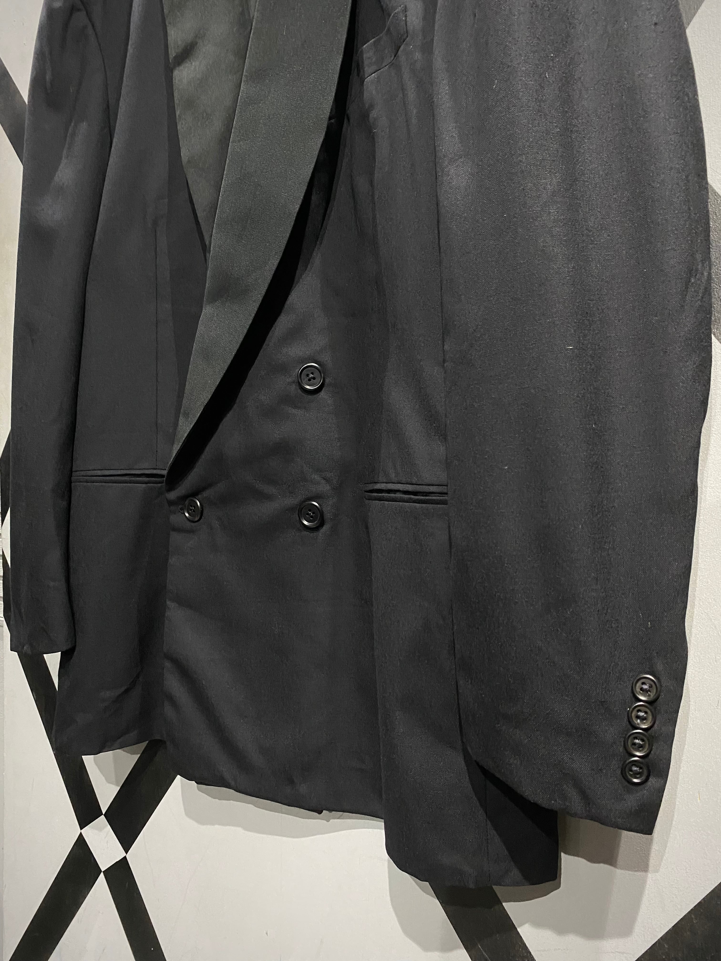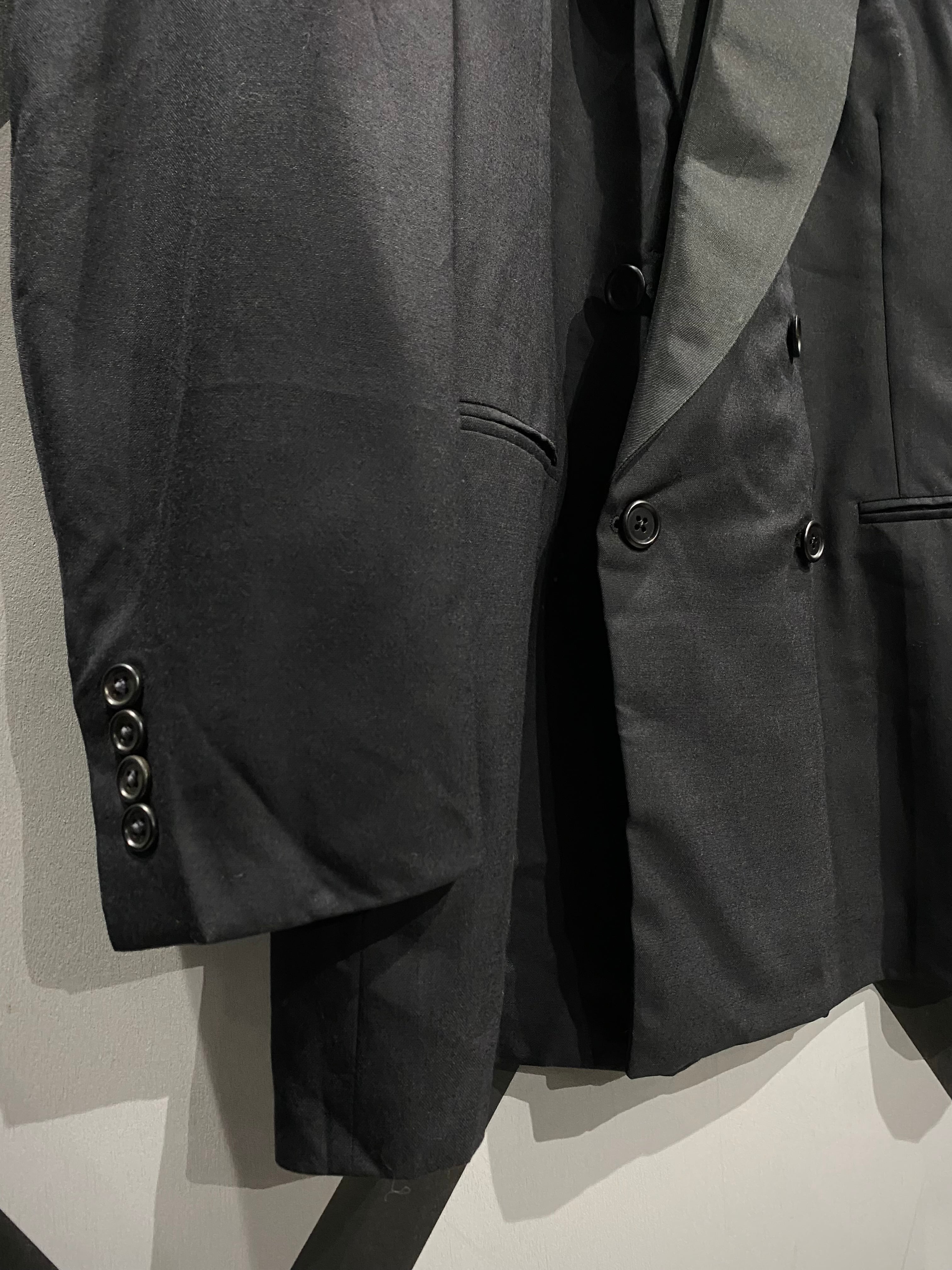 ダブルブレスト仕様のフロントに、美しいパターンワーク。着用時のシルエットも非常に完成度が高い一着です。