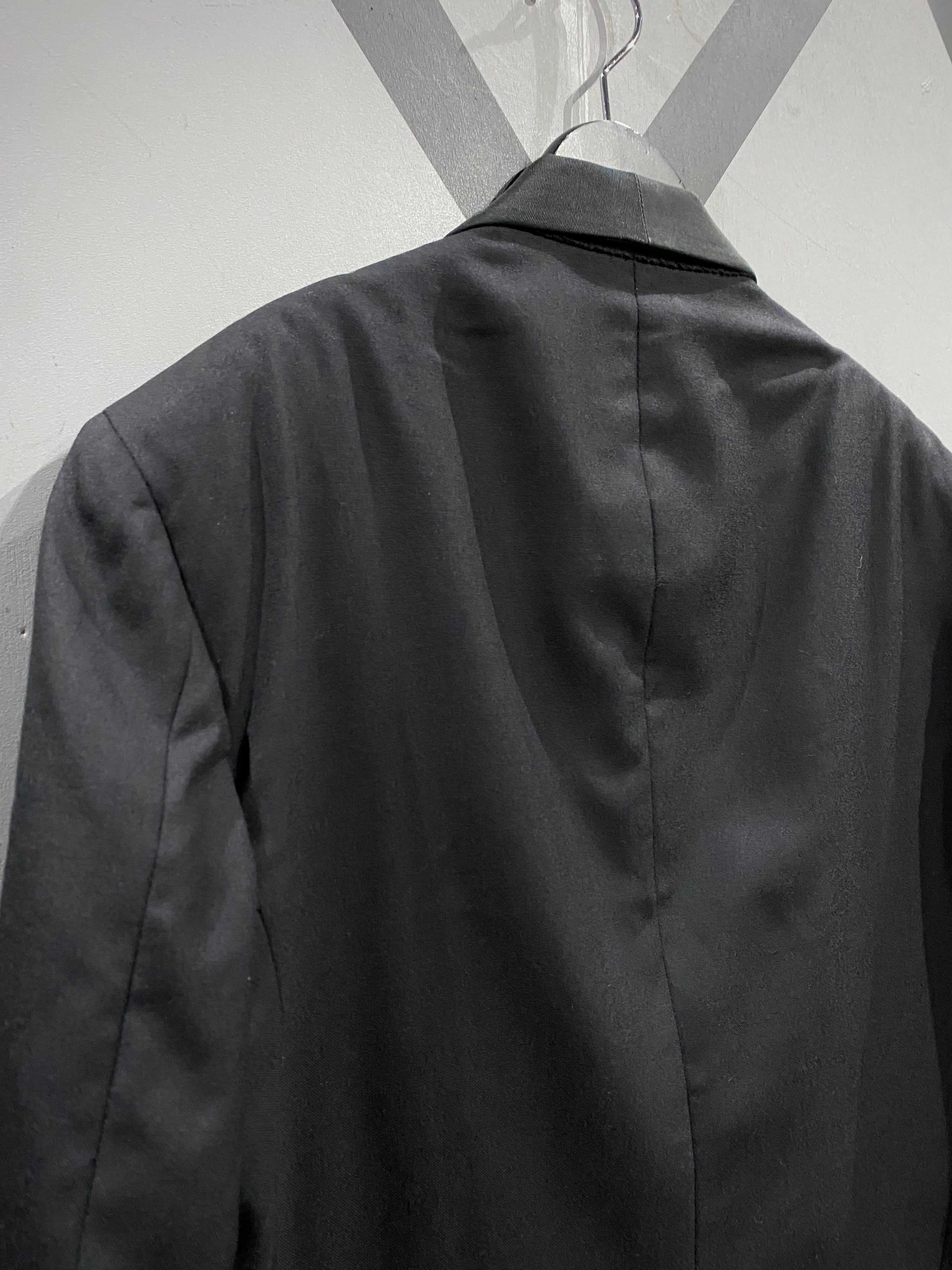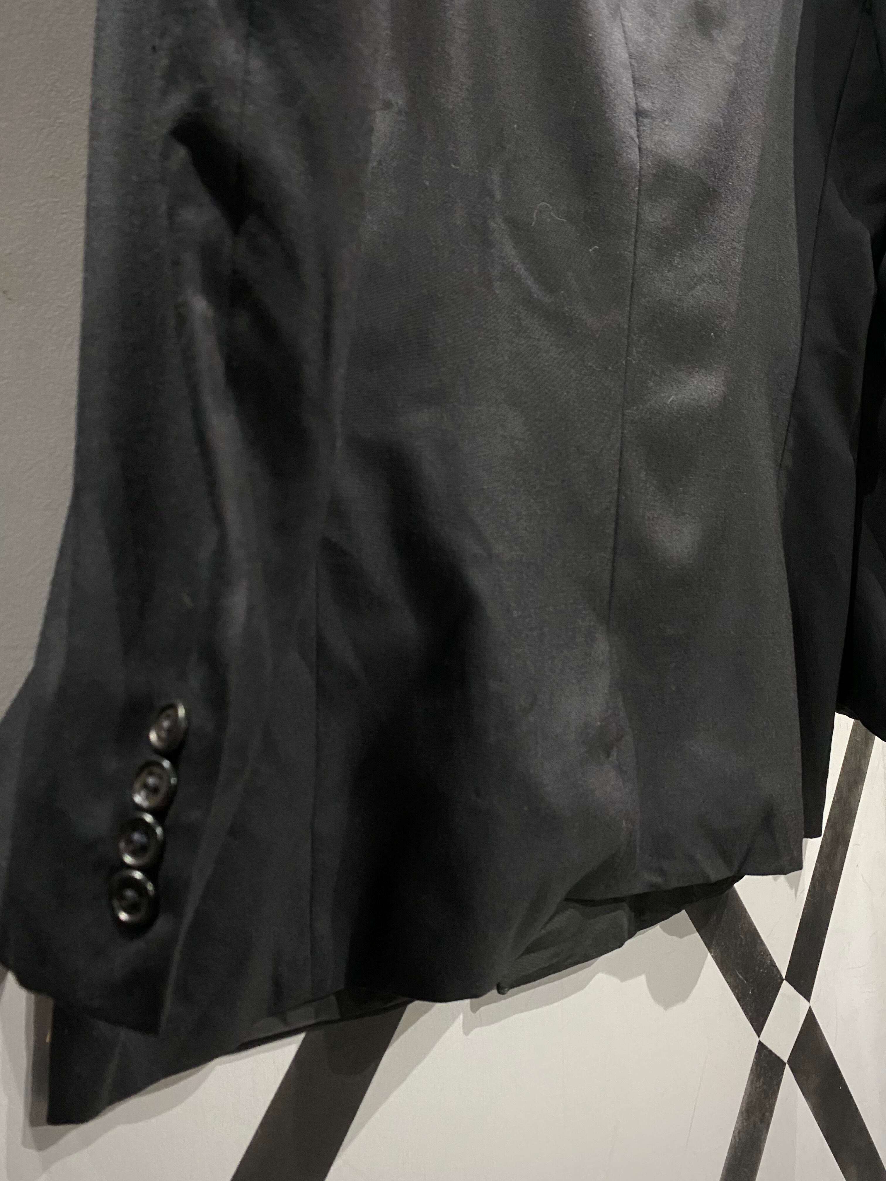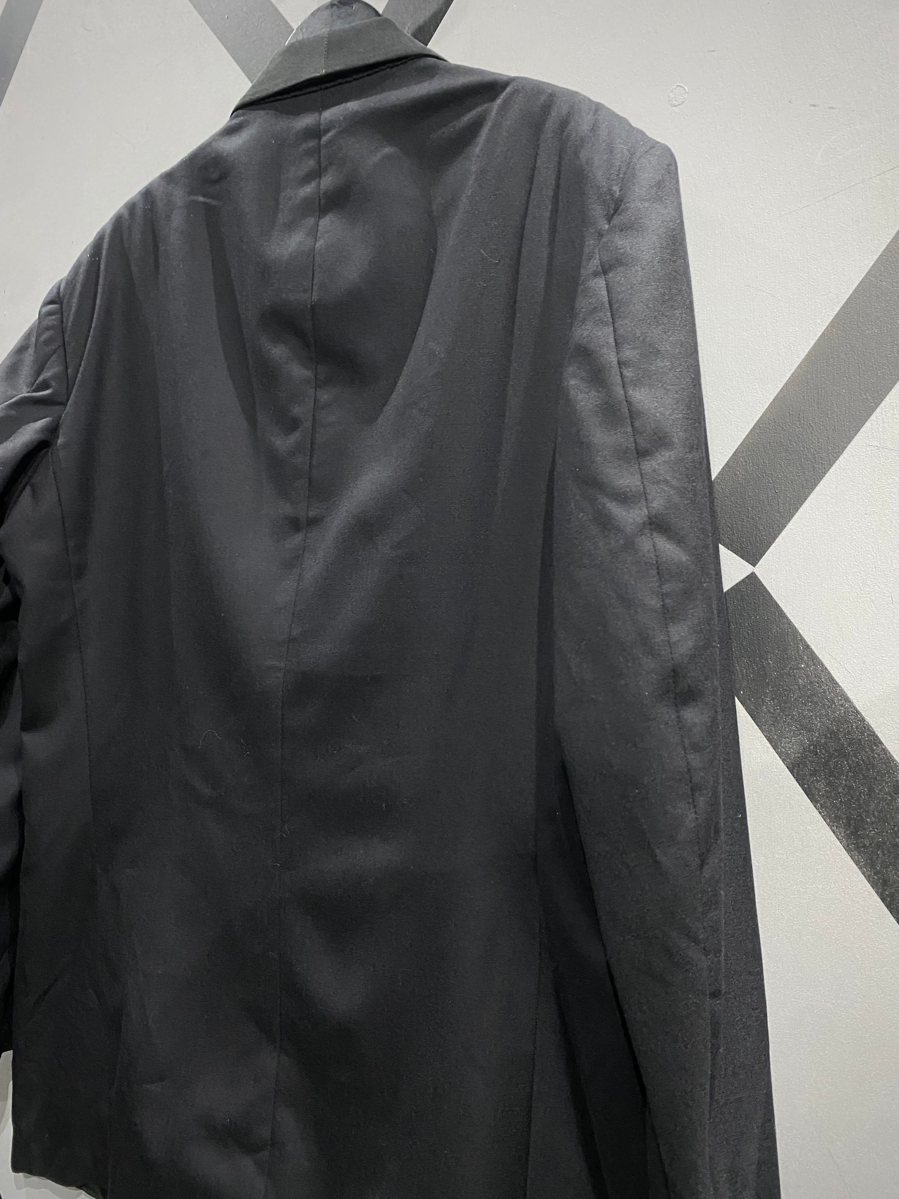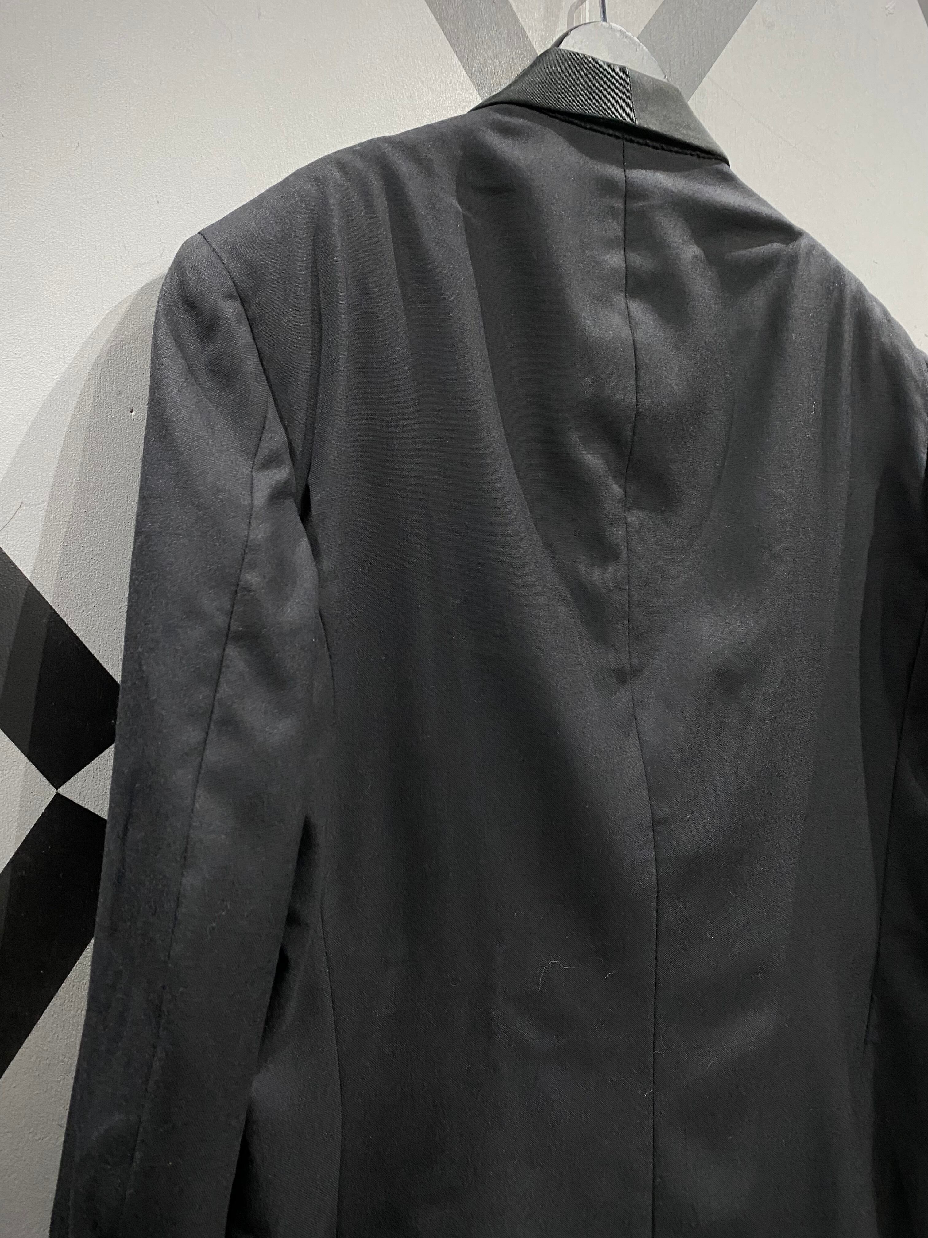 ダブルブレスト仕様のフロントに、美しいパターンワーク。着用時のシルエットも非常に完成度が高い一着です。