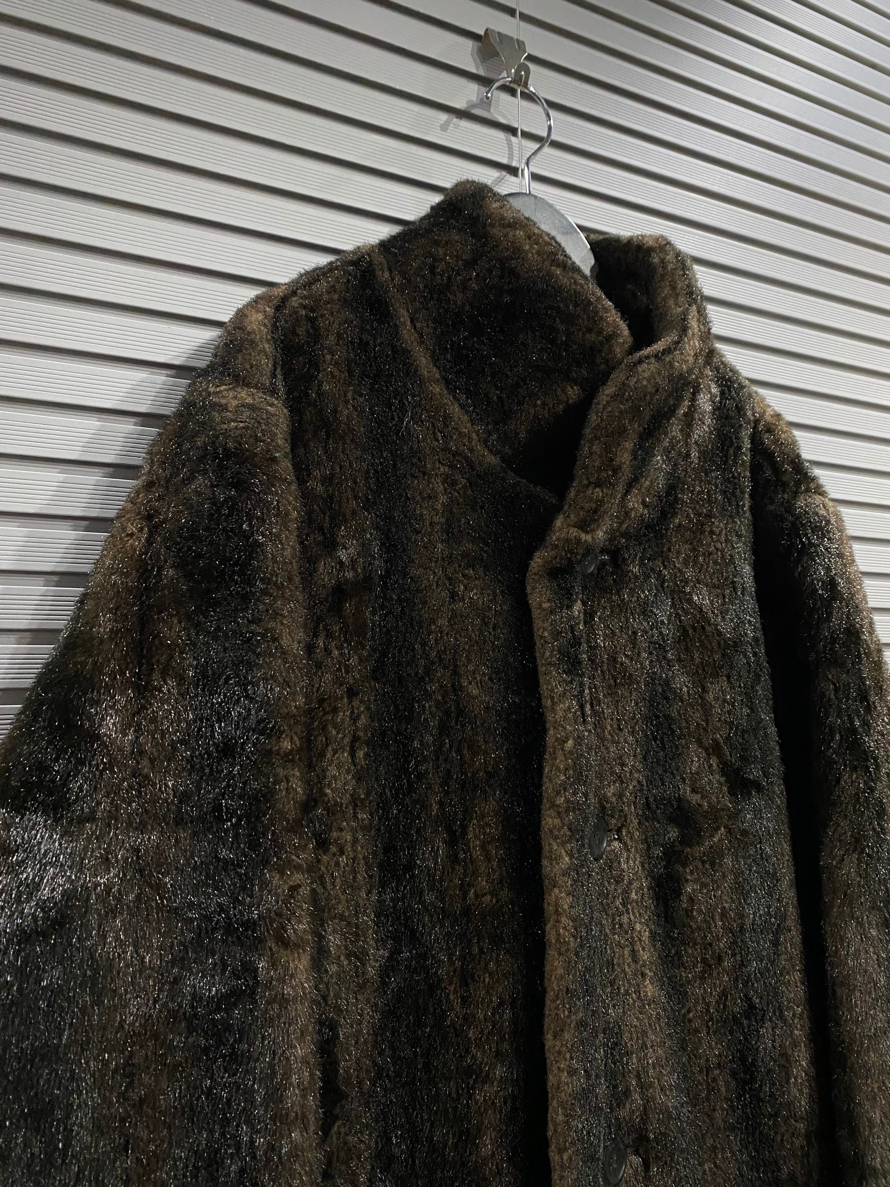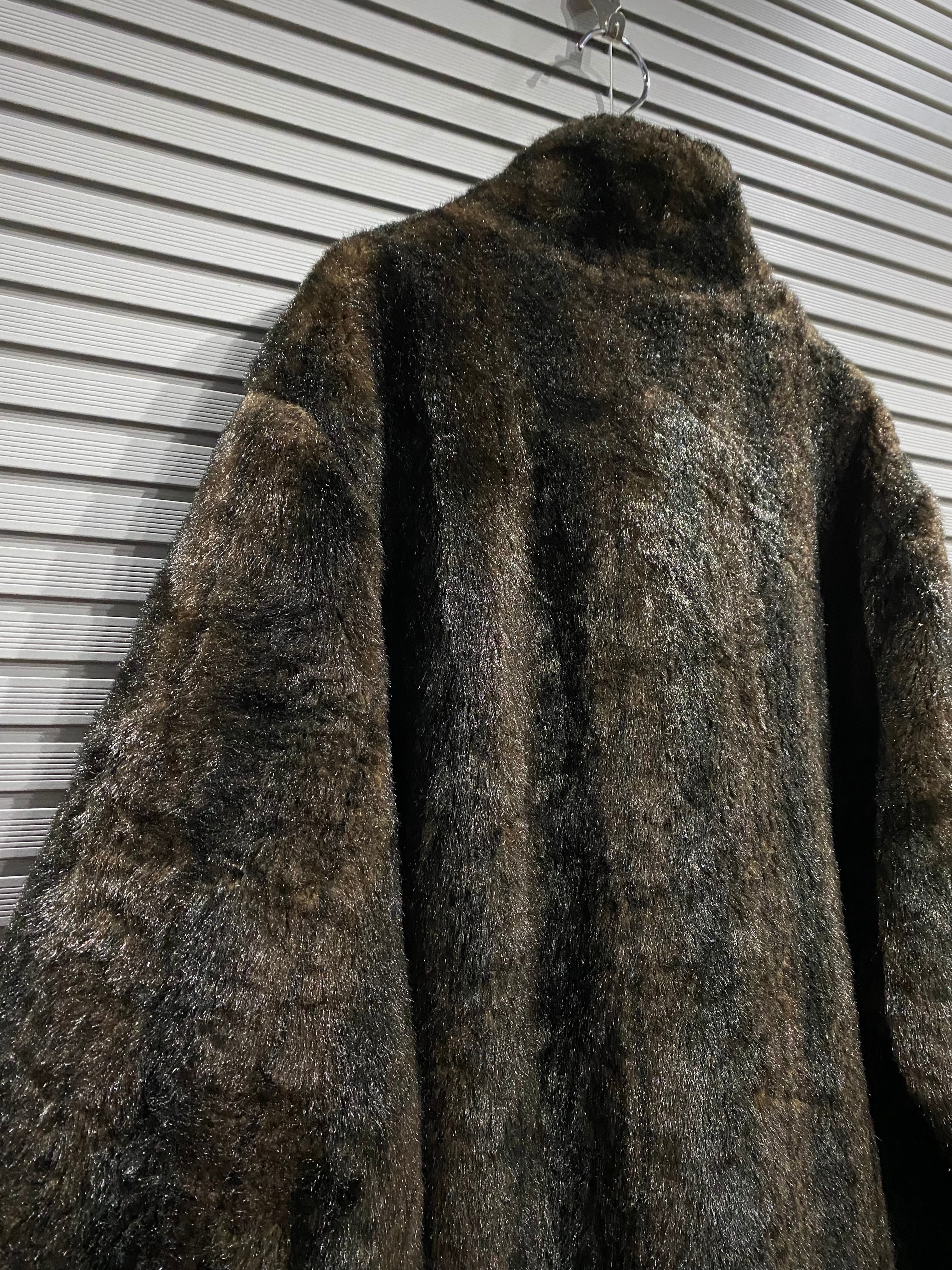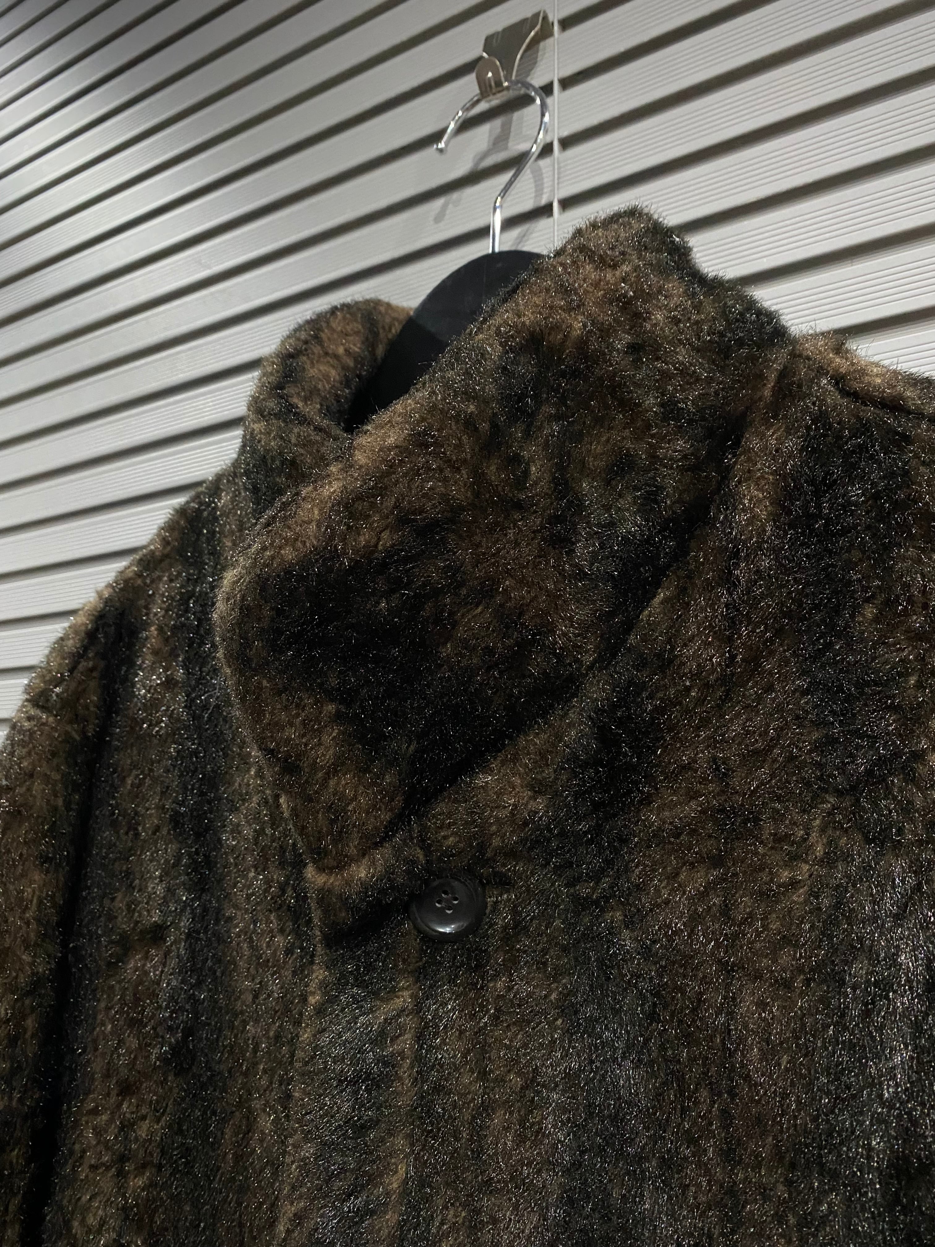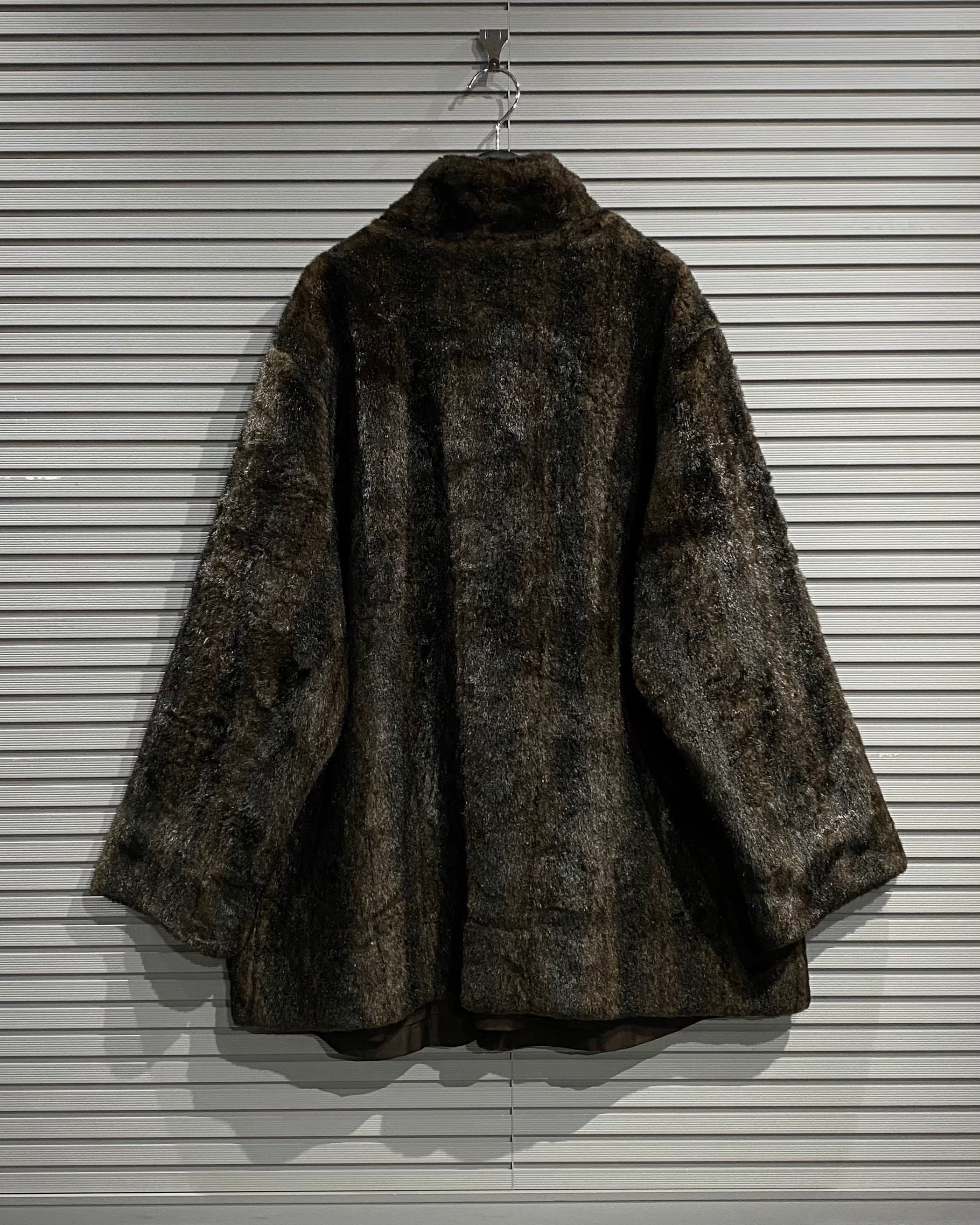 片面には毛足のあるフェイクファーを全面に使用。奥行きのあるブラウンカラーが、スタイリングに深みとムードを与えてくれます。光の当たり方で表情が変わるのも魅力。