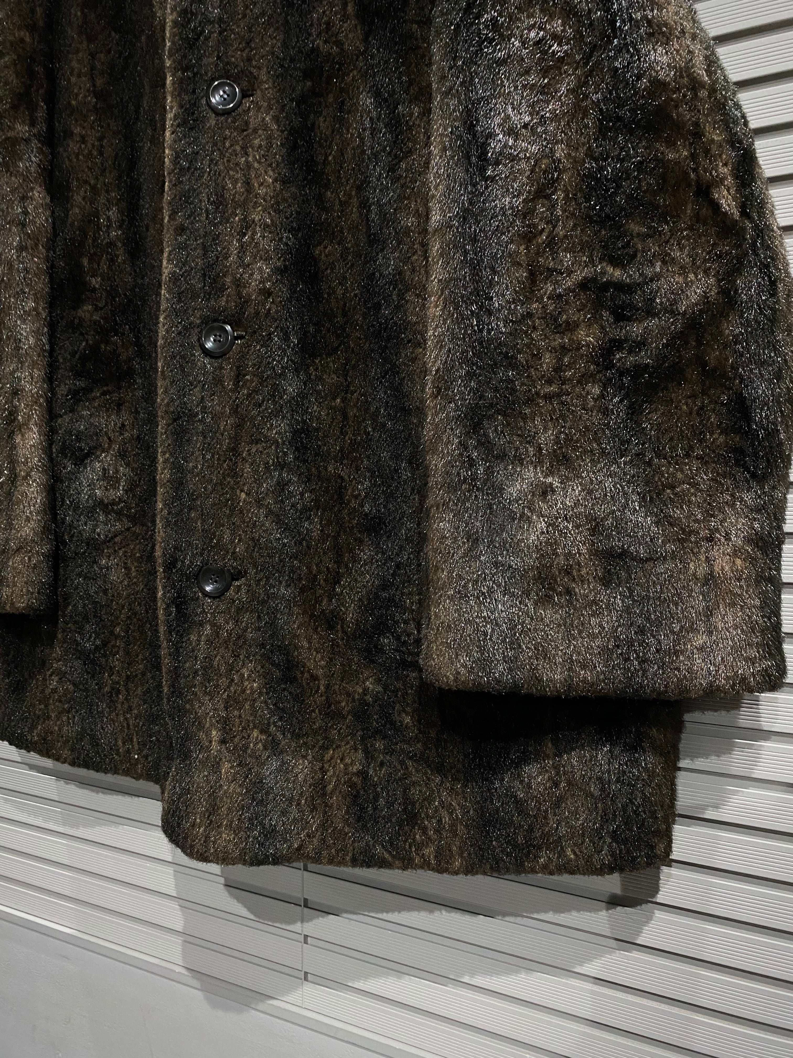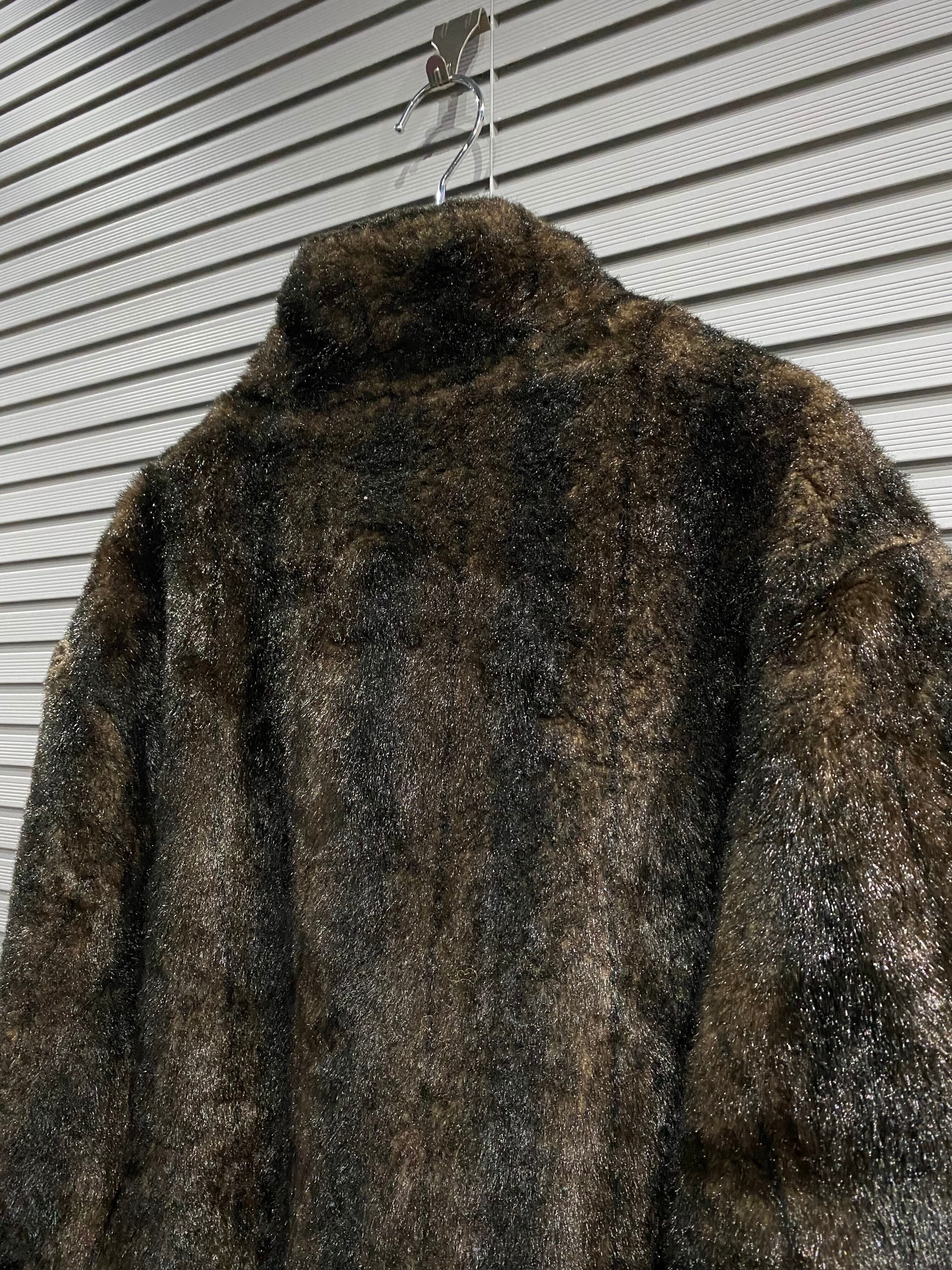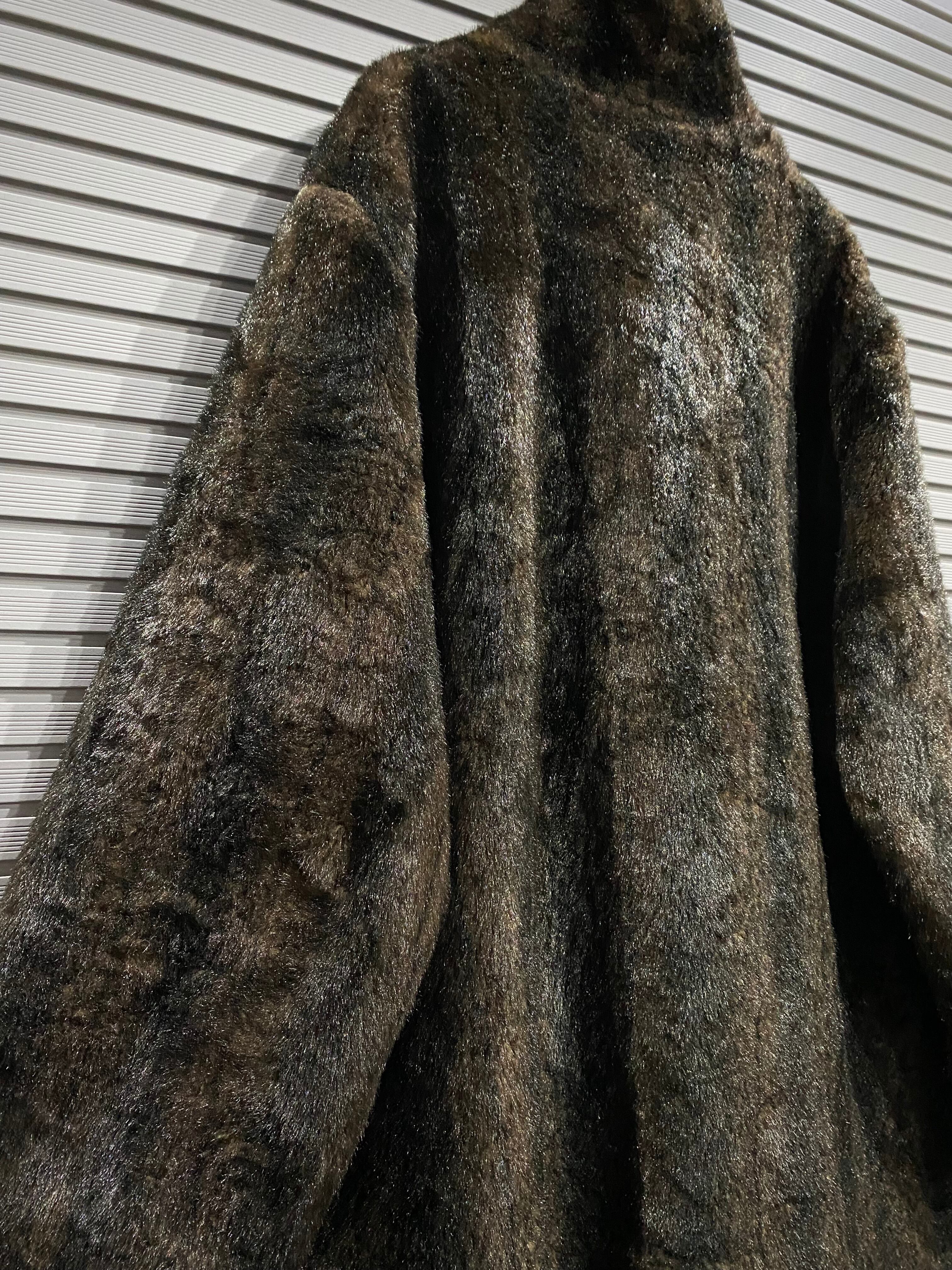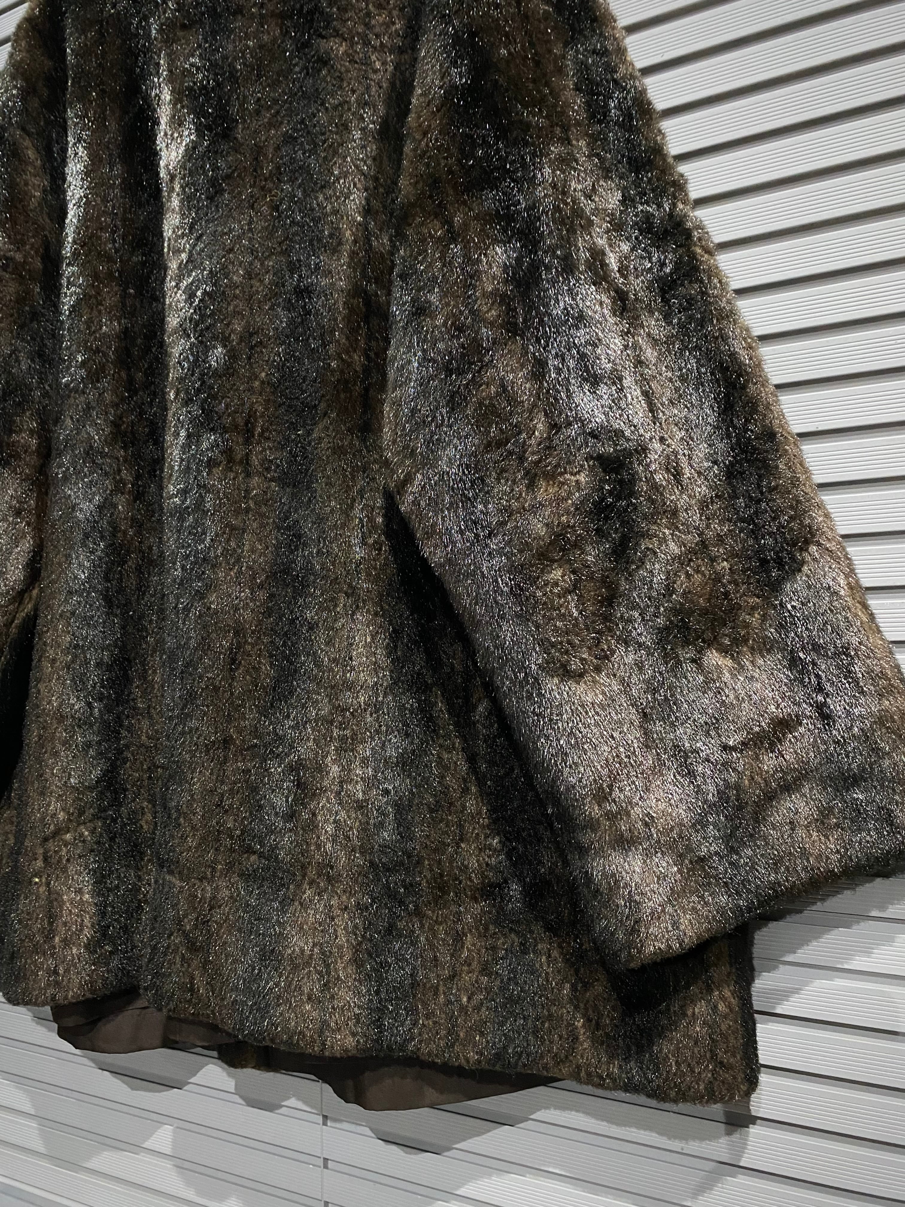 片面には毛足のあるフェイクファーを全面に使用。奥行きのあるブラウンカラーが、スタイリングに深みとムードを与えてくれます。光の当たり方で表情が変わるのも魅力。