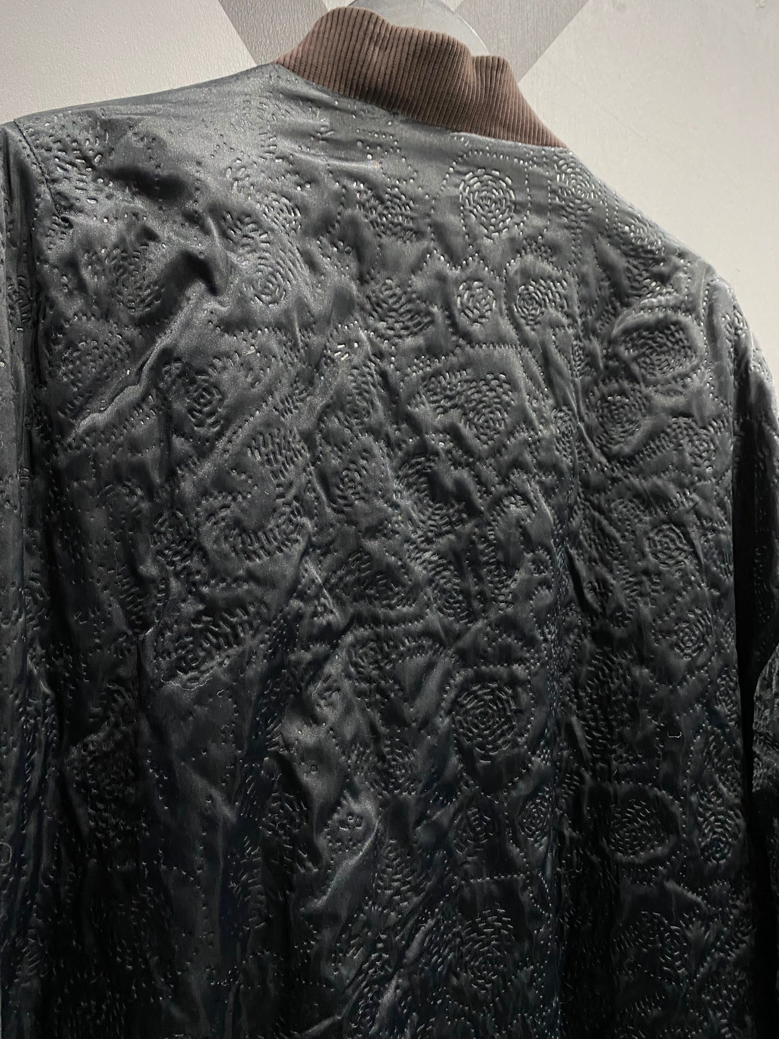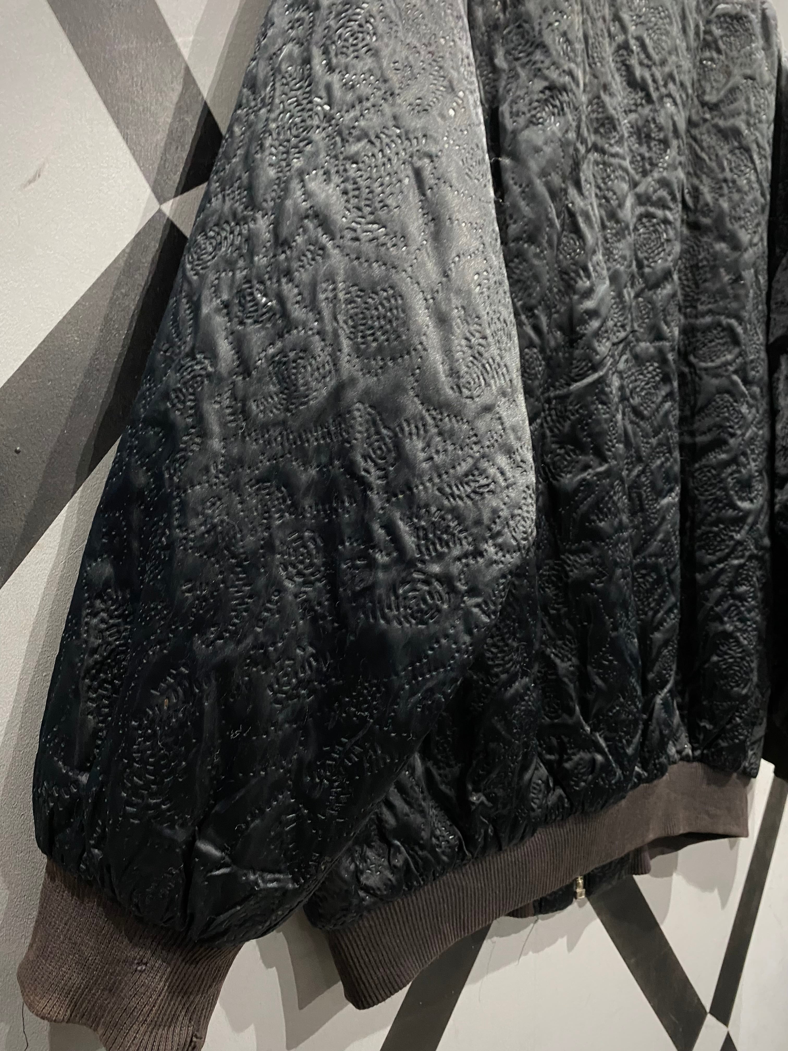 エンボス加工を施し、抽象的なデザインを落とし込んだボンバージャケット。