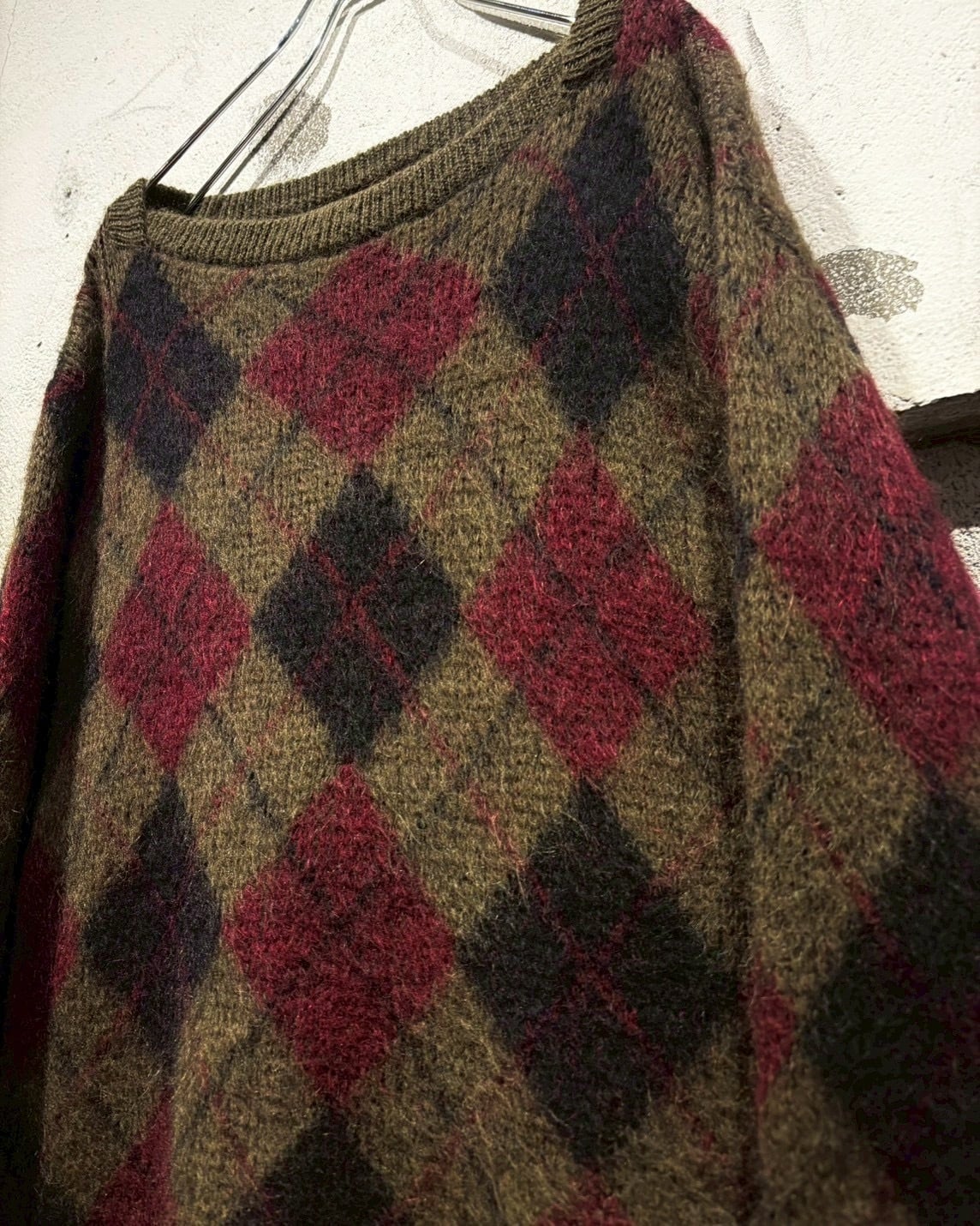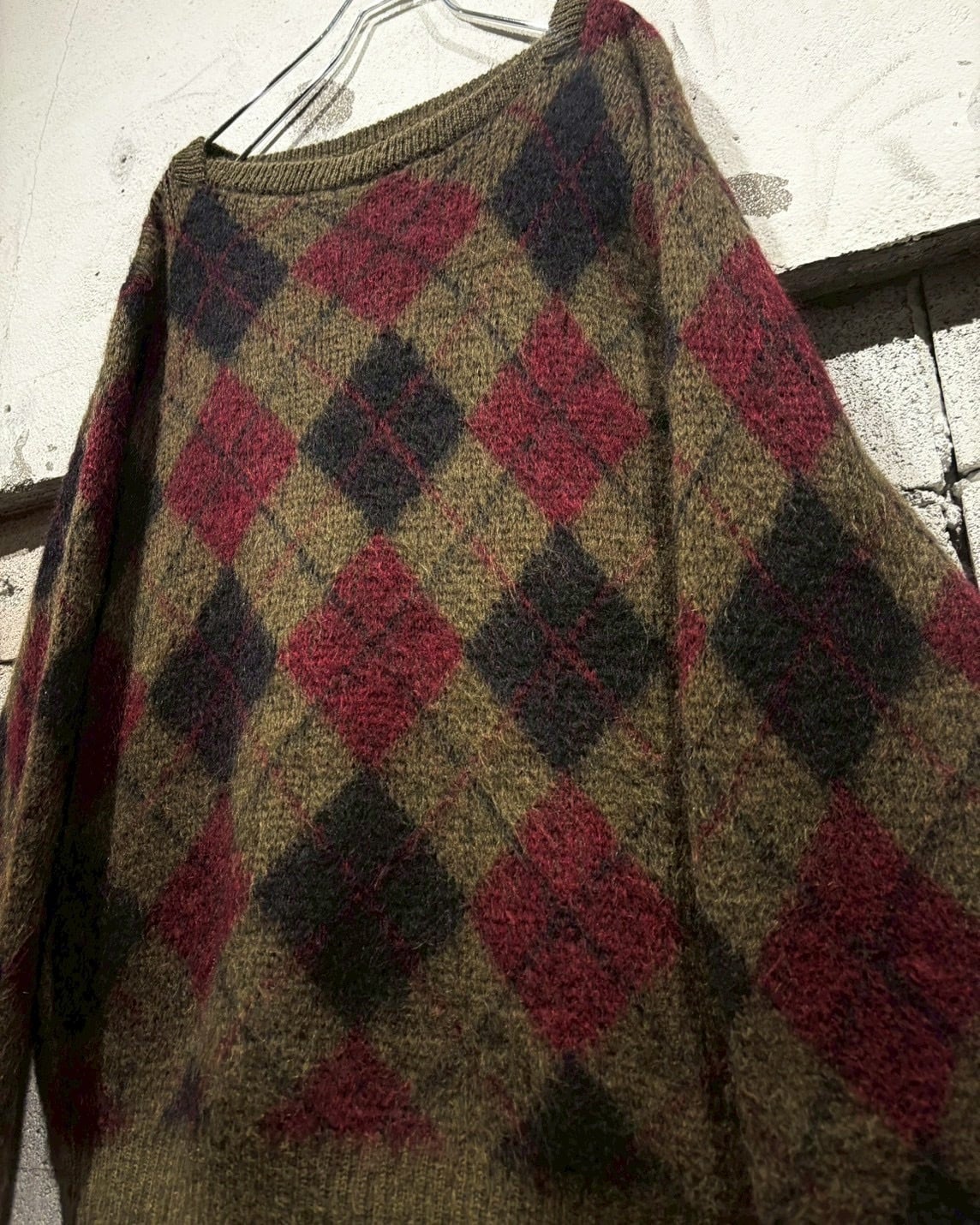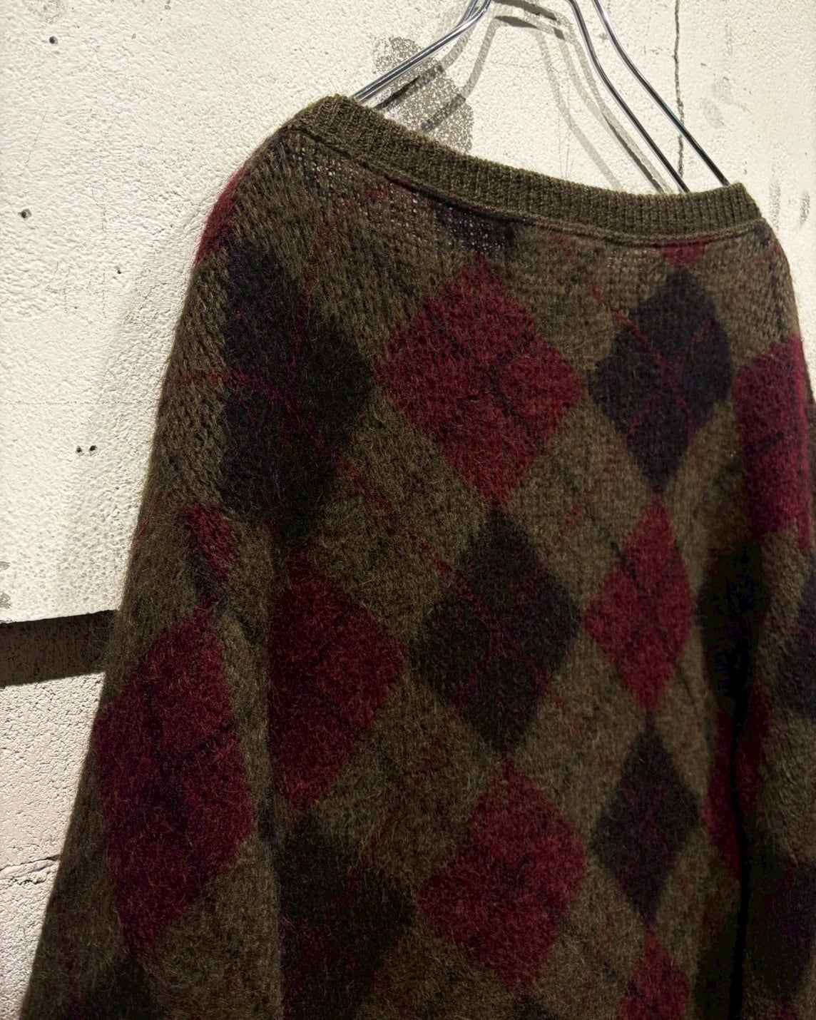 ヴィンテージではほぼ絶滅危惧種のような存在となっている、たっぷりと毛足の残ったモヘアをボディに使用し、定番かつ王道のアーガイル柄を載せた1着。