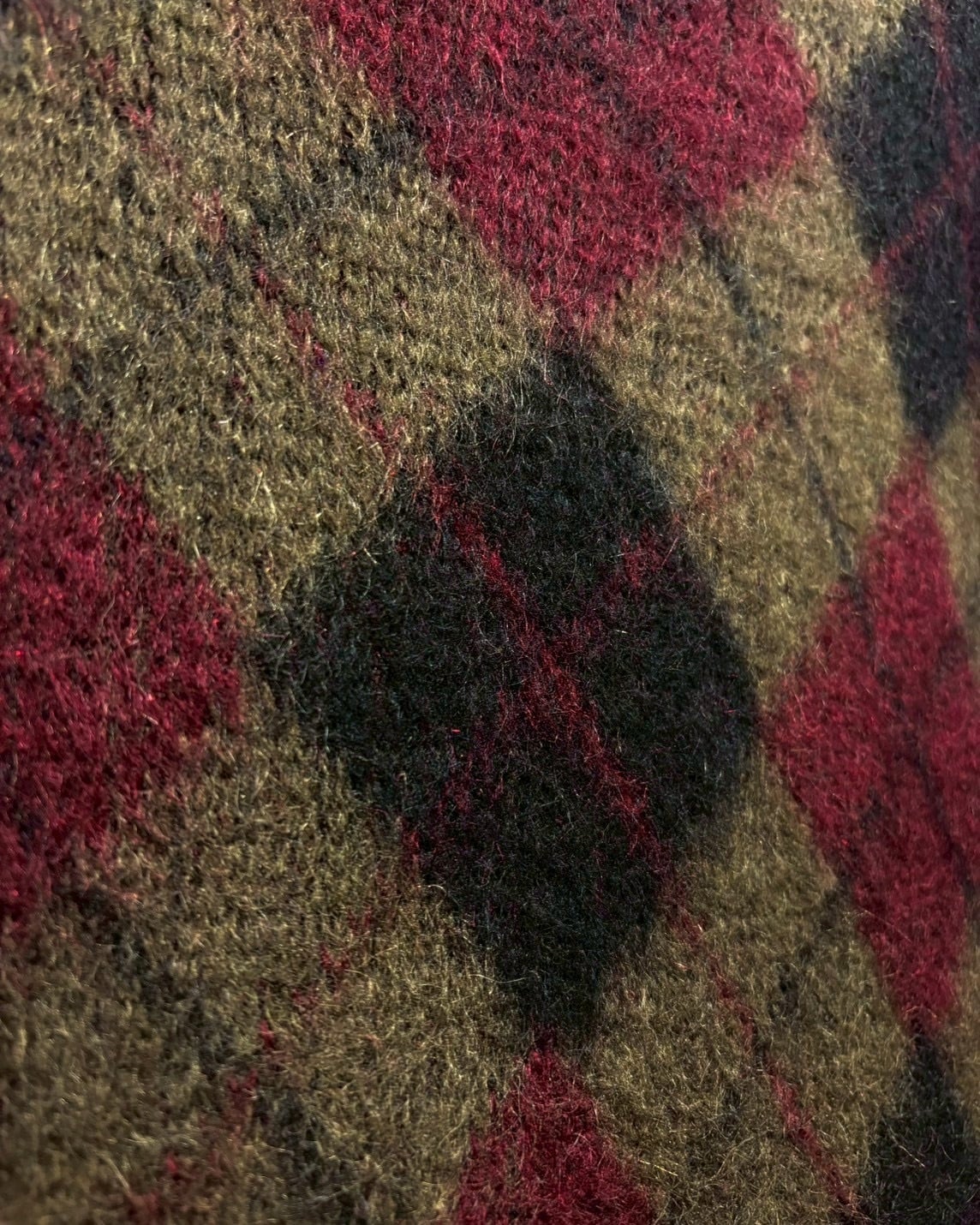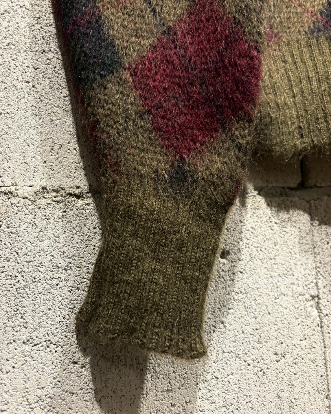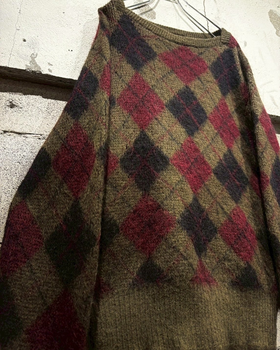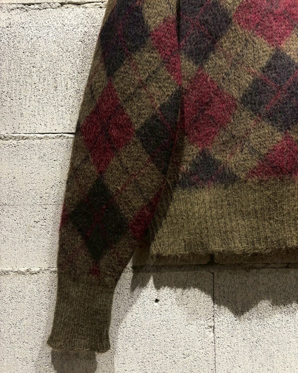 ヴィンテージではほぼ絶滅危惧種のような存在となっている、たっぷりと毛足の残ったモヘアをボディに使用し、定番かつ王道のアーガイル柄を載せた1着。