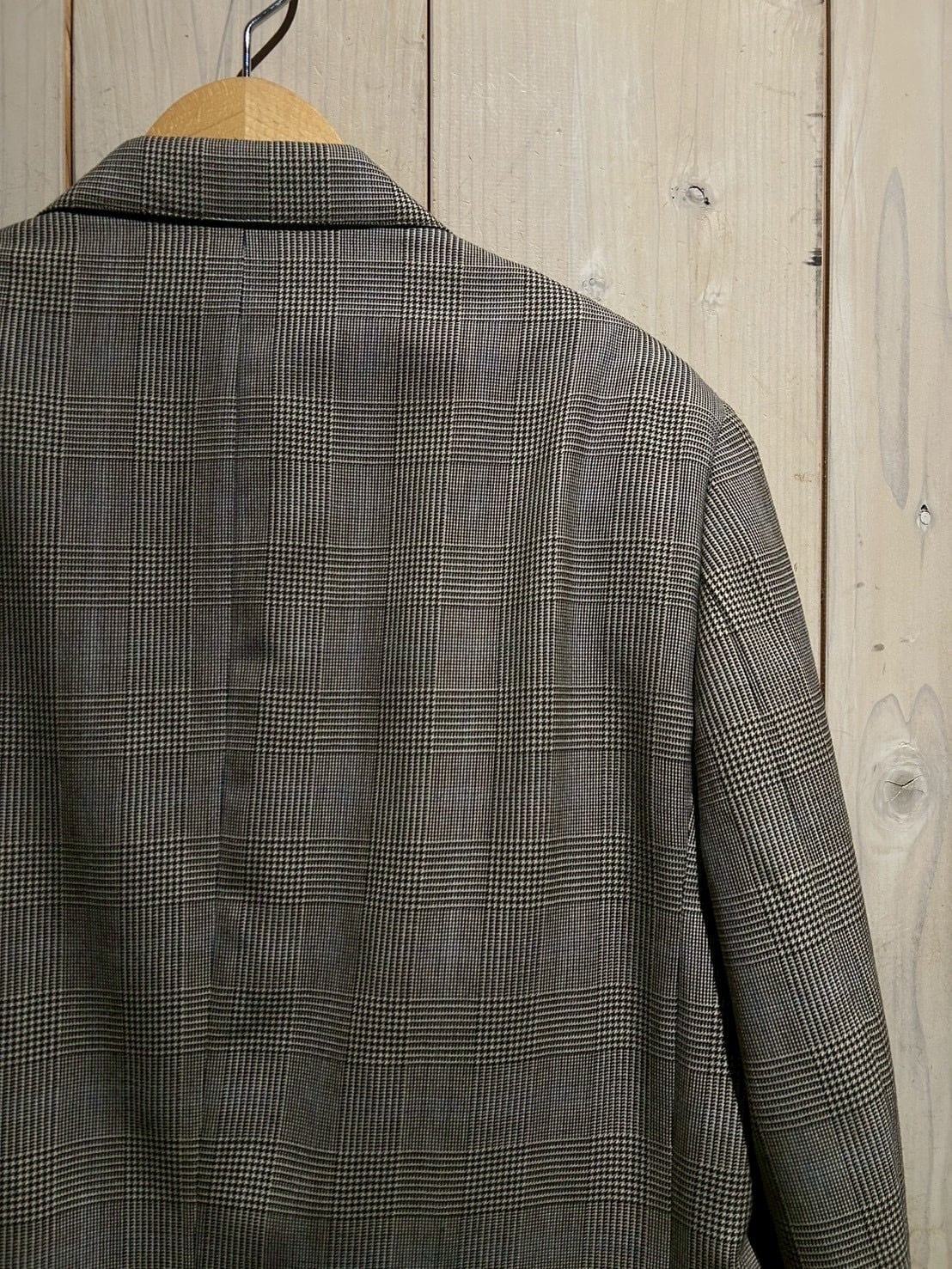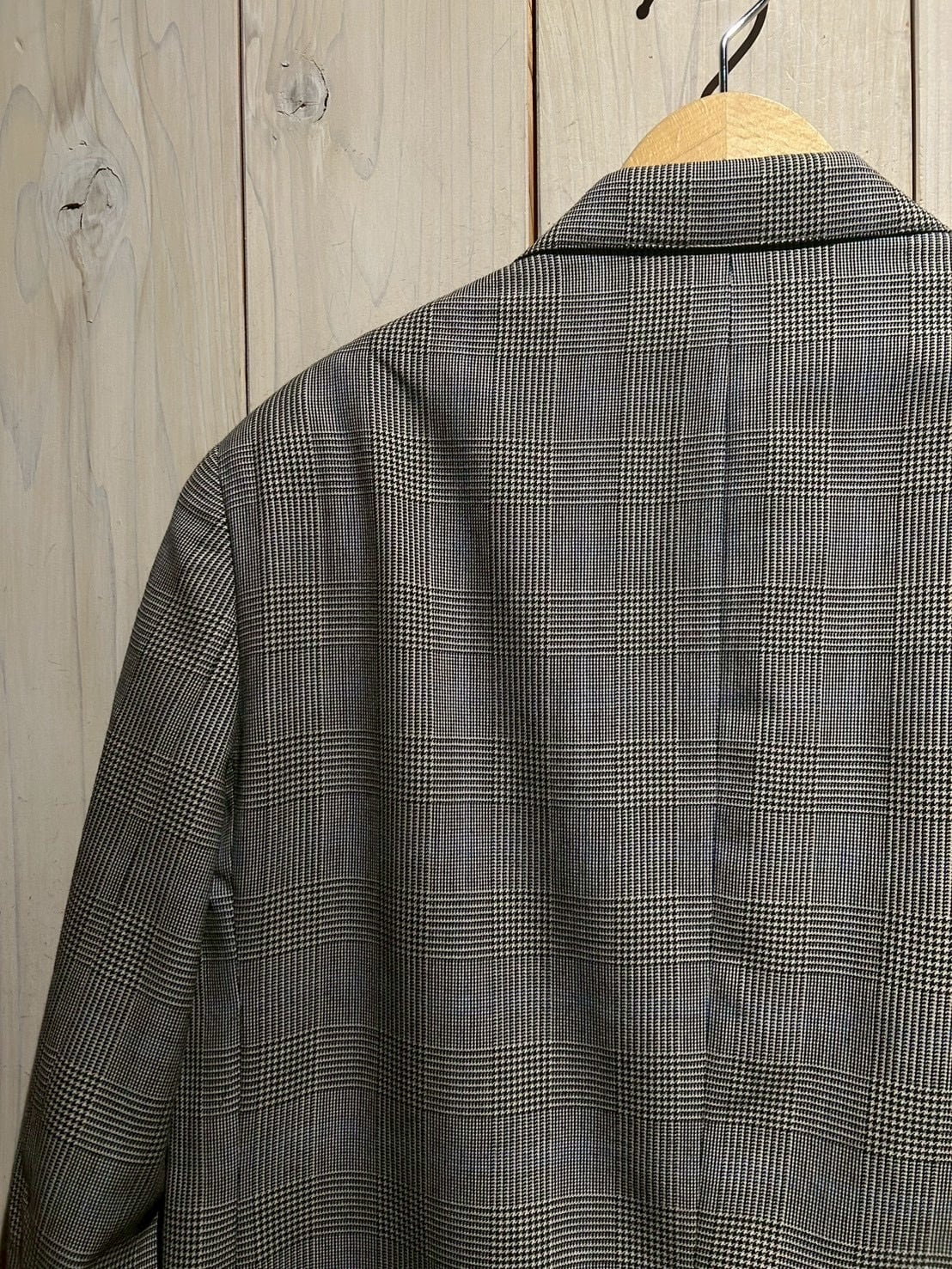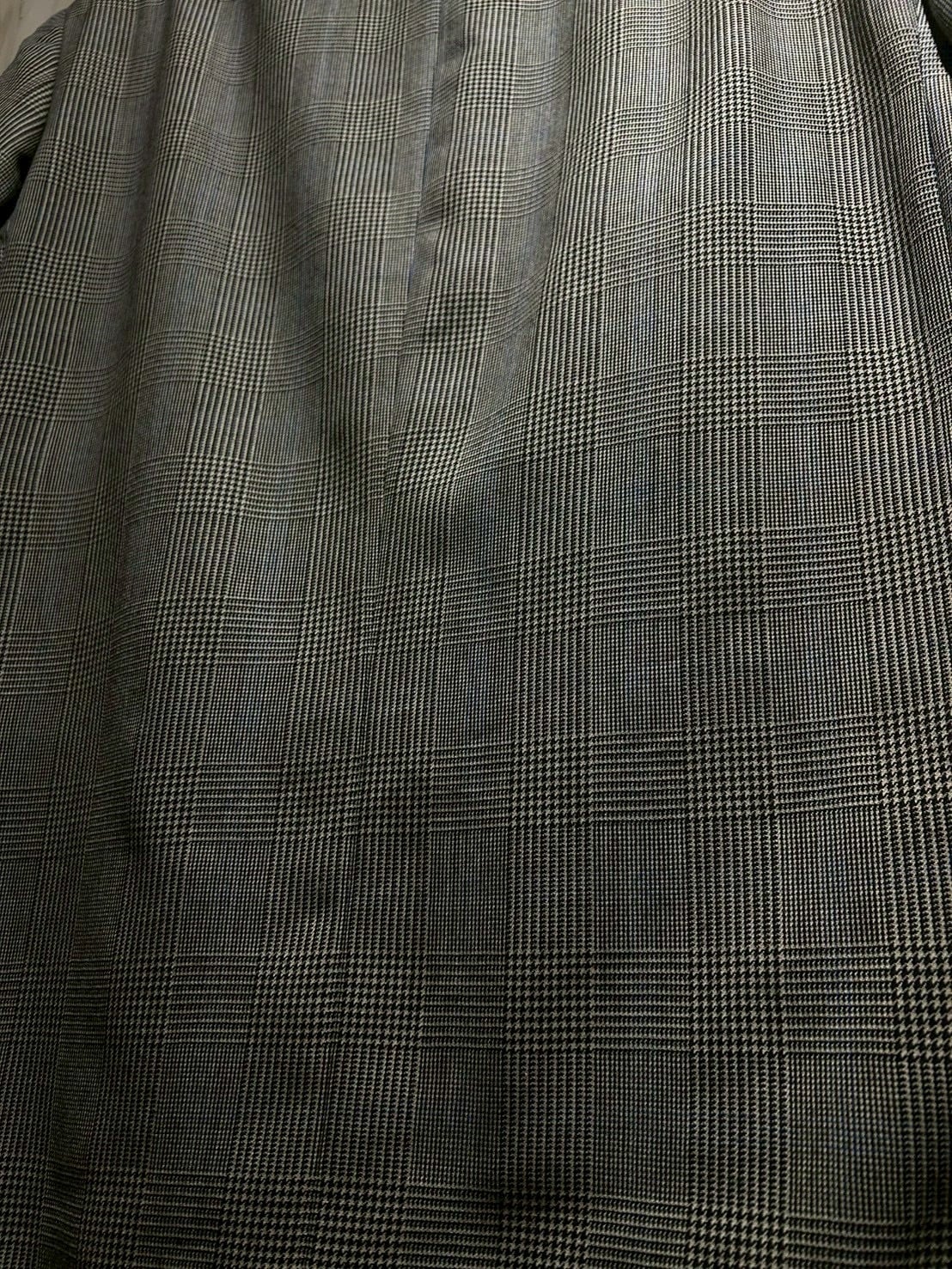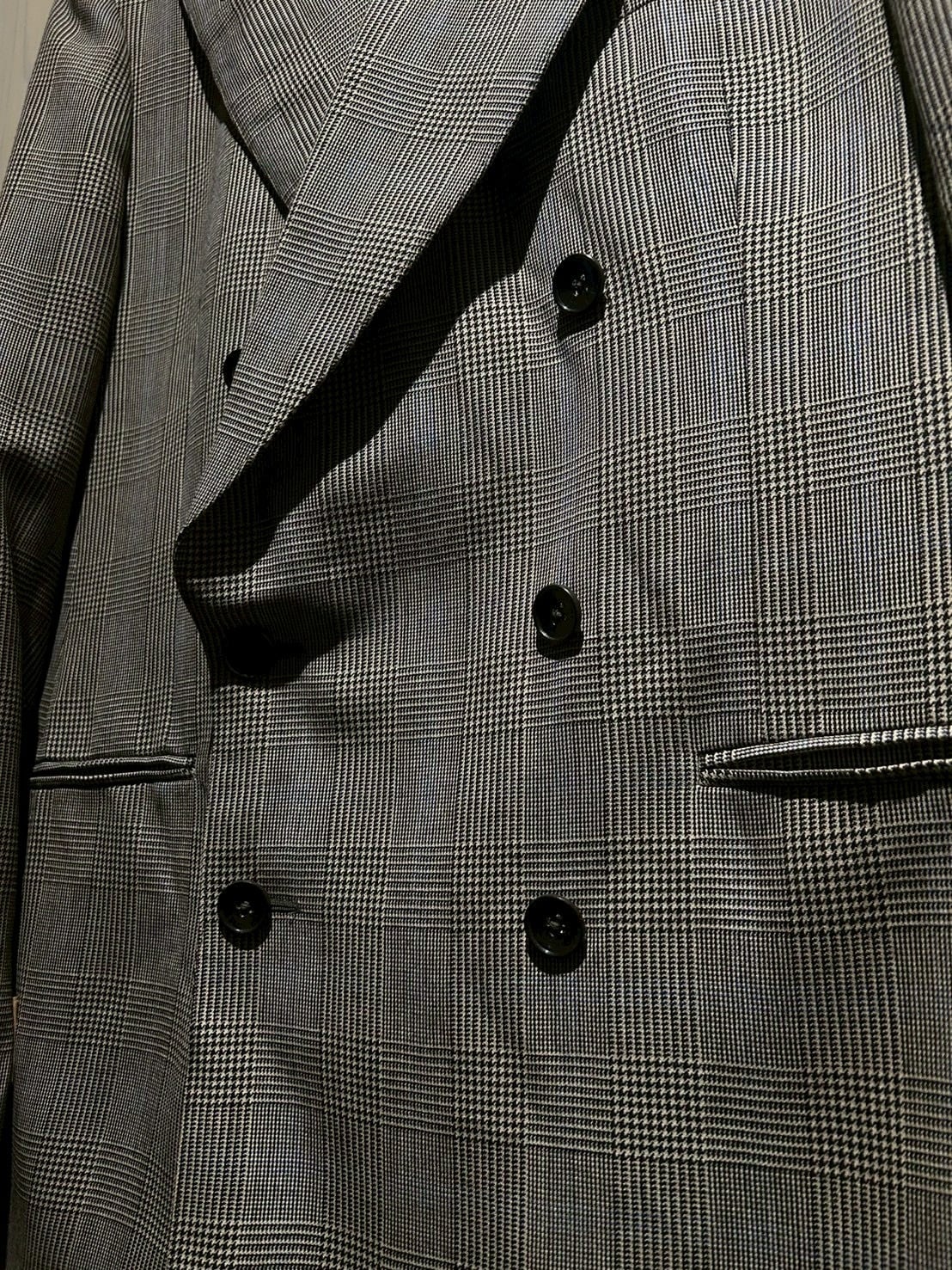 クラシカルなグレンチェック柄をベースに、仕立ての良さが際立つウール100%のファブリックを採用。しなやかさの中に程よいハリを残した生地感で、着用時には美しいドレープと立体感が生まれます。