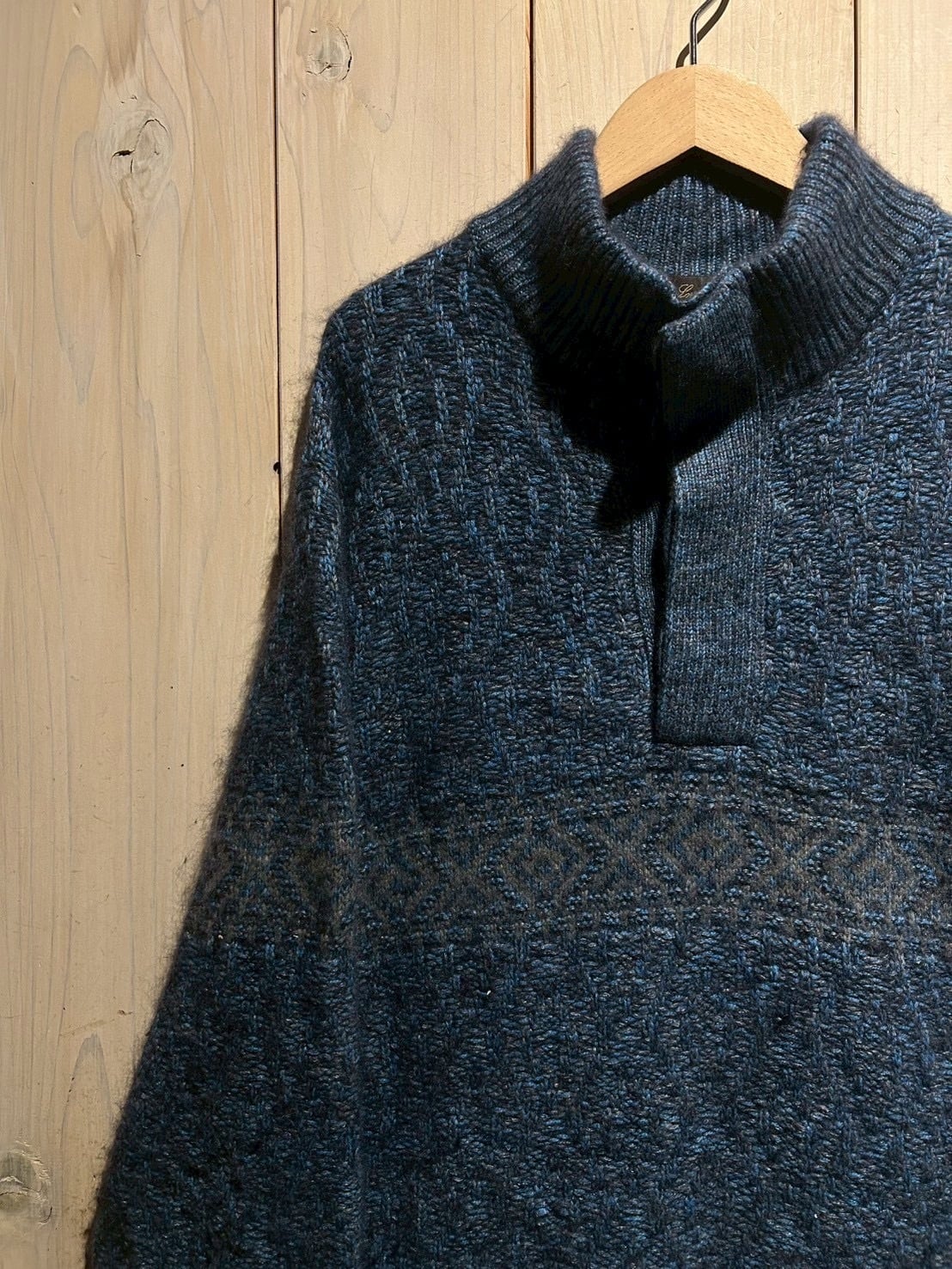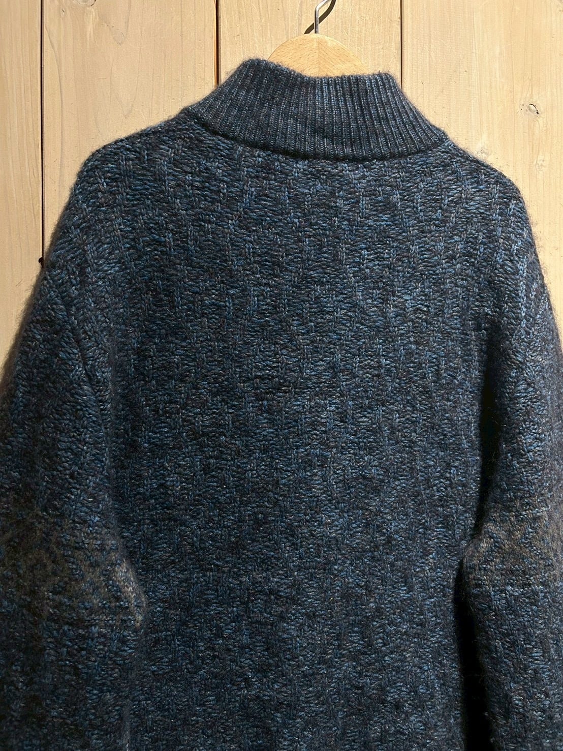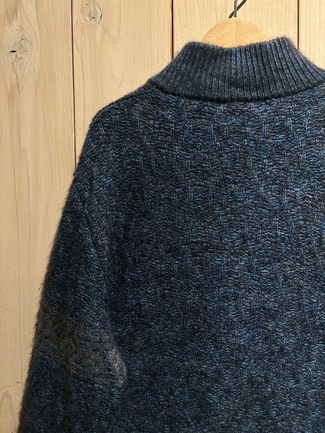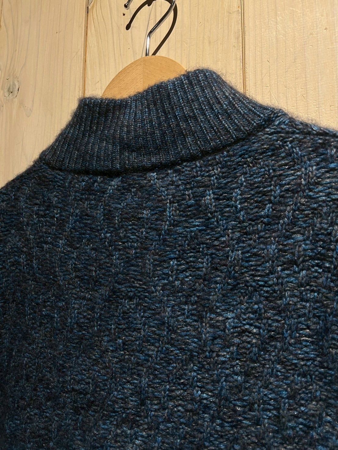 深みのあるメランジのブルートーンを基調に、表情豊かな編み地で仕上げられた1着。Loro Pianaならではの上質な糸使いにより、見た目にも奥行きがあり、柔らかさと膨らみを感じさせる仕上がりです。