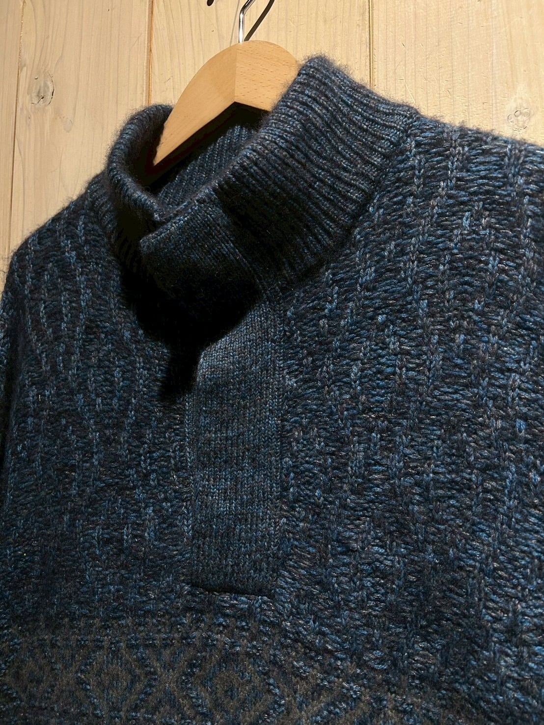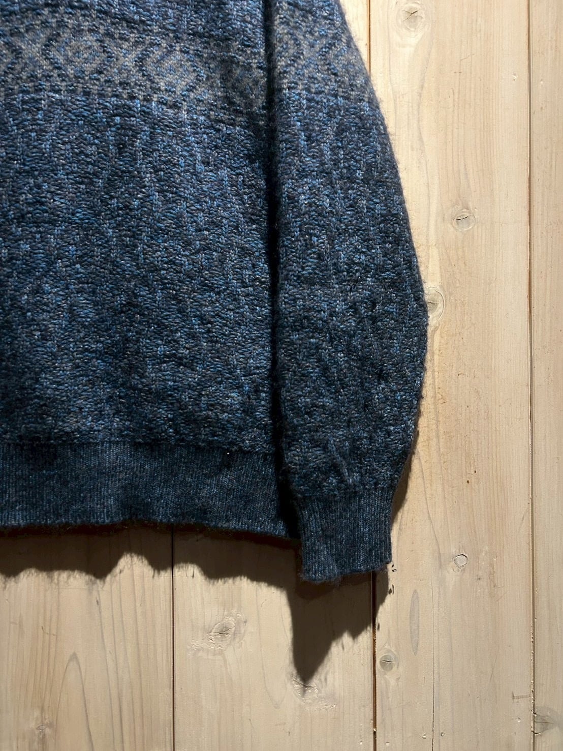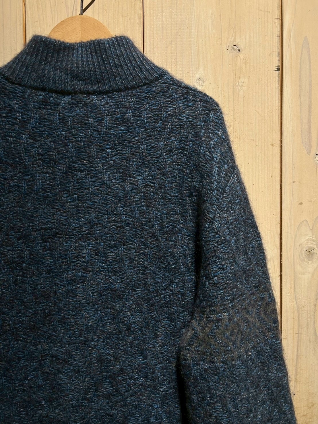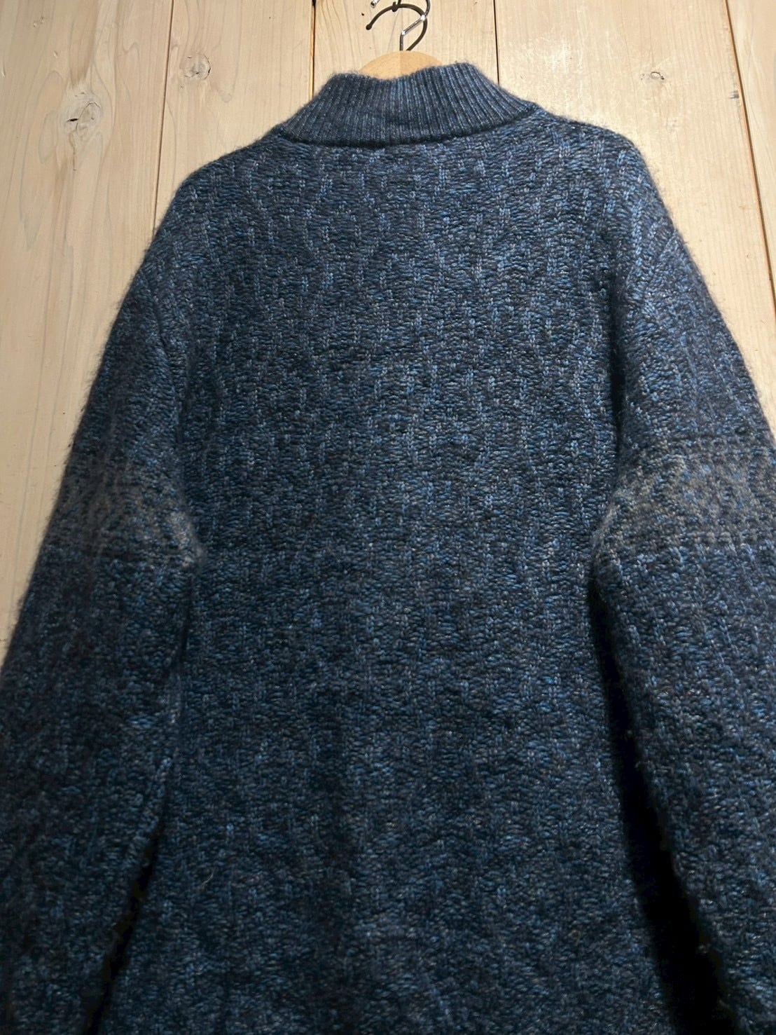 深みのあるメランジのブルートーンを基調に、表情豊かな編み地で仕上げられた1着。Loro Pianaならではの上質な糸使いにより、見た目にも奥行きがあり、柔らかさと膨らみを感じさせる仕上がりです。