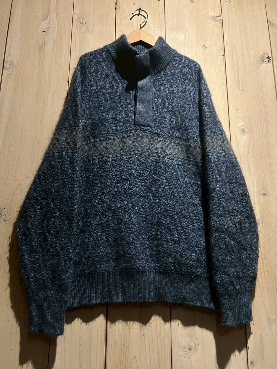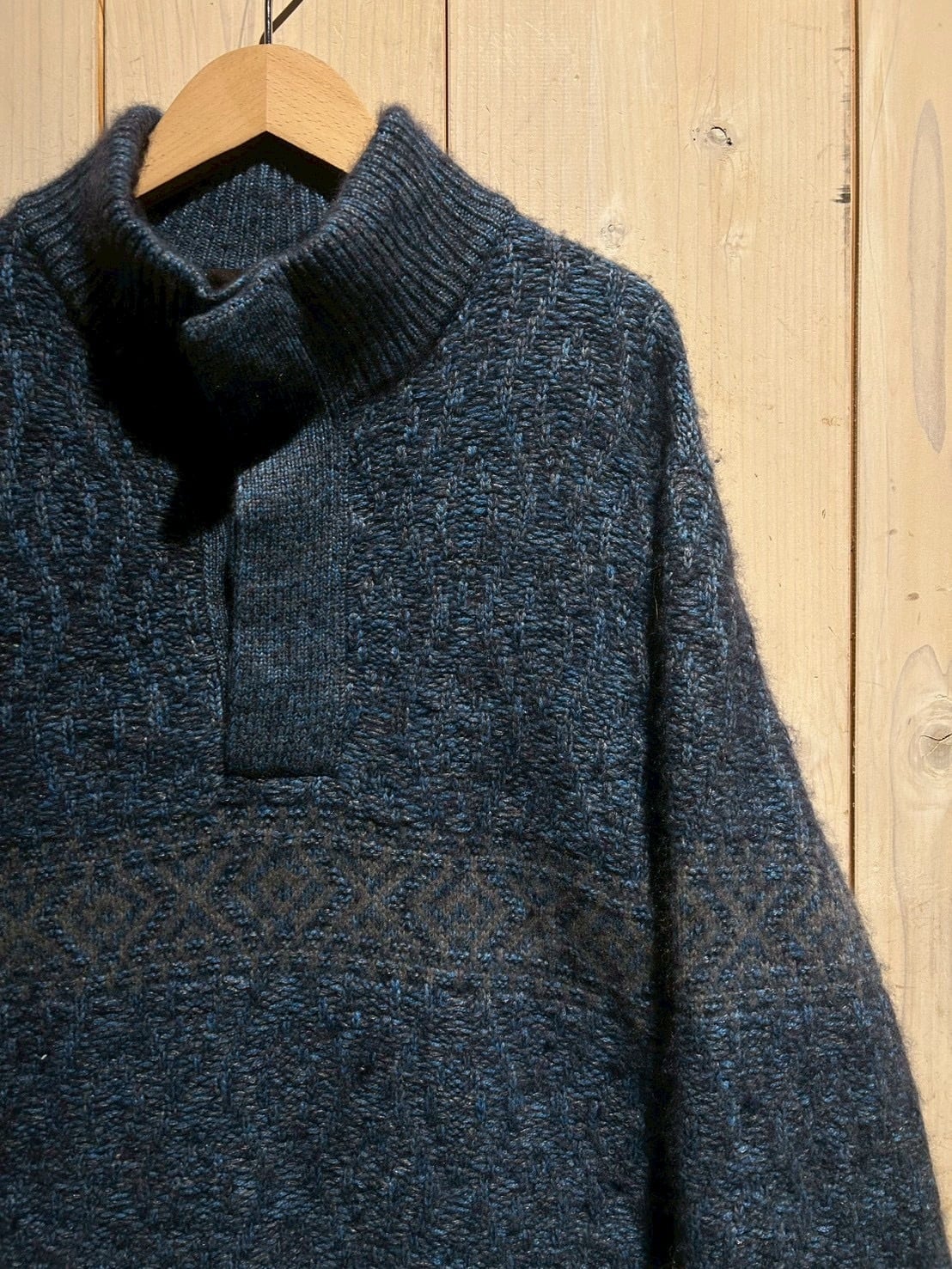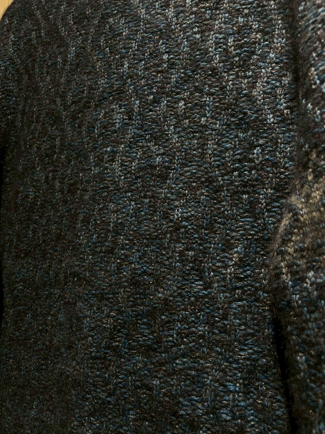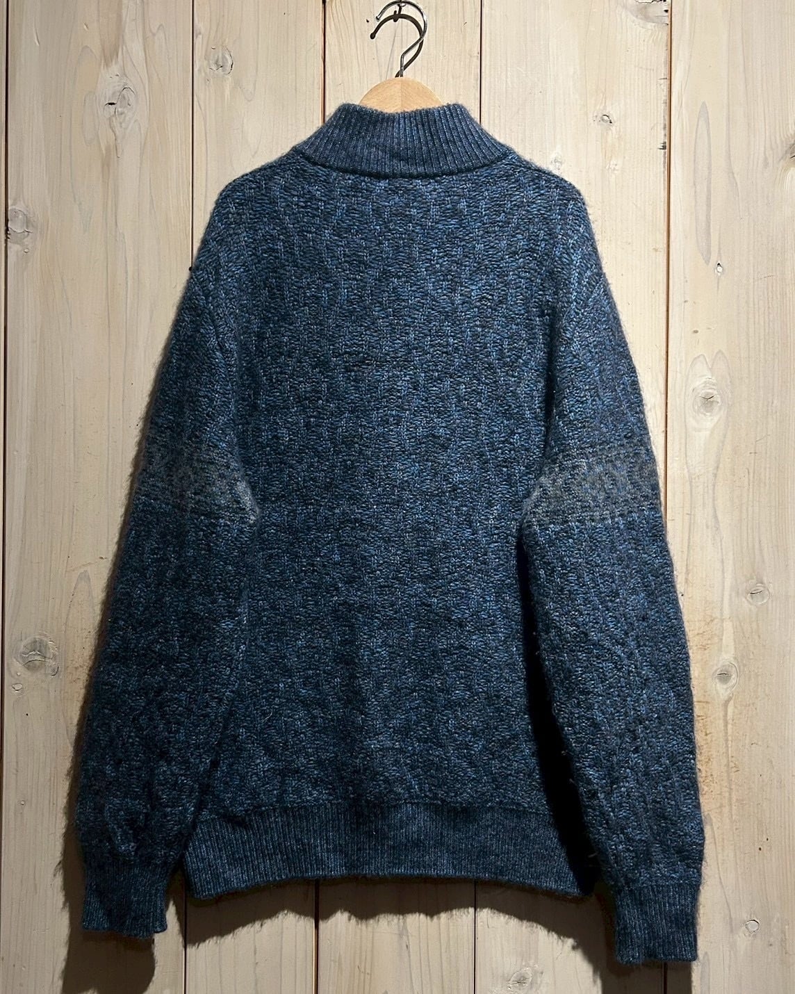深みのあるメランジのブルートーンを基調に、表情豊かな編み地で仕上げられた1着。Loro Pianaならではの上質な糸使いにより、見た目にも奥行きがあり、柔らかさと膨らみを感じさせる仕上がりです。