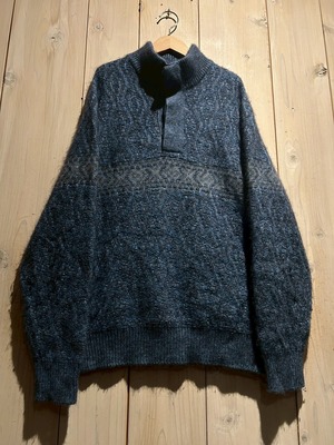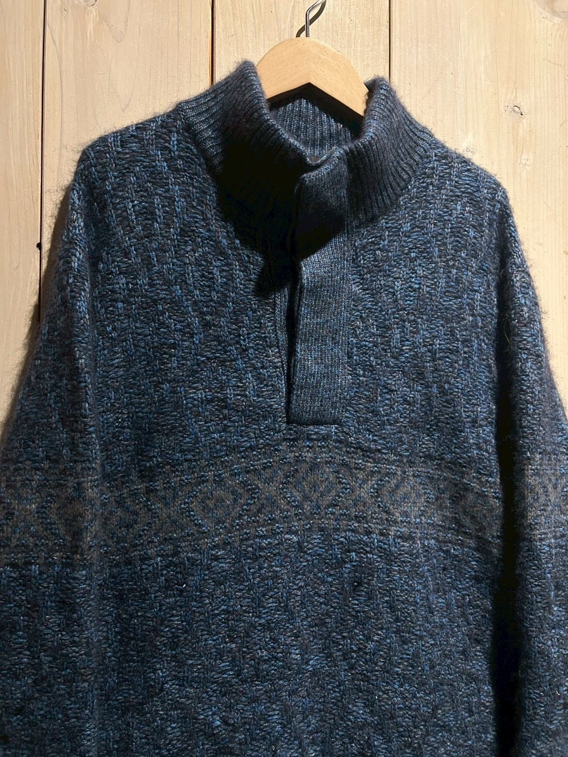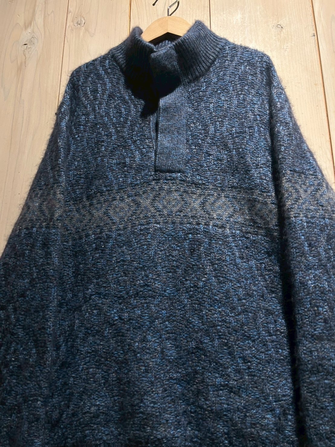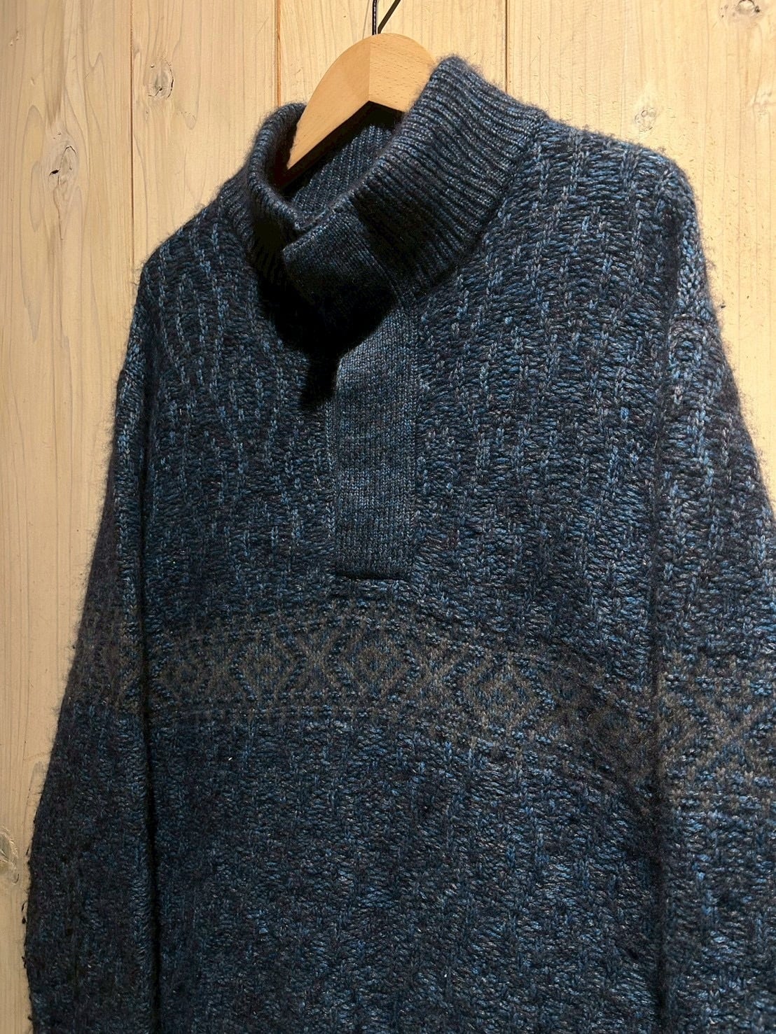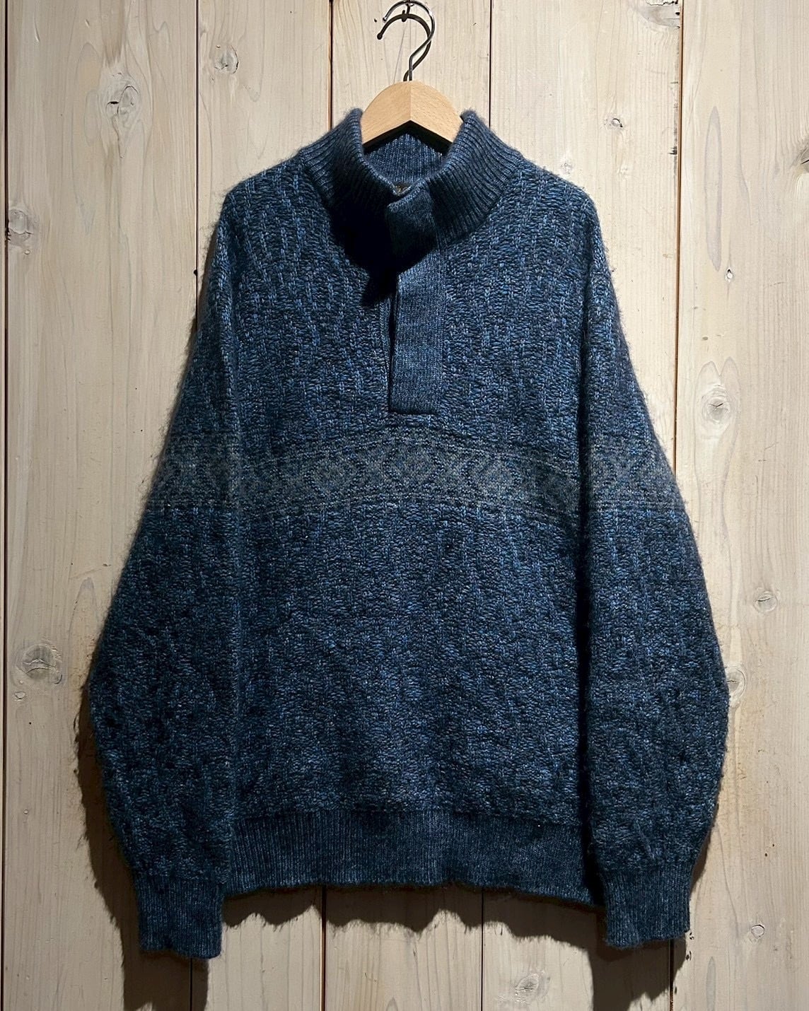 深みのあるメランジのブルートーンを基調に、表情豊かな編み地で仕上げられた1着。Loro Pianaならではの上質な糸使いにより、見た目にも奥行きがあり、柔らかさと膨らみを感じさせる仕上がりです。