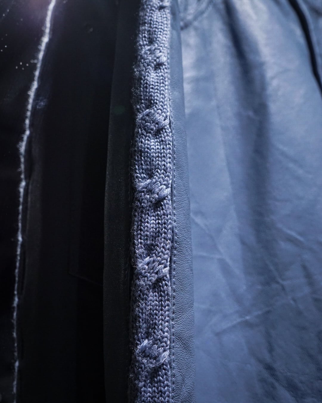サイドに配されたケーブルニットがデザインのアクセントになり、レザー×ニットというコントラストが、他にはない独自性と奥行きを演出。